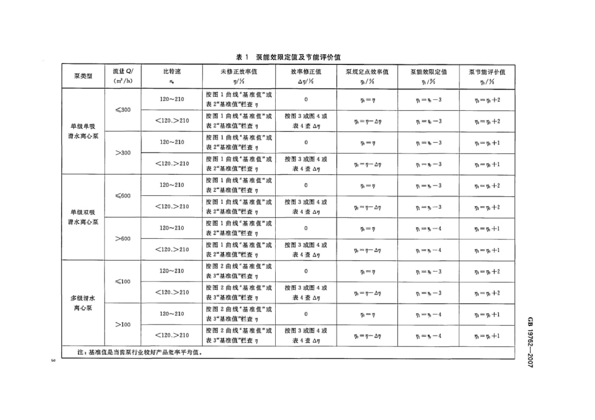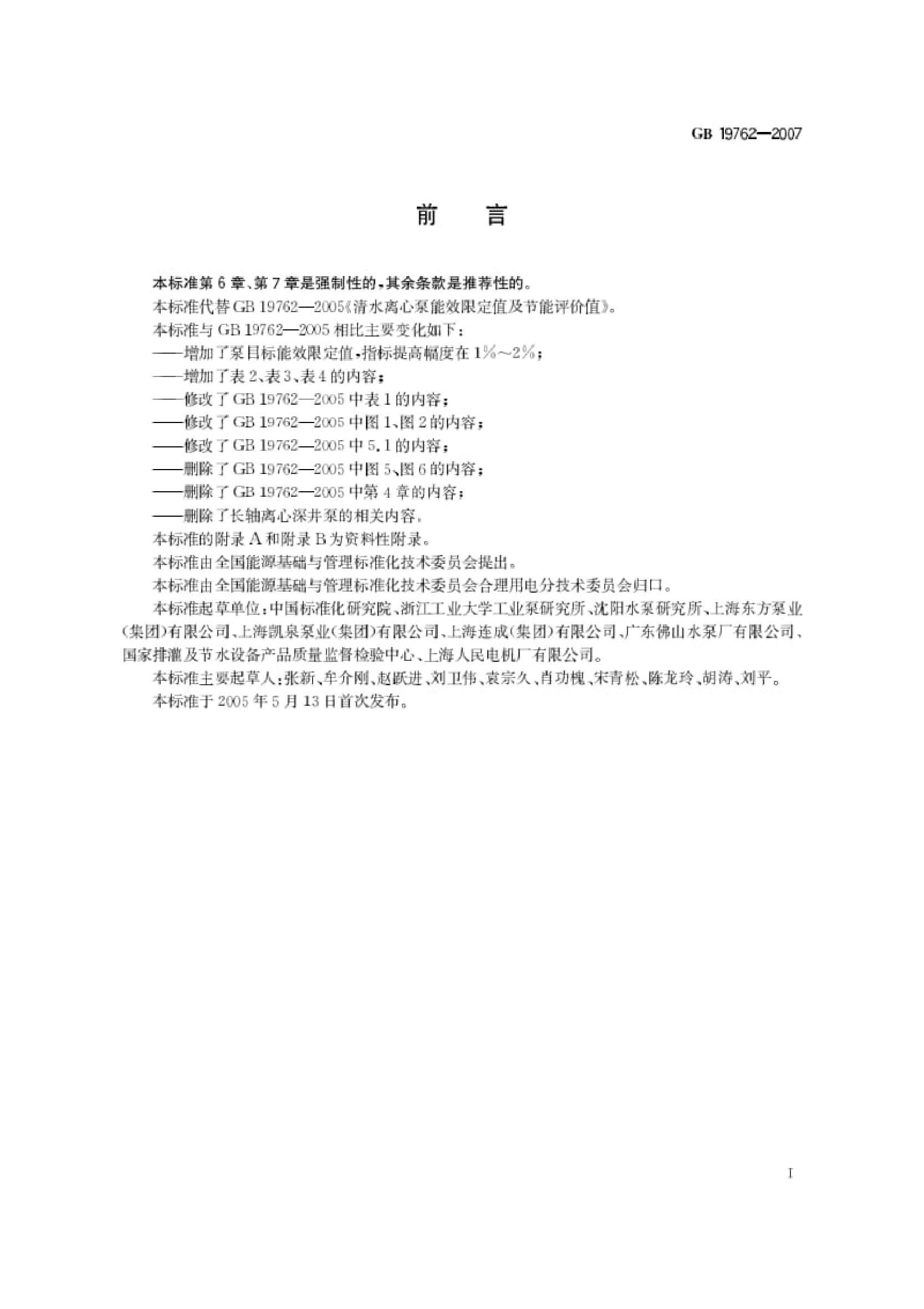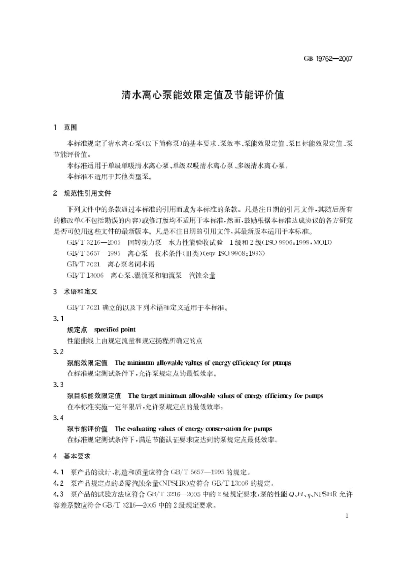 GB19762-2007清水离心泵能效限定值及节能评价值