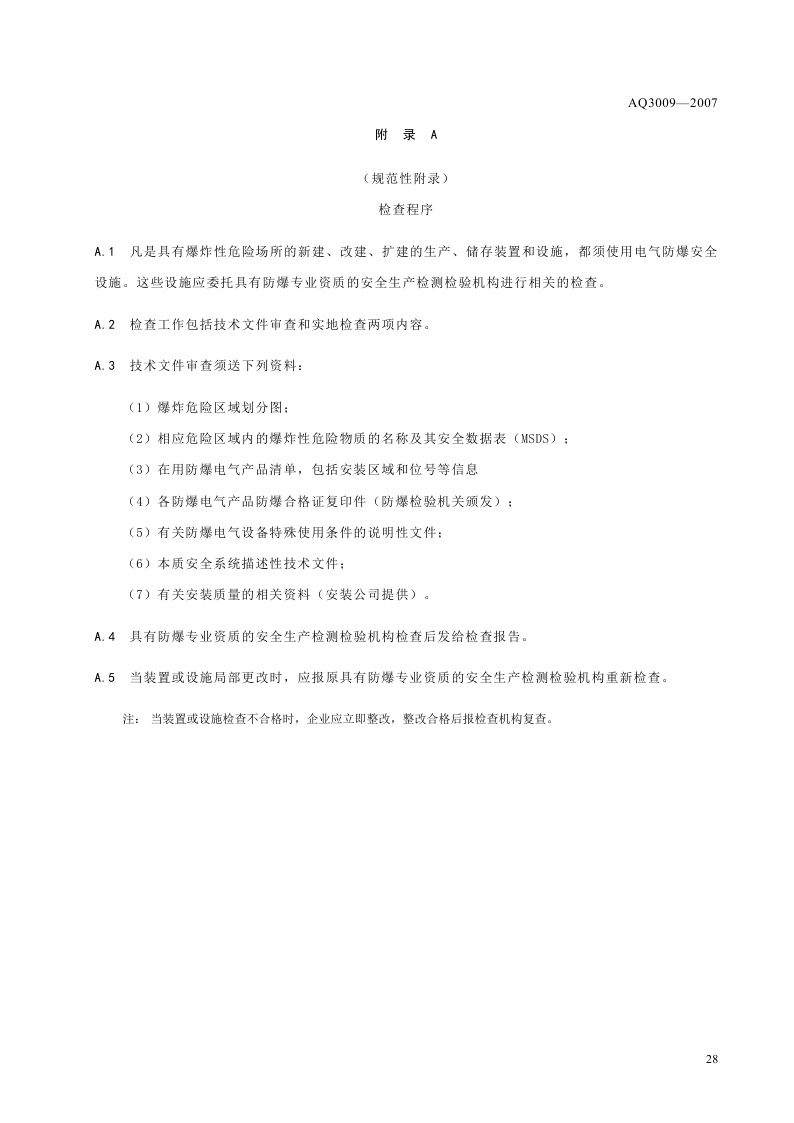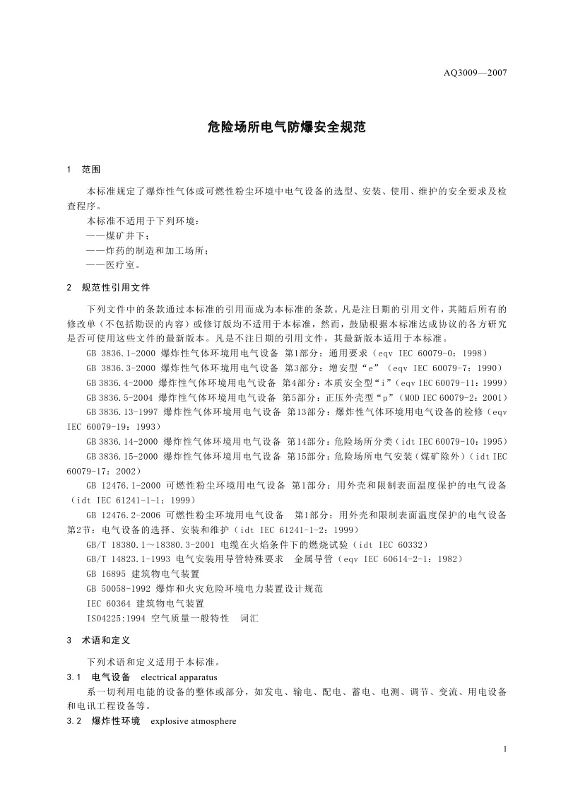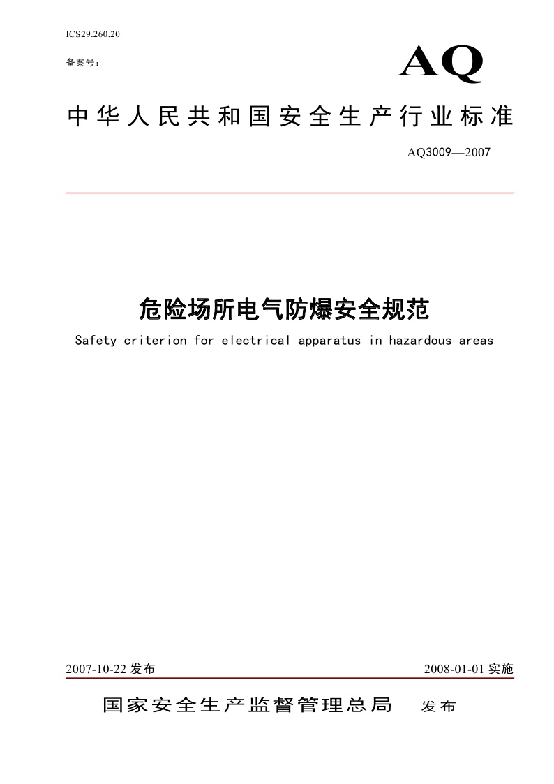 《危险场所电气防爆安全规范》(AQ 3009-2007)
