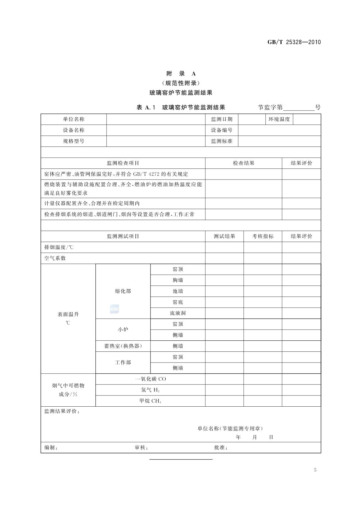 《玻璃窑炉节能监测》(GB/T 25328-2010)