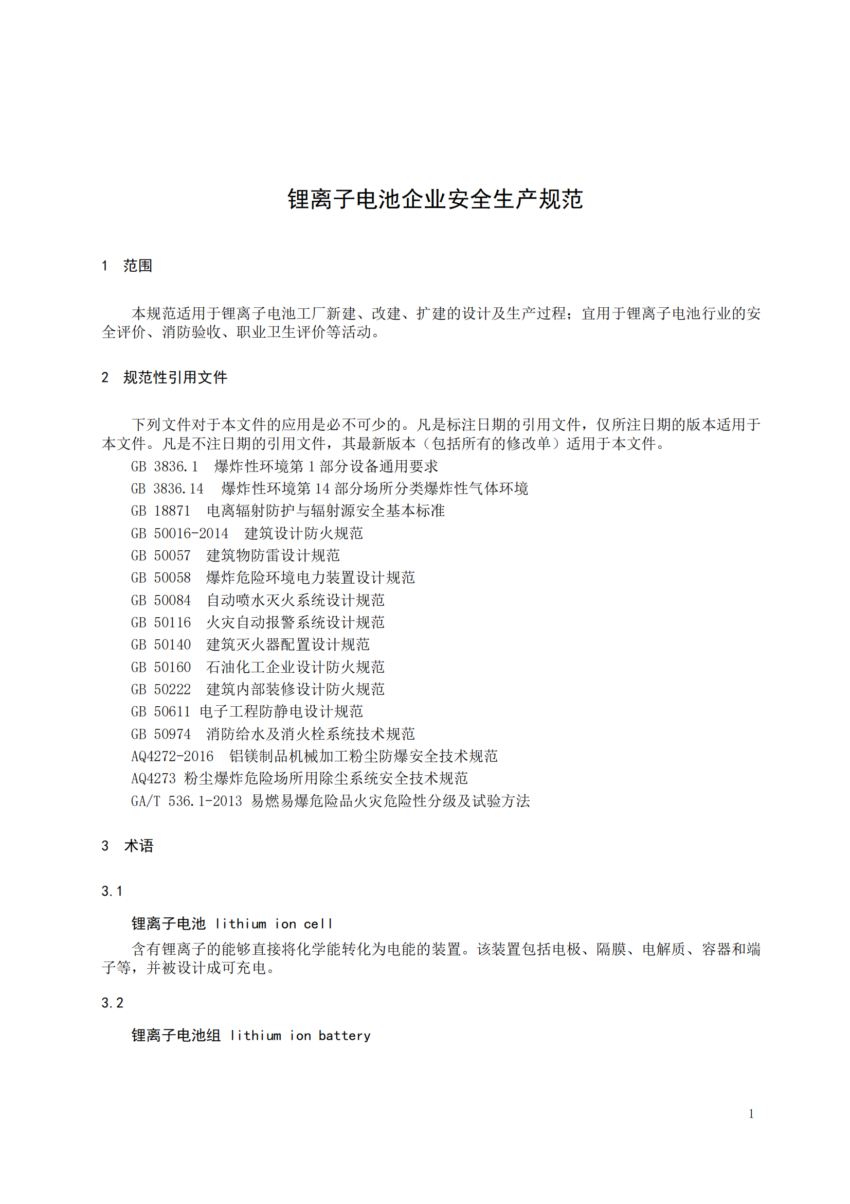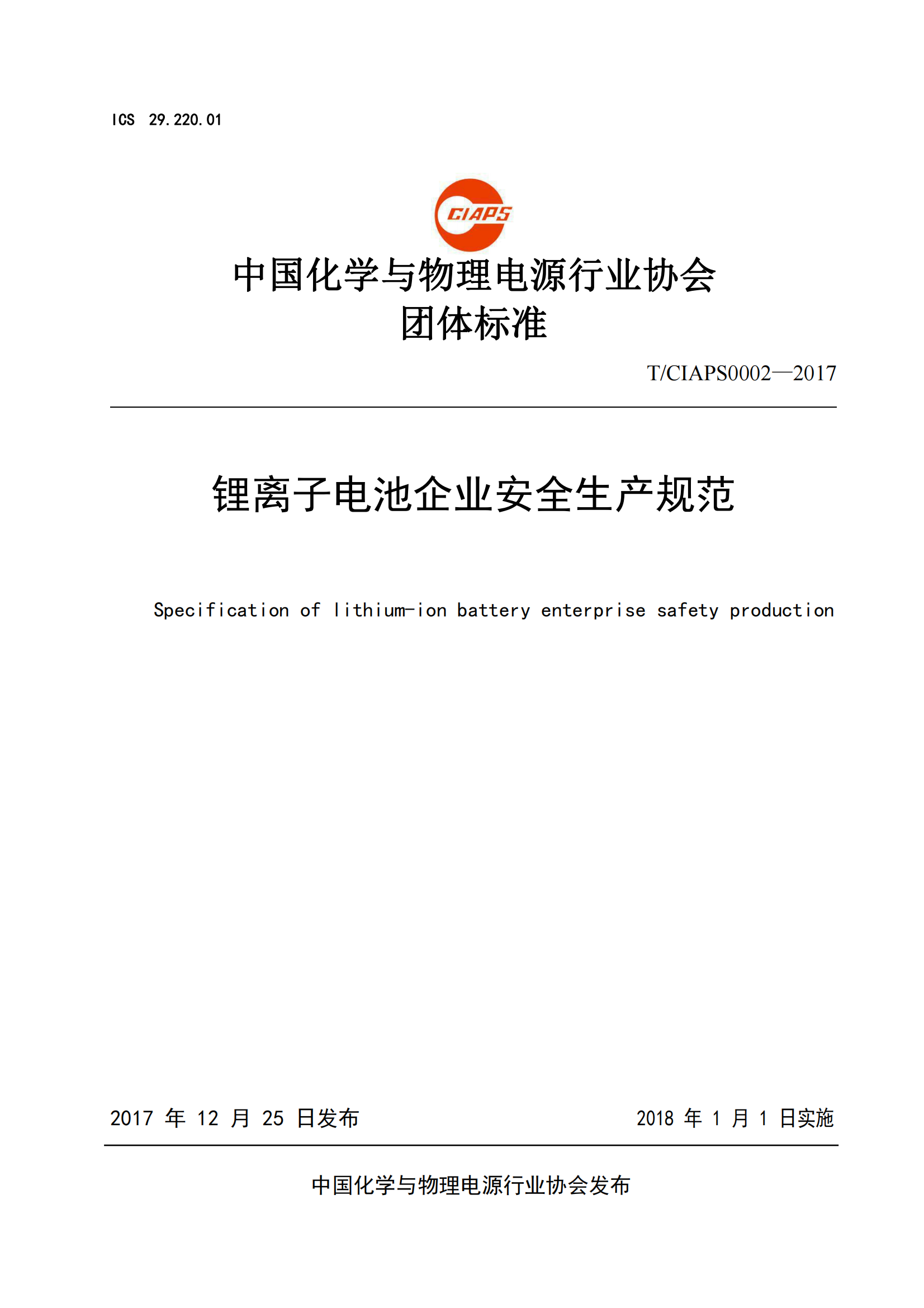 锂离子电池企业安全生产规范(TCIAPS0002-2017)