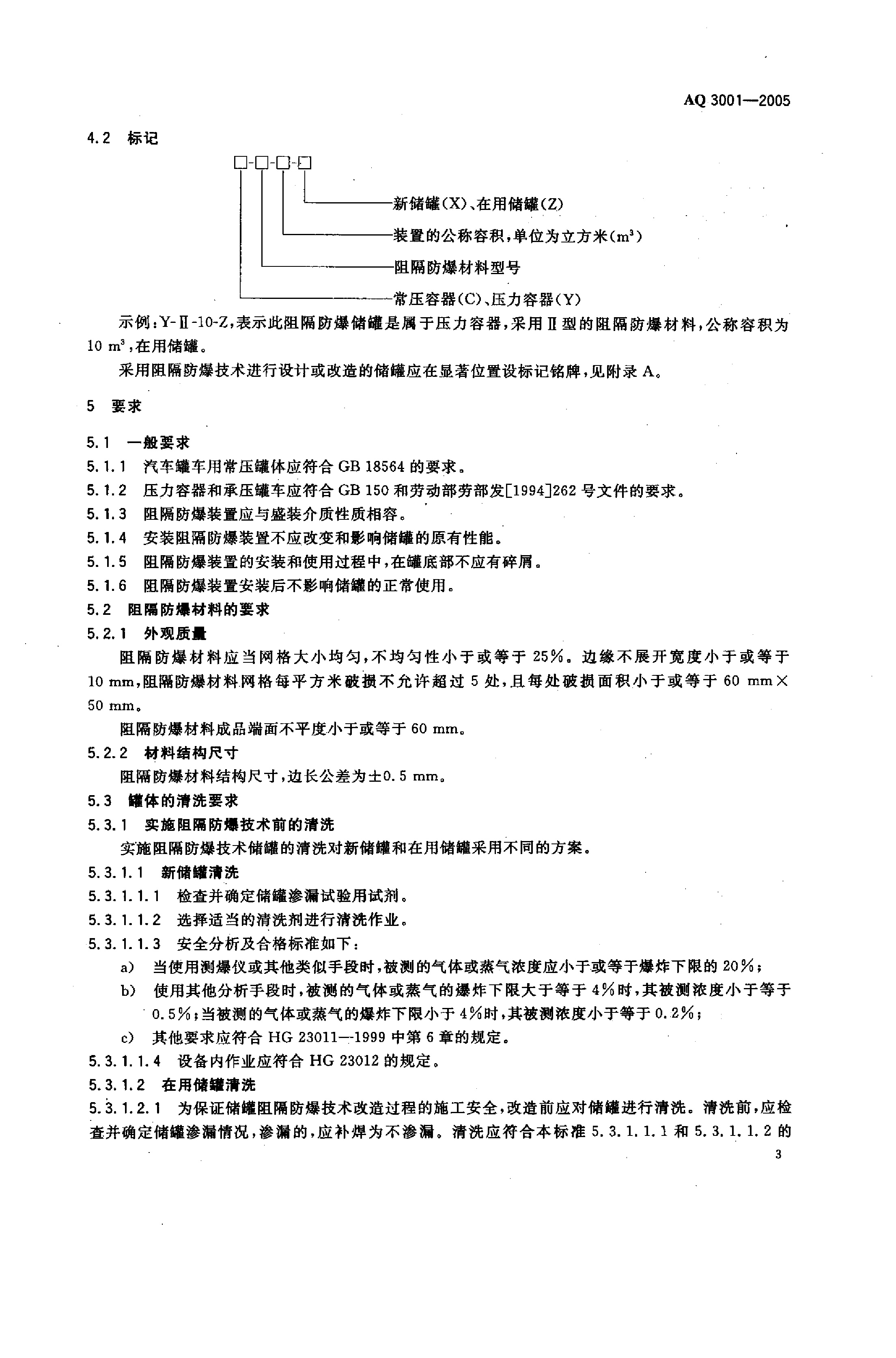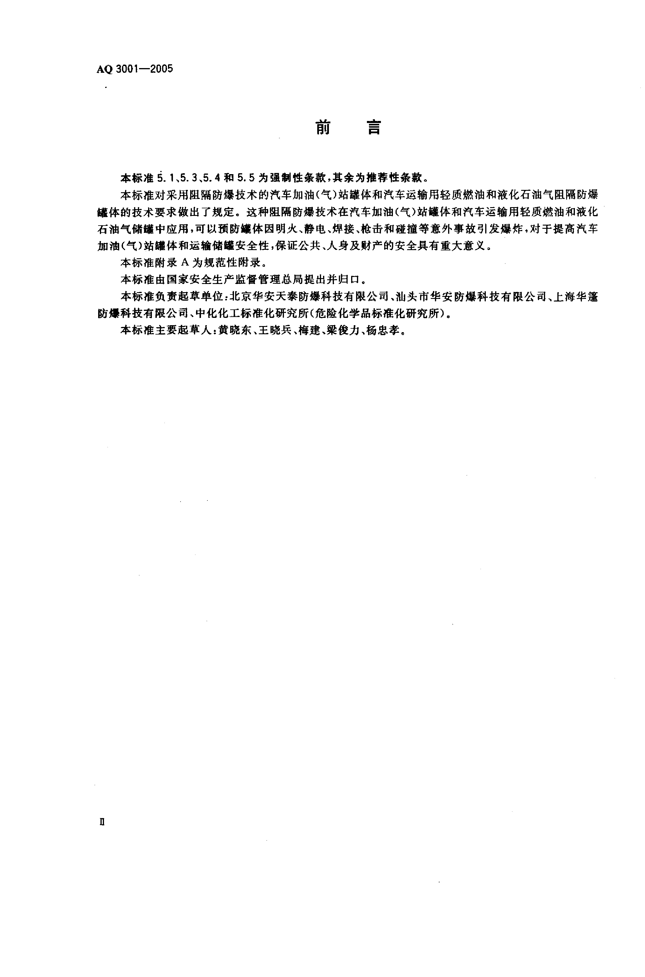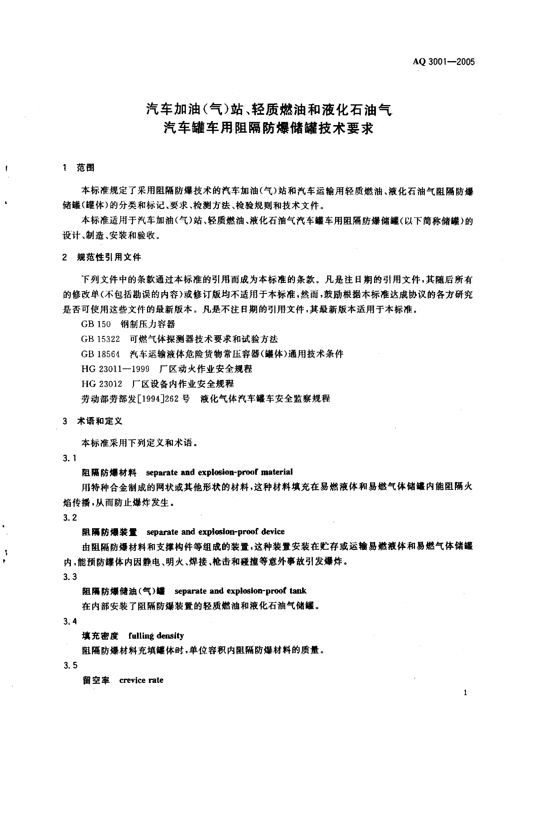 《汽车加油(气)站、轻质燃油和液化石油气汽车罐车用阻隔防爆储罐技术要求》(AQ 3001-2005)