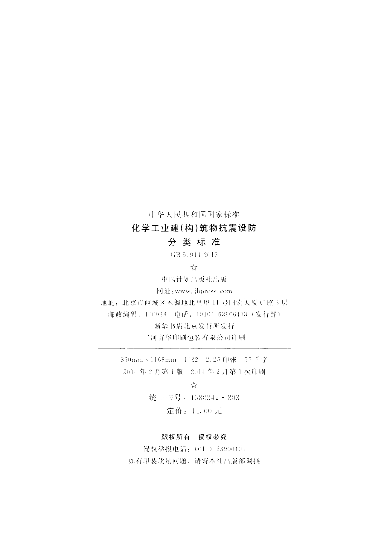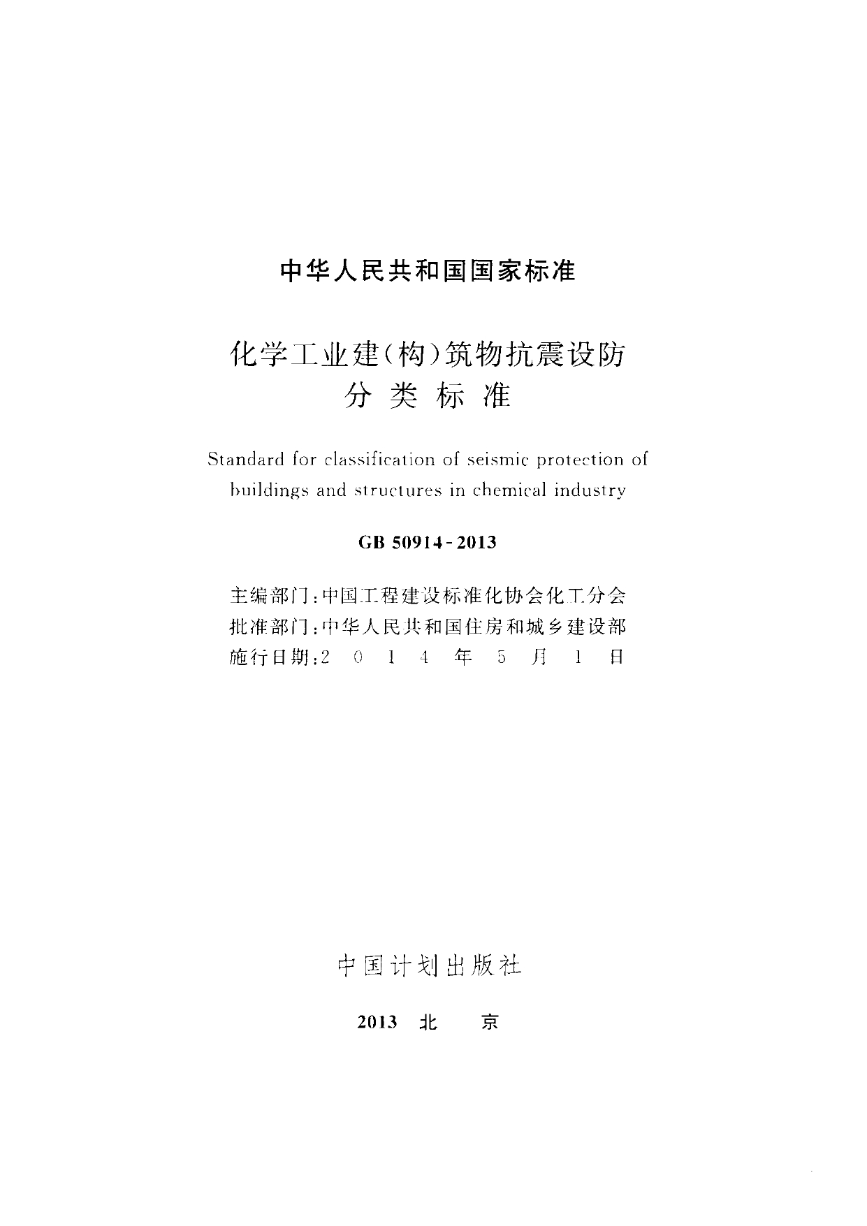 GB50914-2013化学工业建(构)筑物抗震设防分类标准