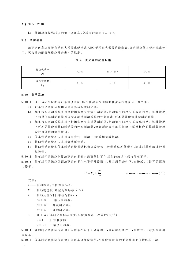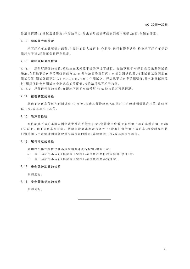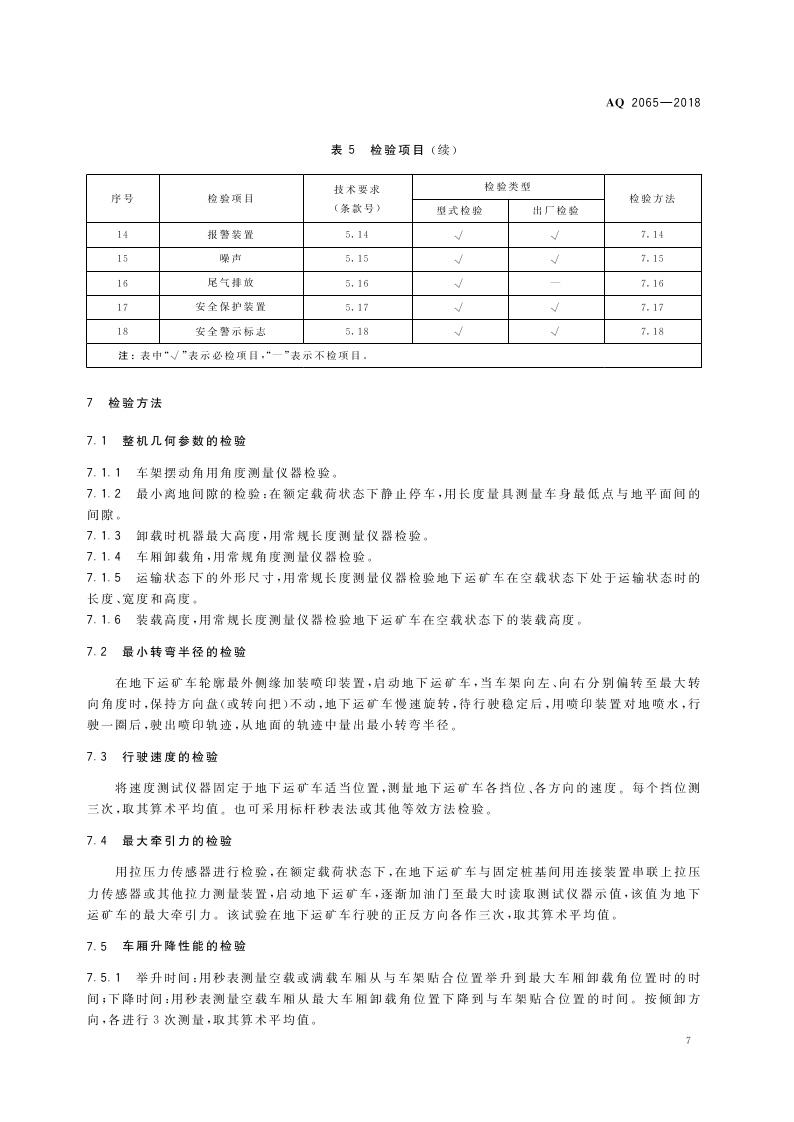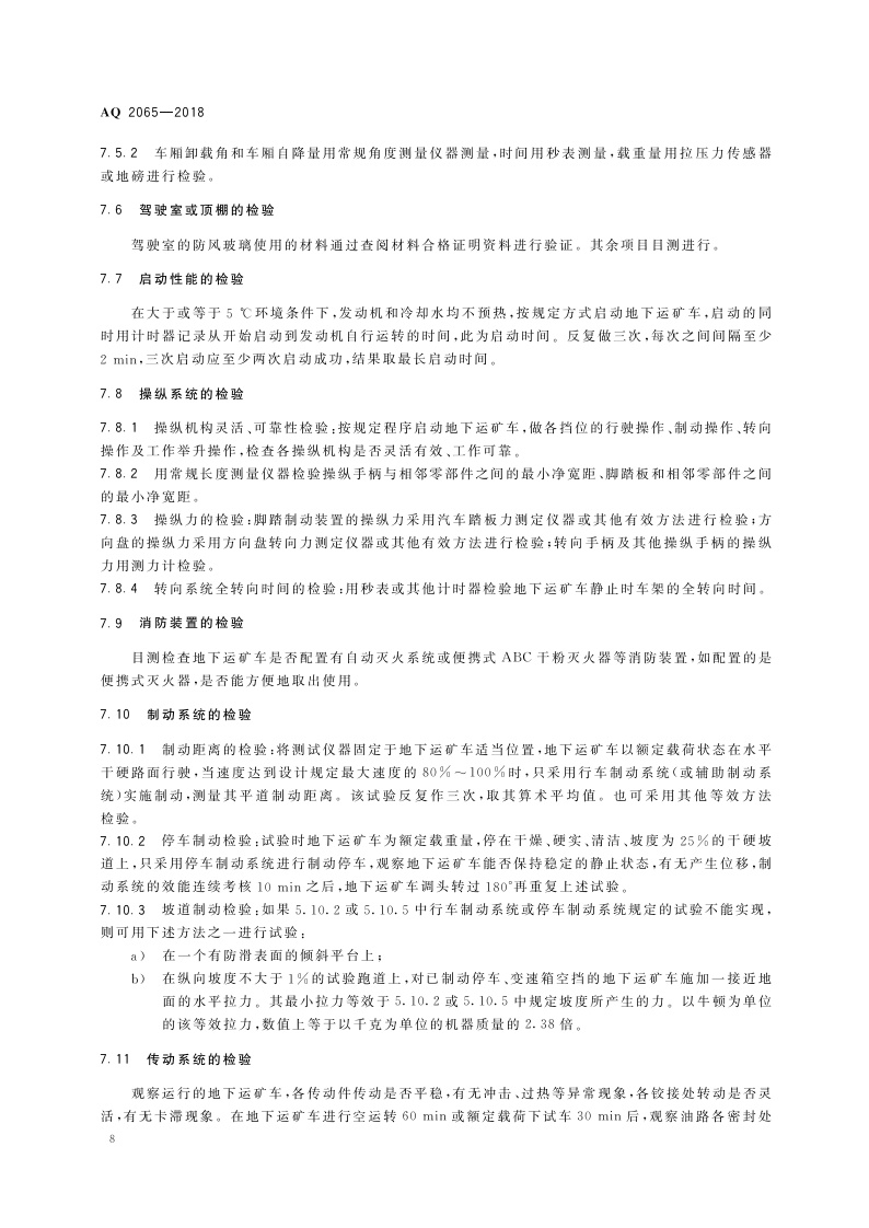 《地下运矿车安全检验规范》(AQ 2065-2018)