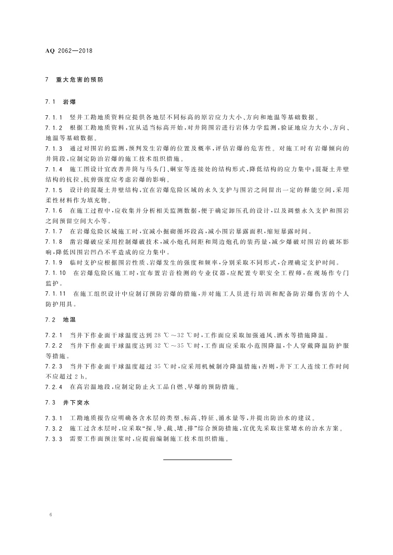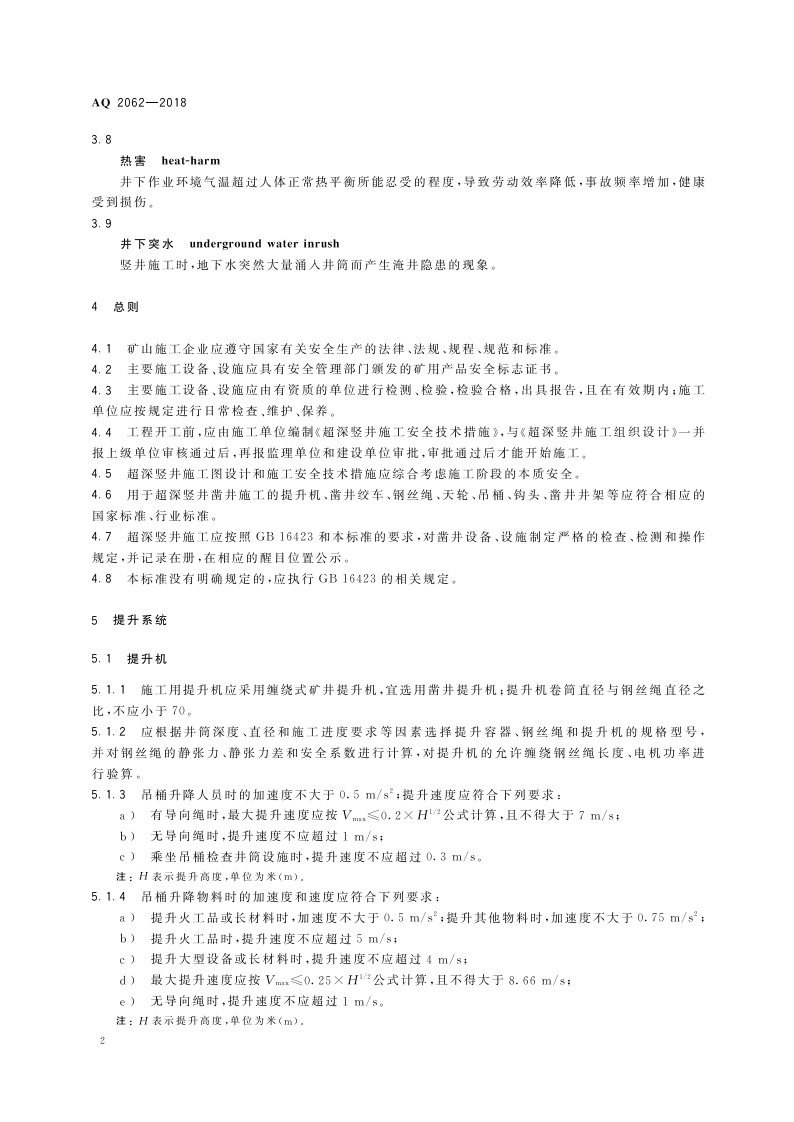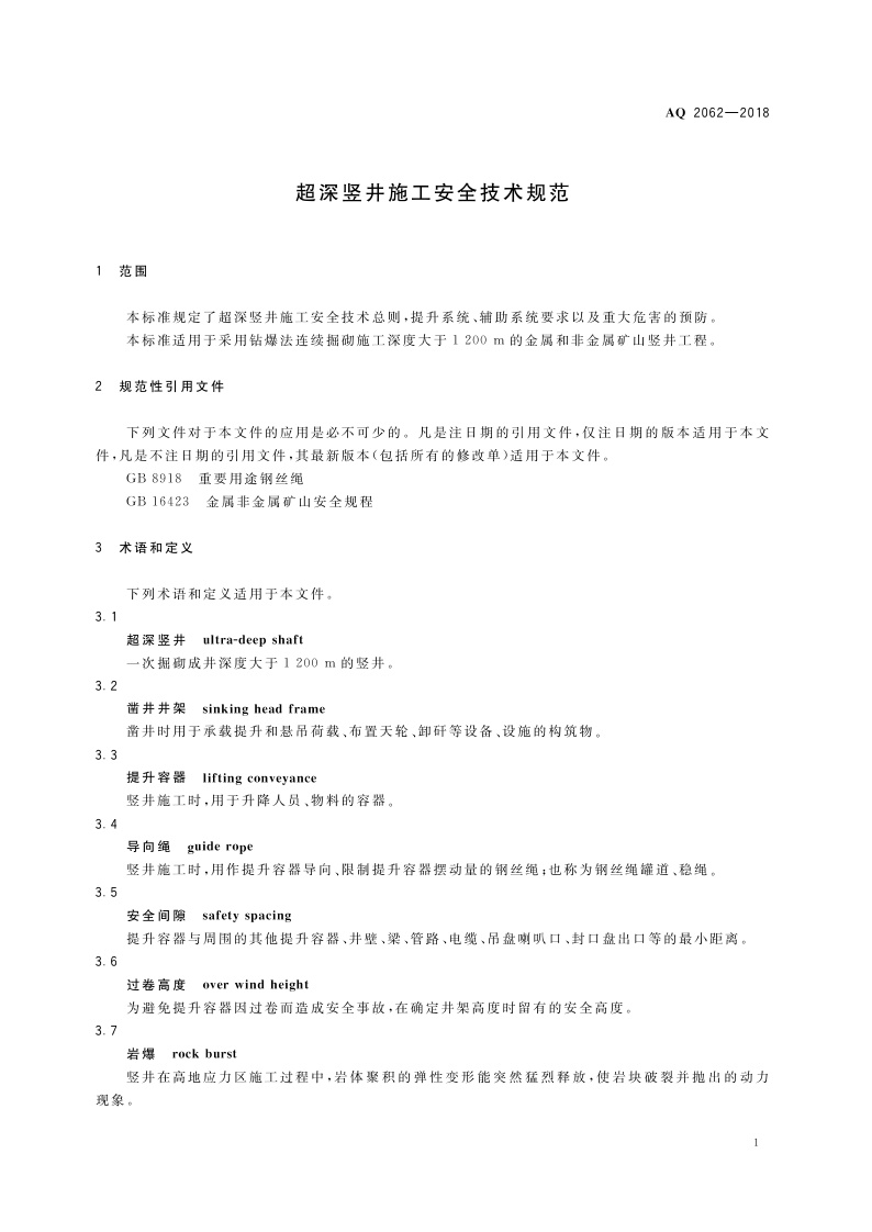 《超深竖井施工安全技术规范》(AQ 2062-2018)
