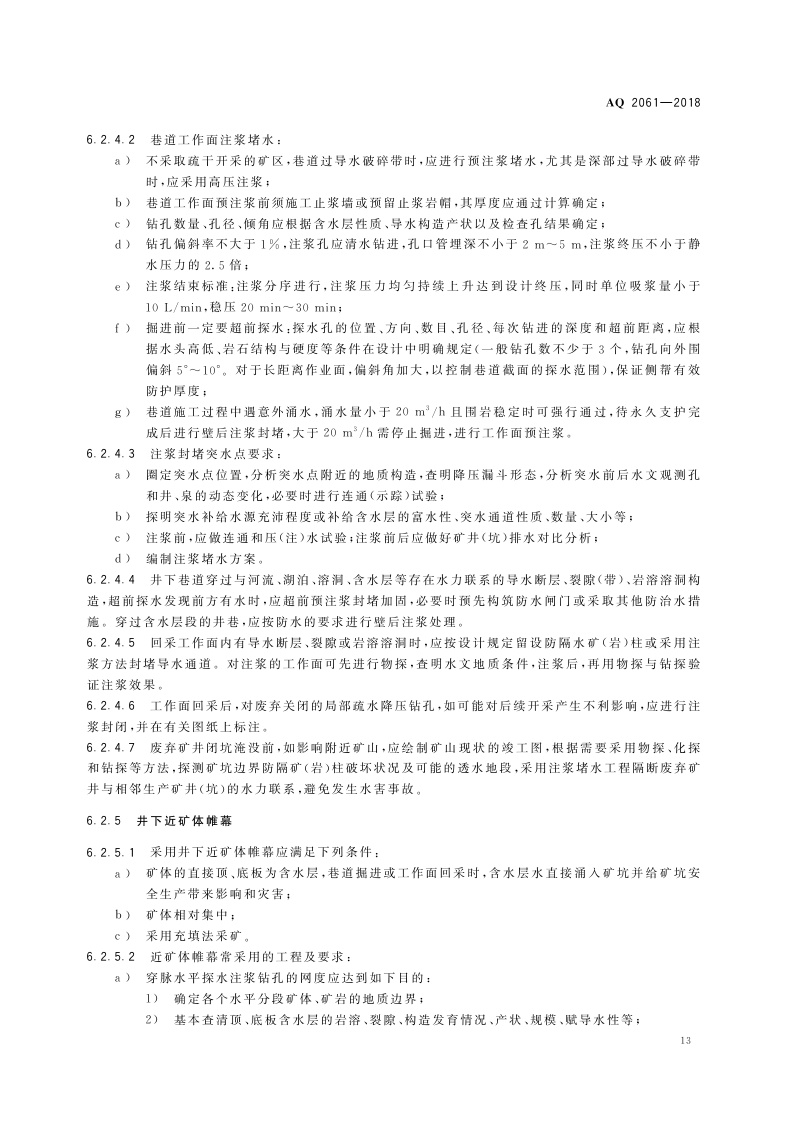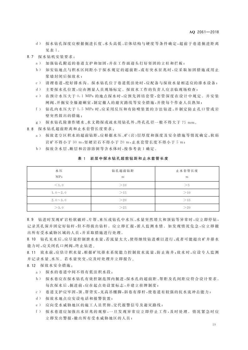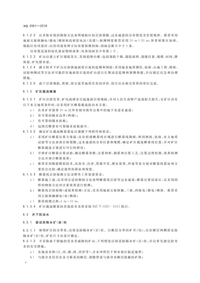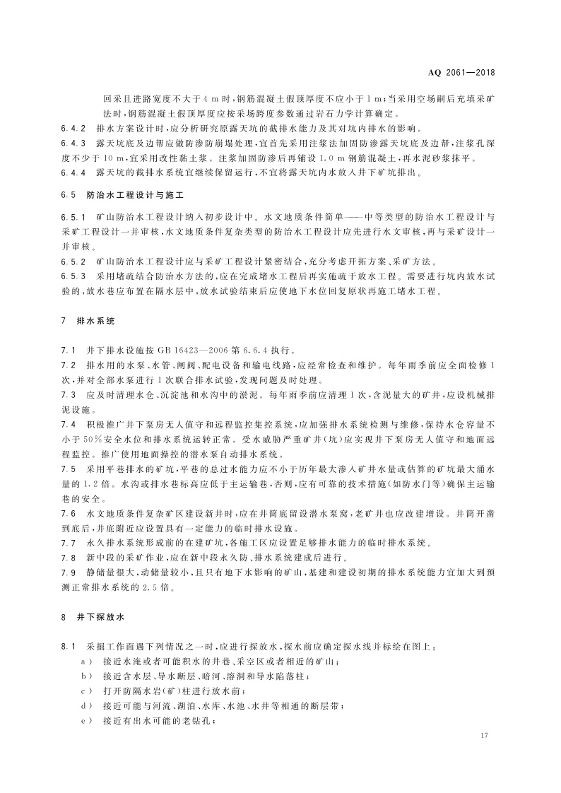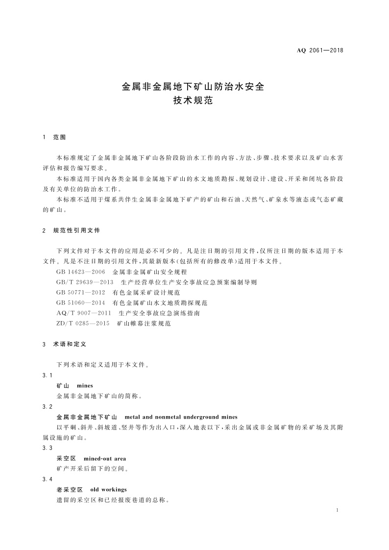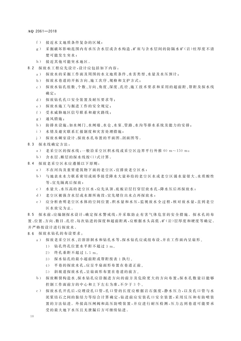 《金属非金属地下矿山防治水安全技术规范》(AQ 2061-2018)