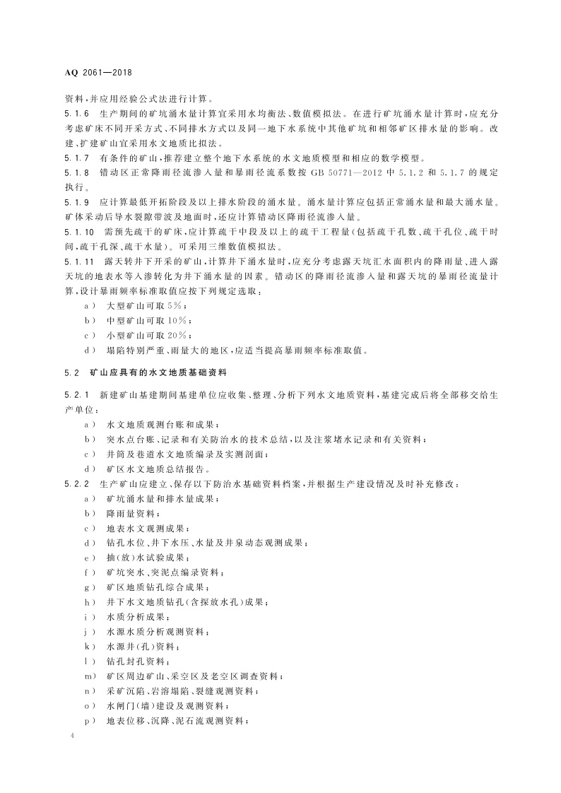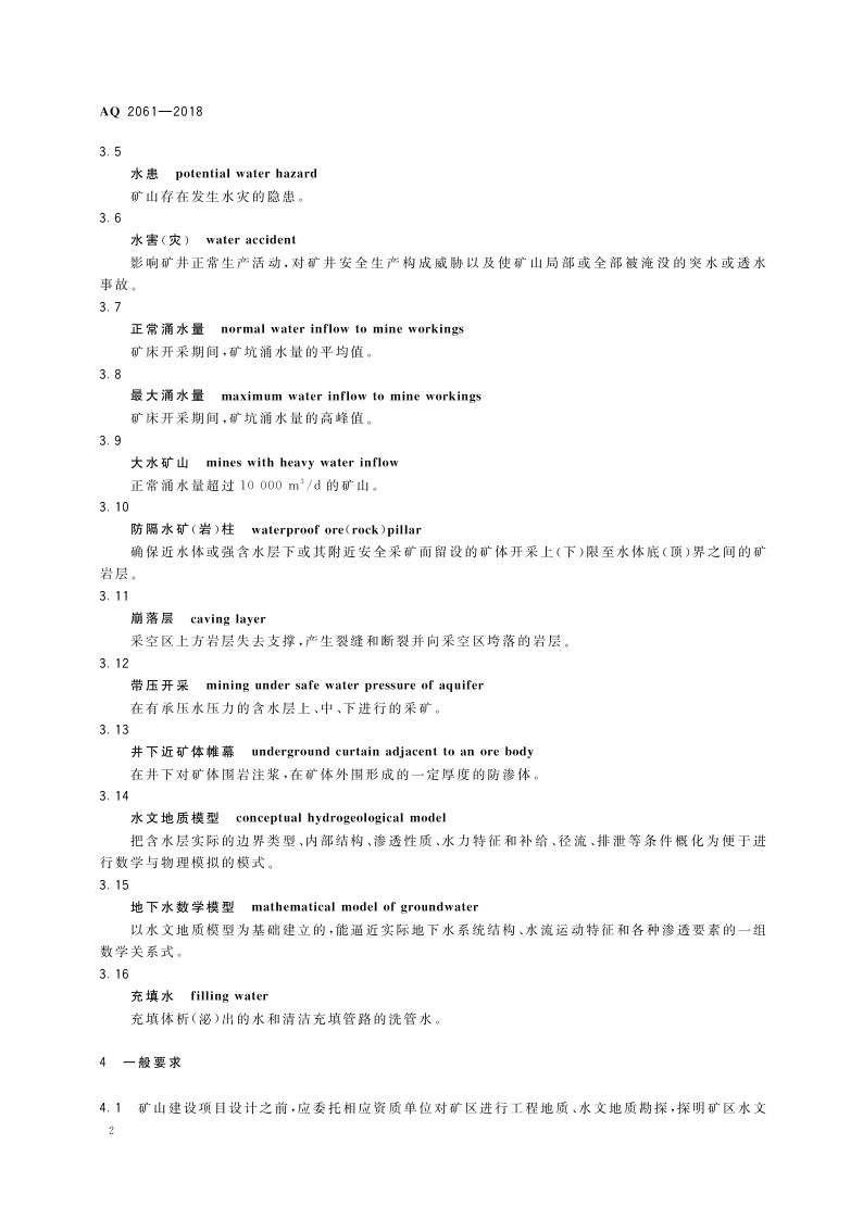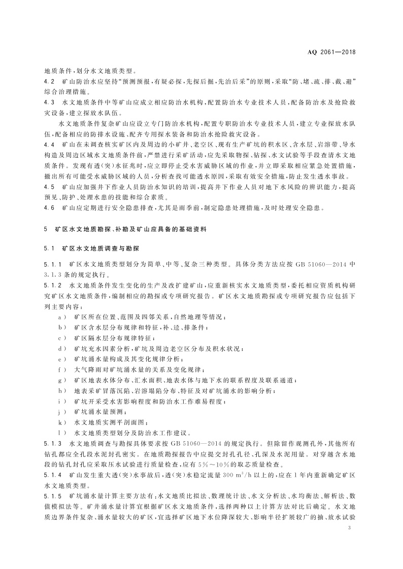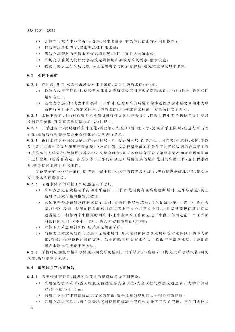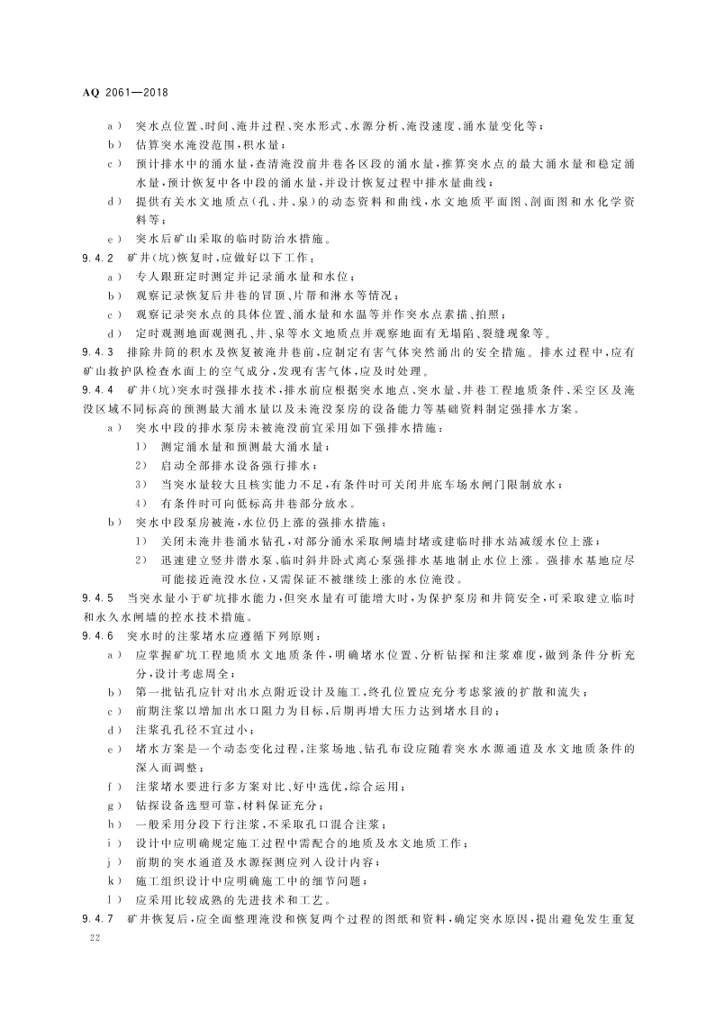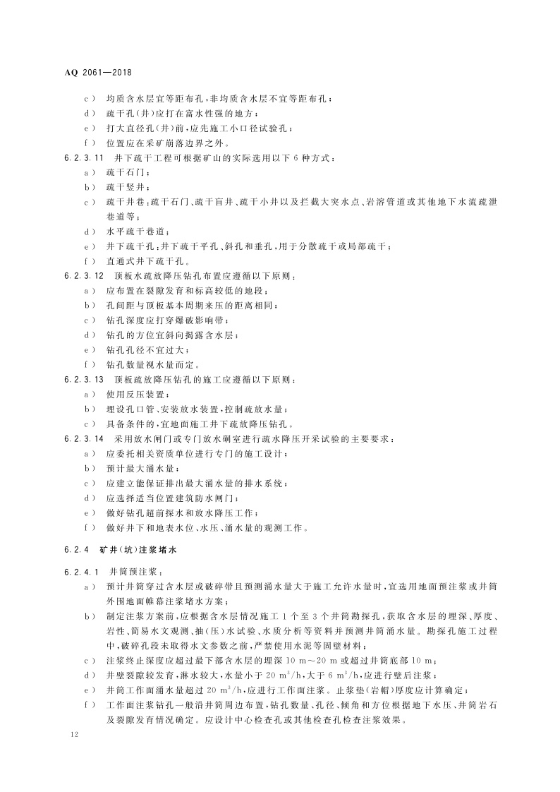 《金属非金属地下矿山防治水安全技术规范》(AQ 2061-2018)