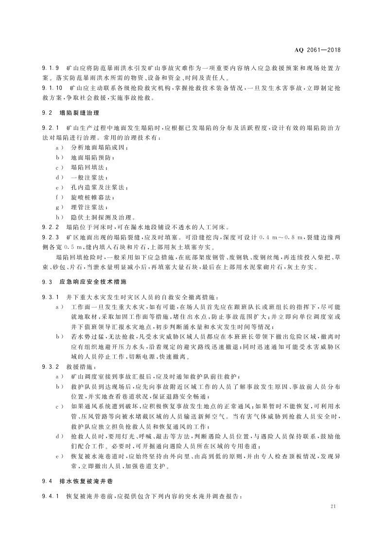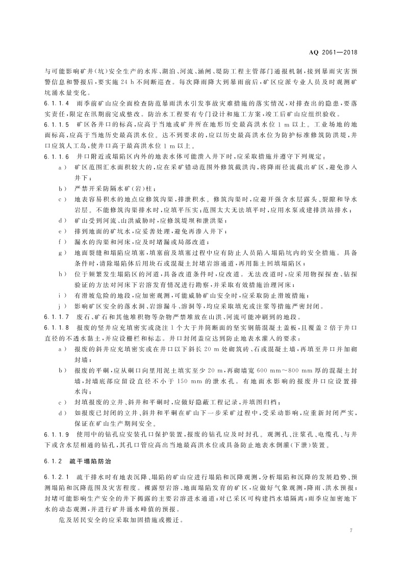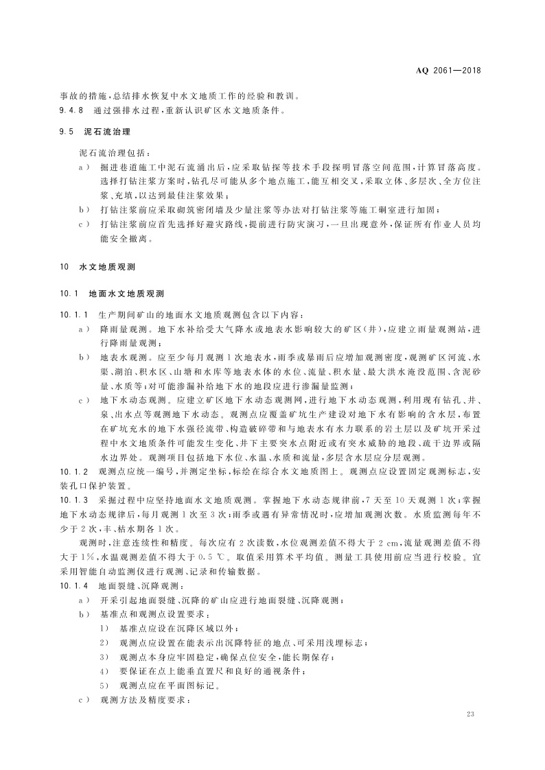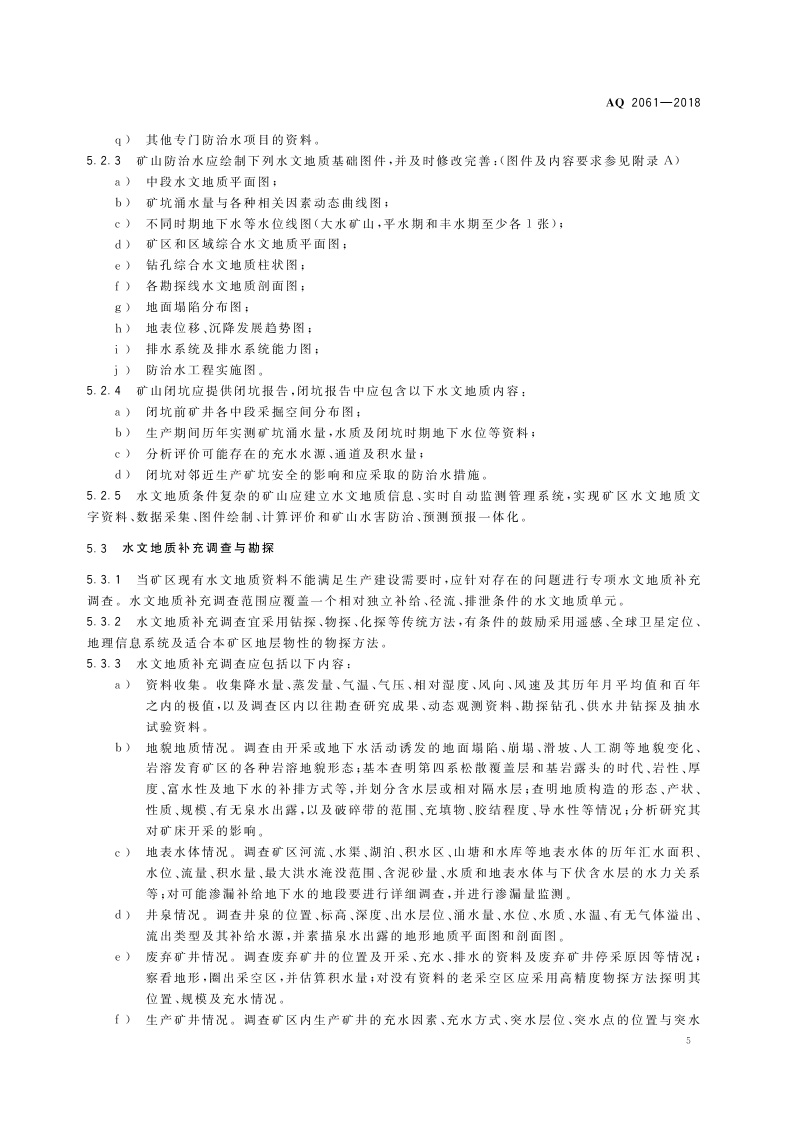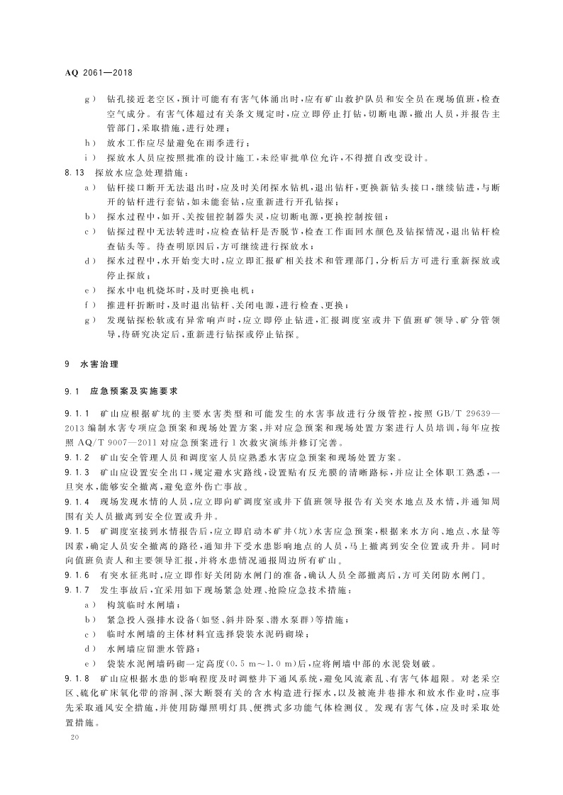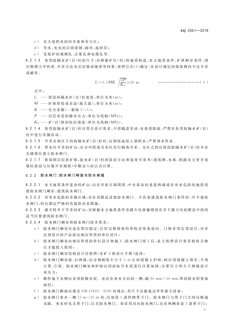 《金属非金属地下矿山防治水安全技术规范》(AQ 2061-2018)