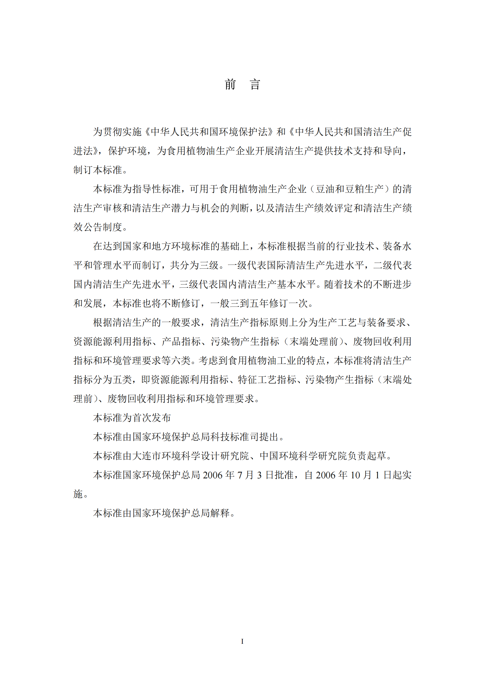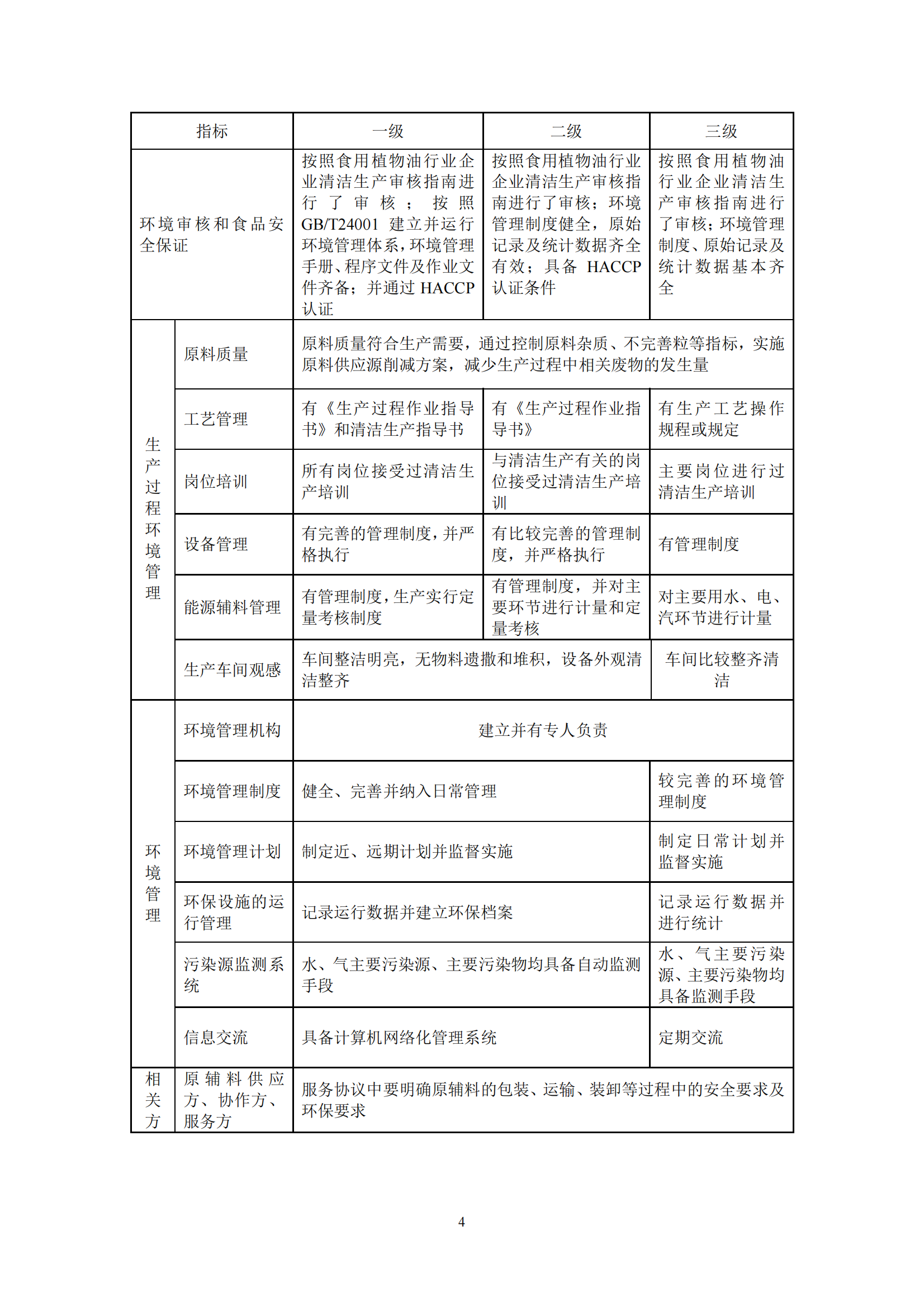 食用油的清洁生产标准