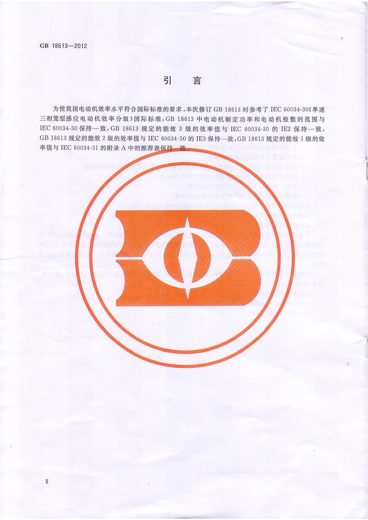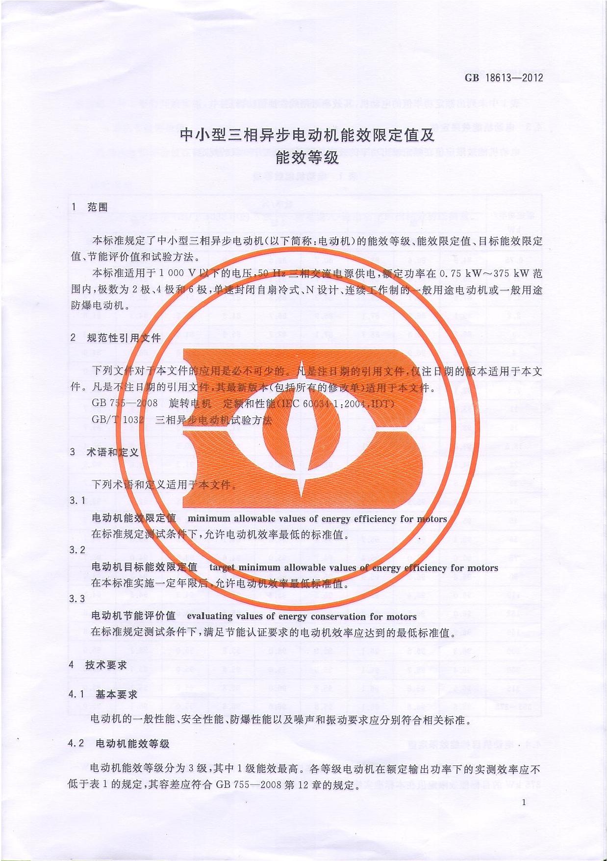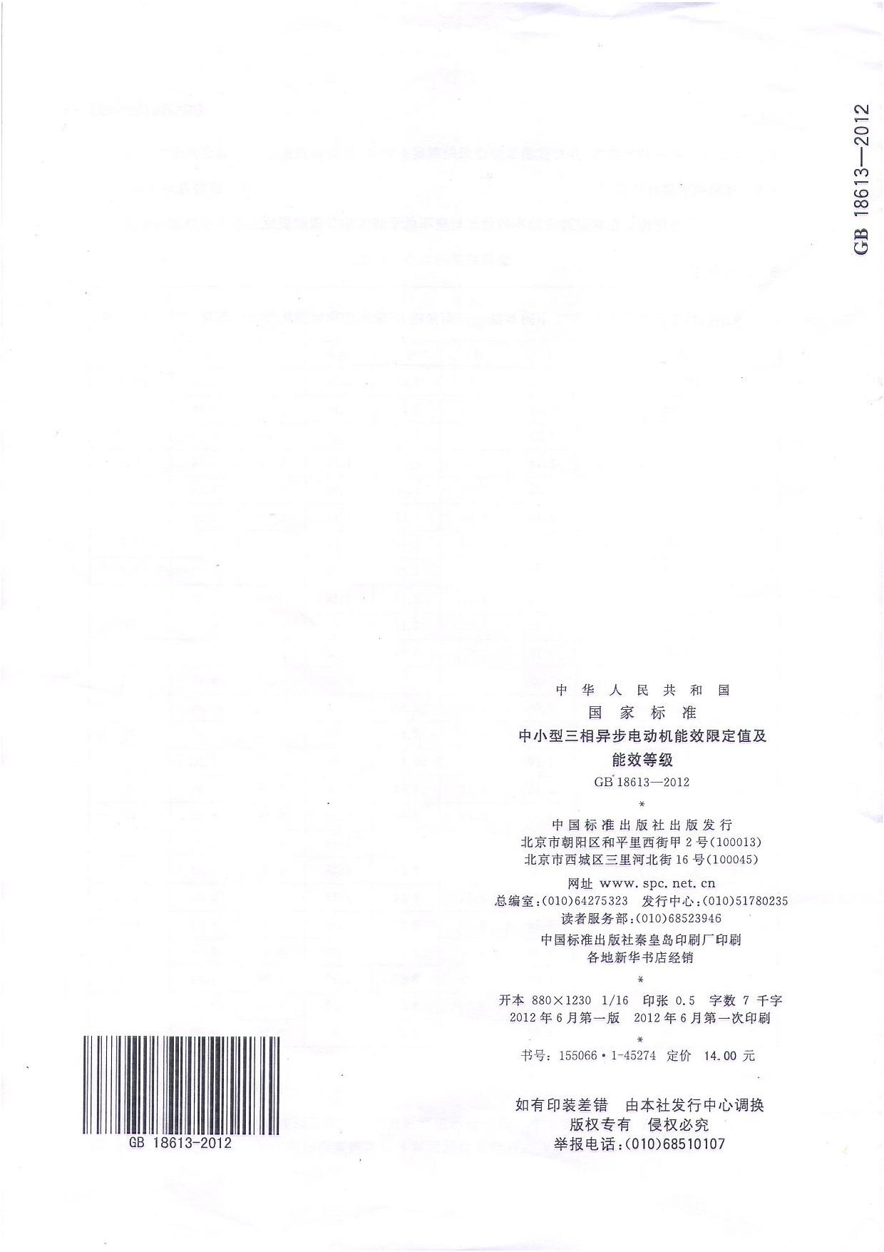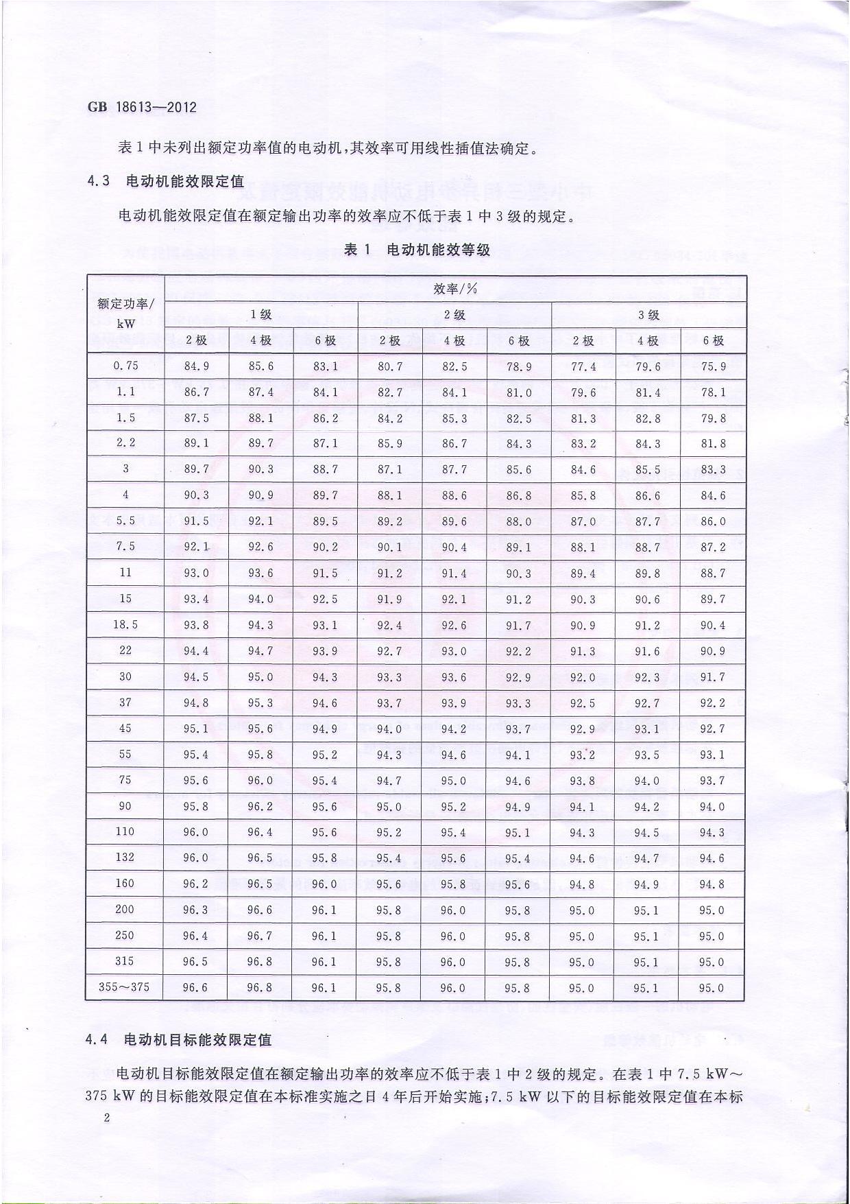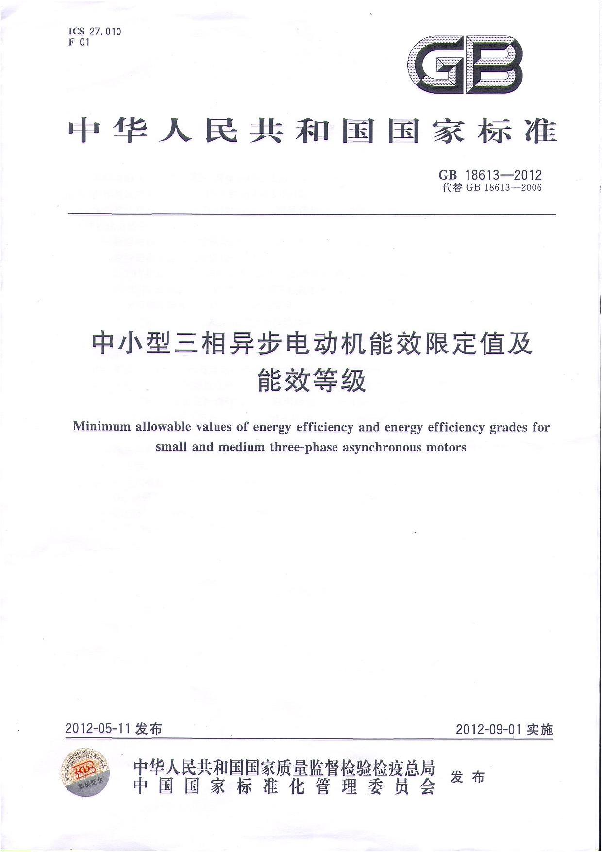 中小型三相异步电动机能效限定值及能效等级GB18613-2012