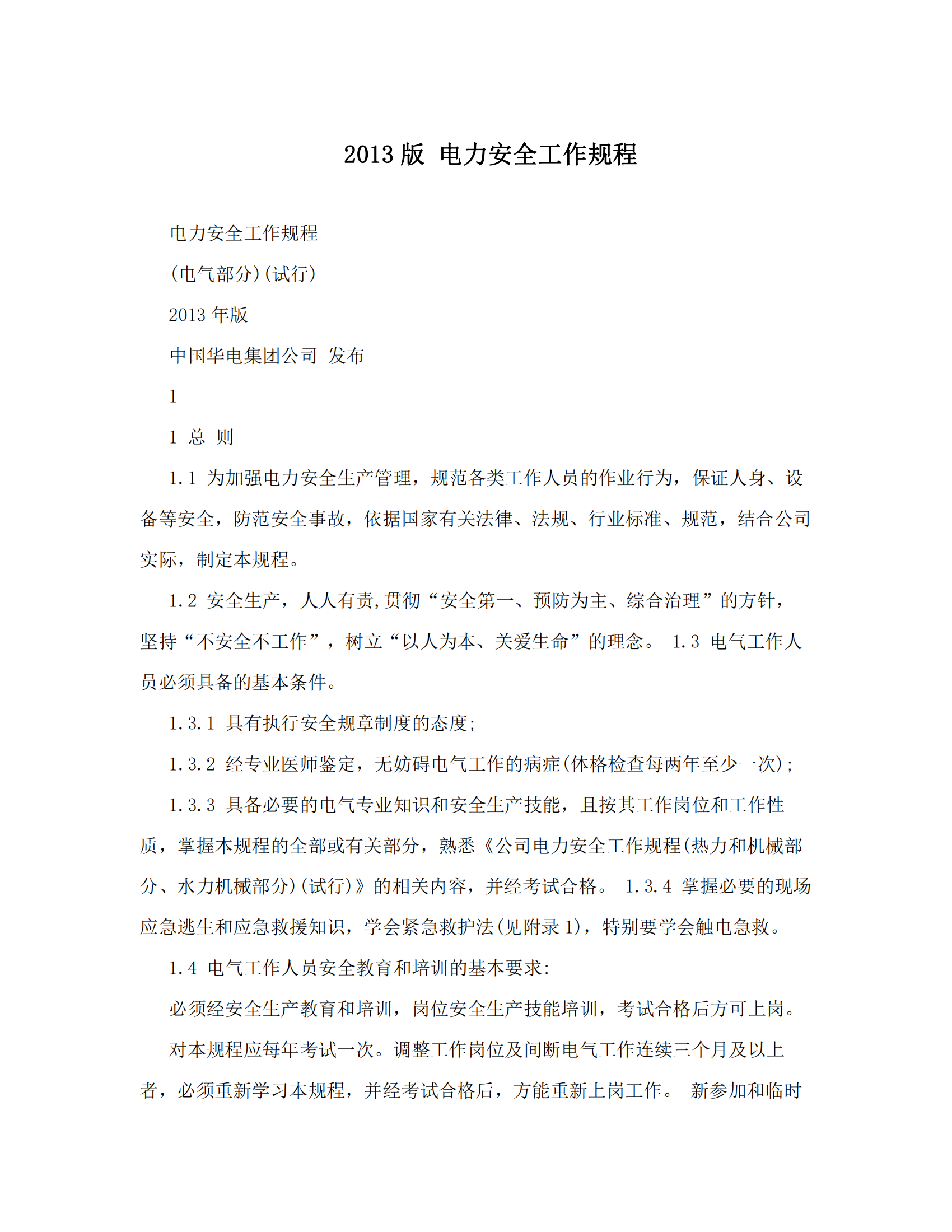 电力安全工作规程