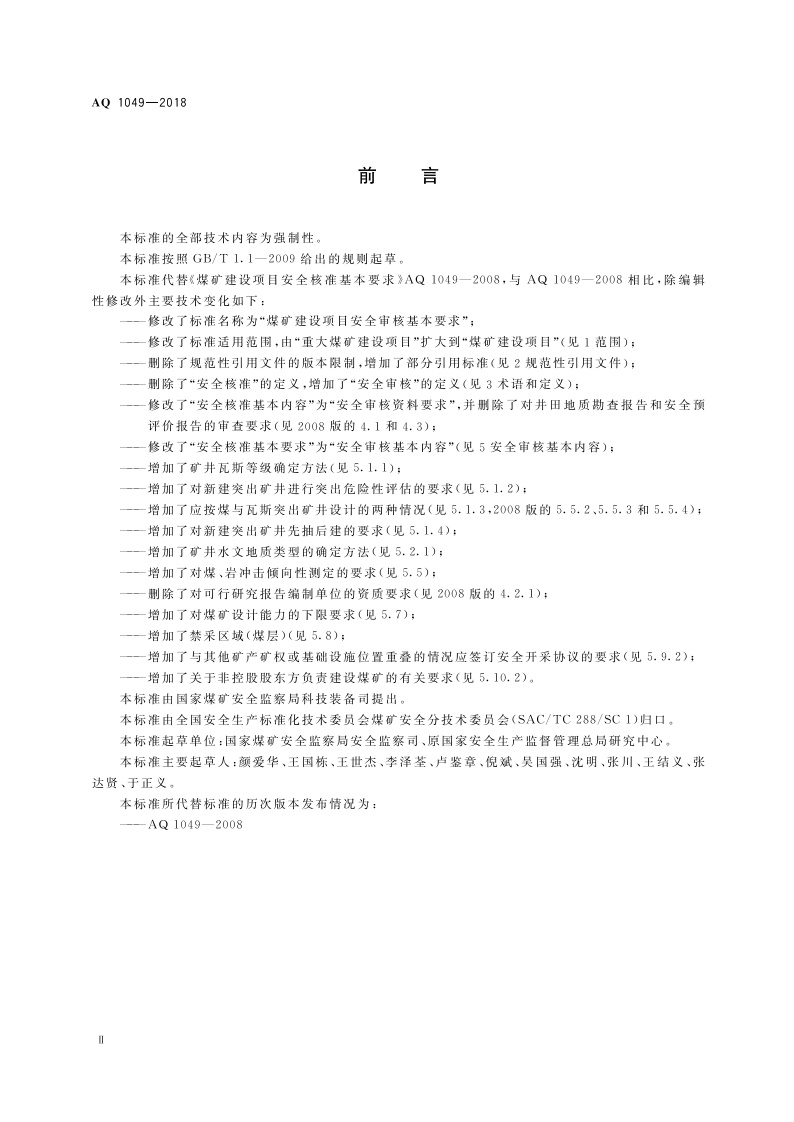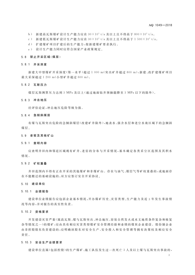 《煤矿建设项目安全审核基本要求》(AQ 1049-2018)