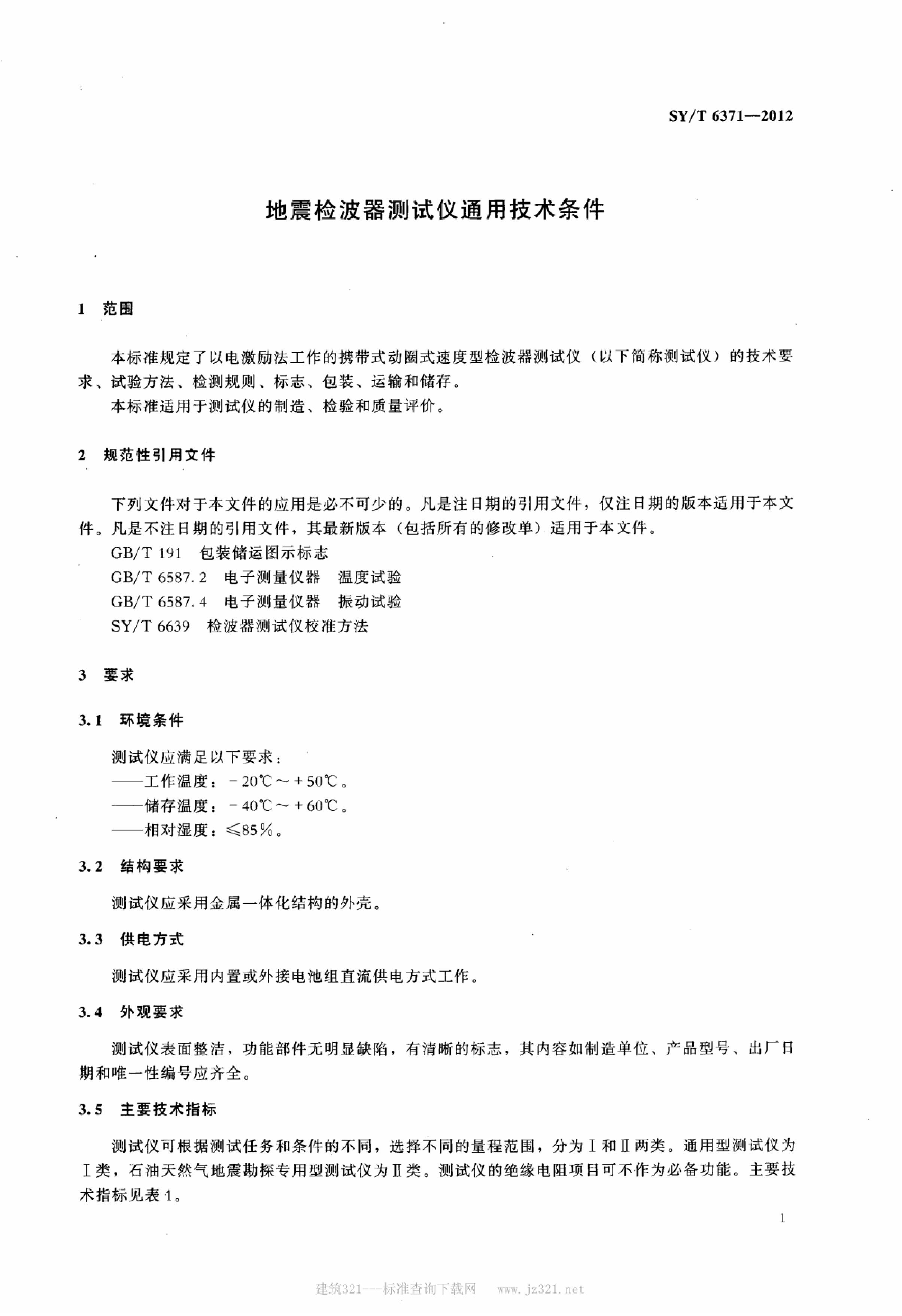 SYT6371-2012地震检波器测试仪通用技术条件