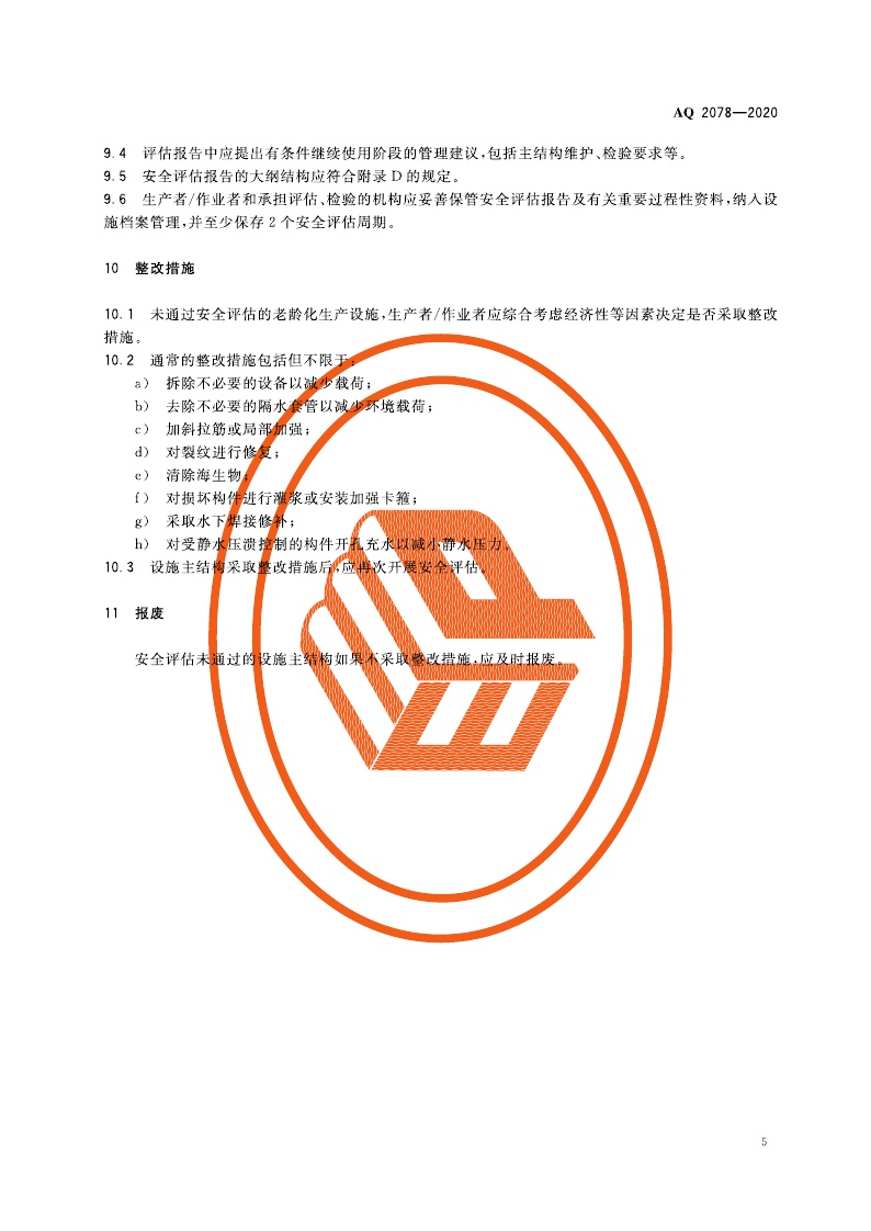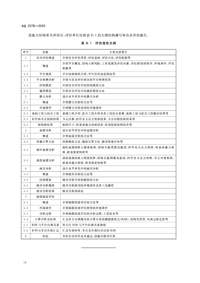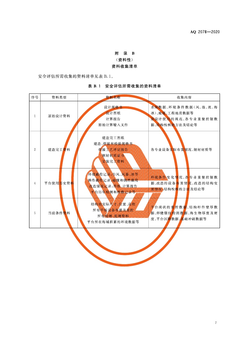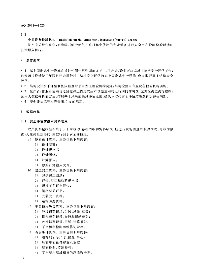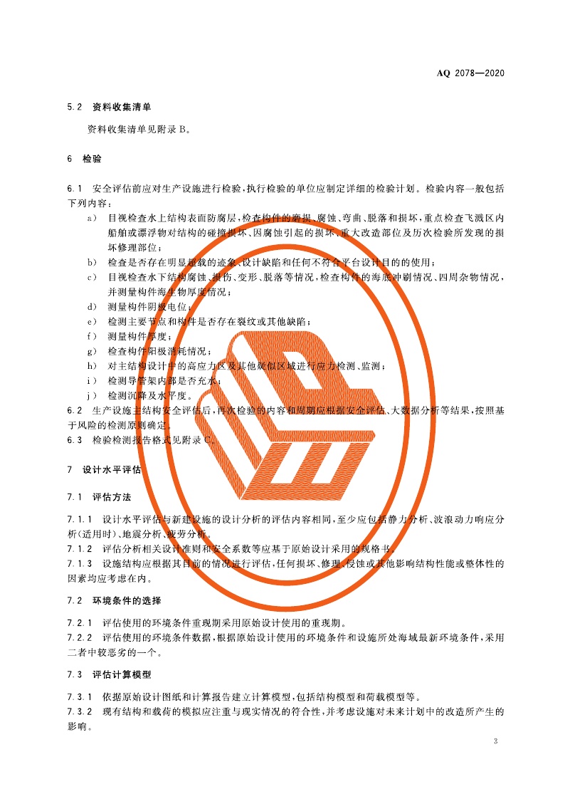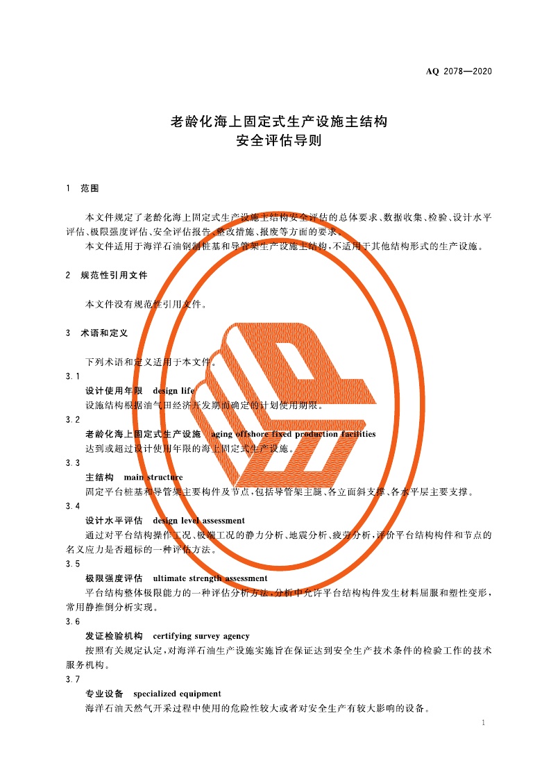 《老龄化海上固定式生产设施主结构安全评估导则》(AQ 2078-2020)