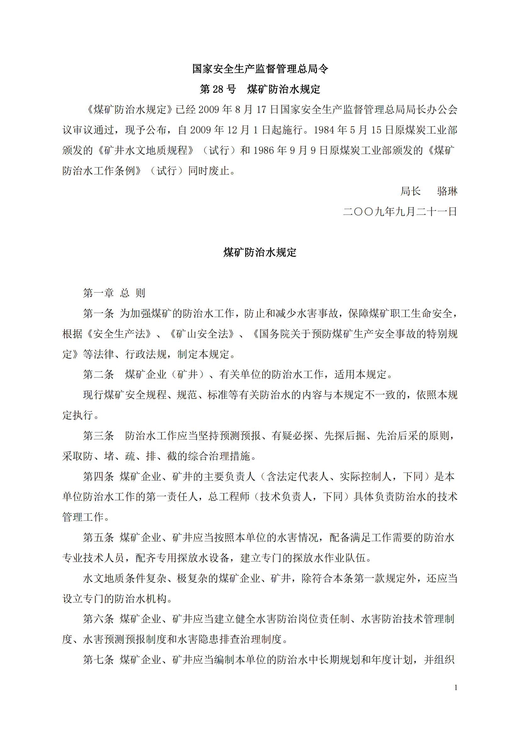 煤矿防治水规定