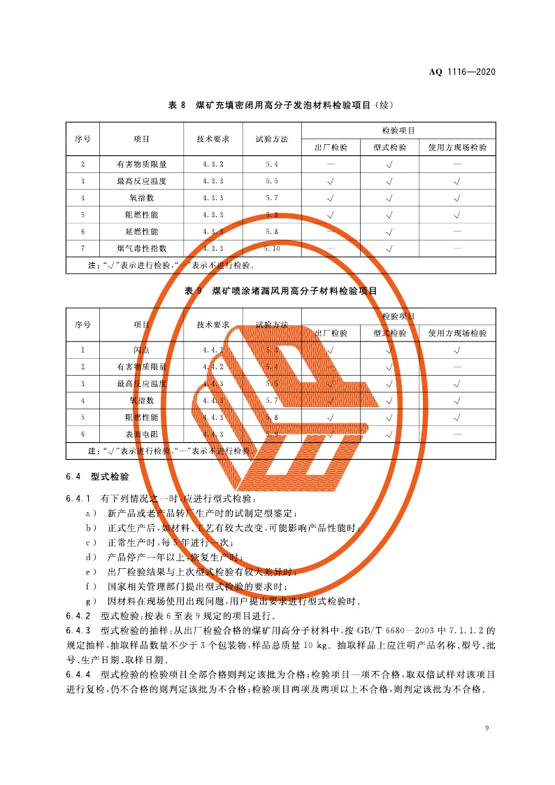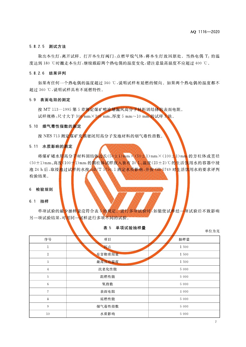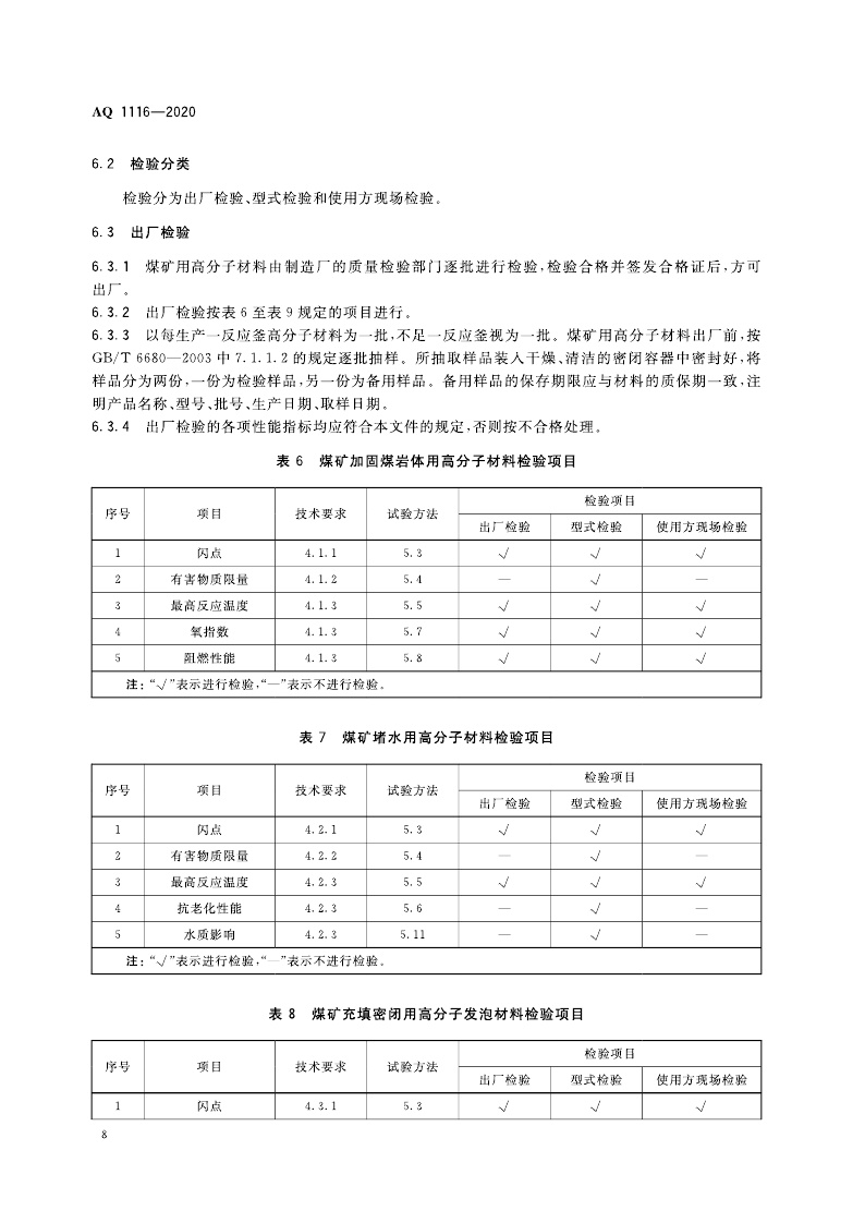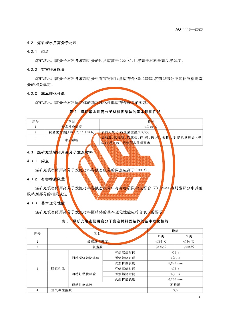 《煤矿加固、堵水、充填和喷涂用高分子材料通用安全技术规范》(AQ 1116-2020)