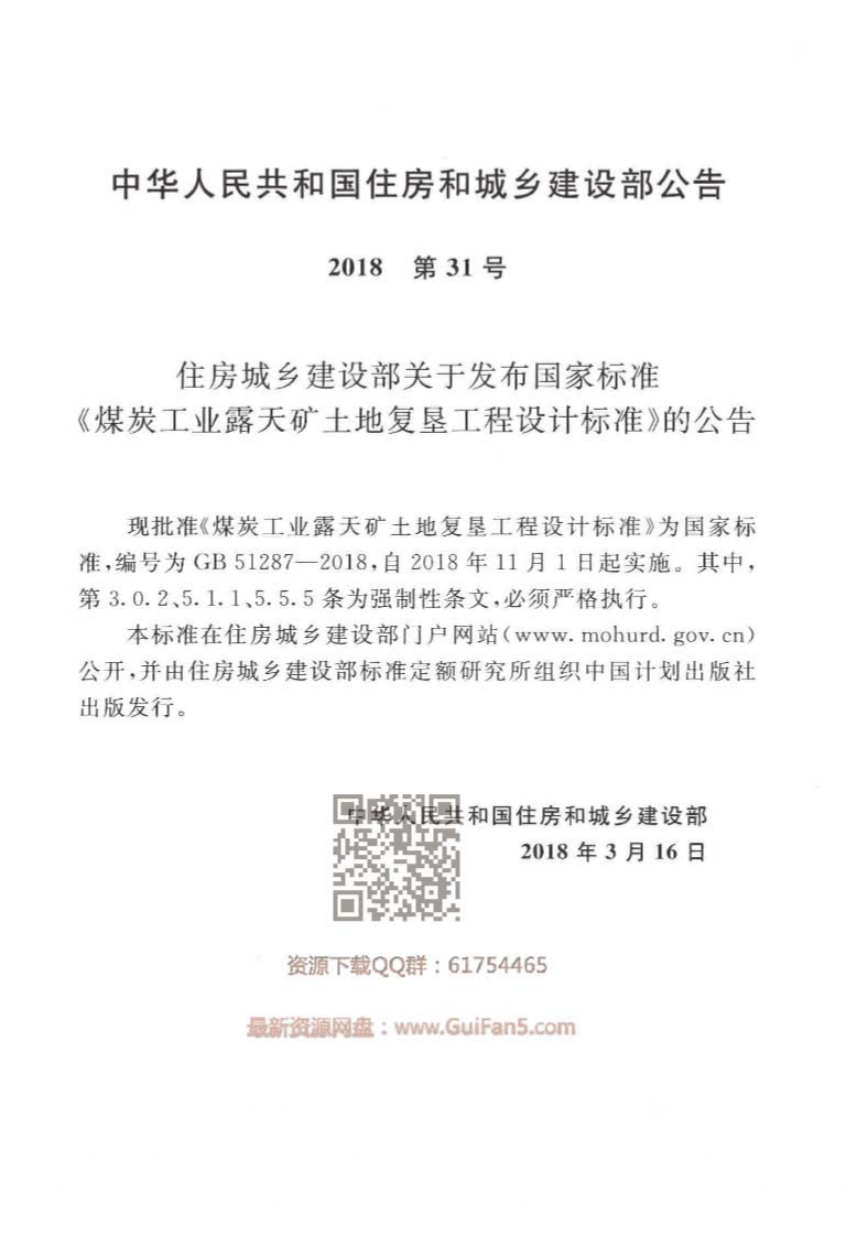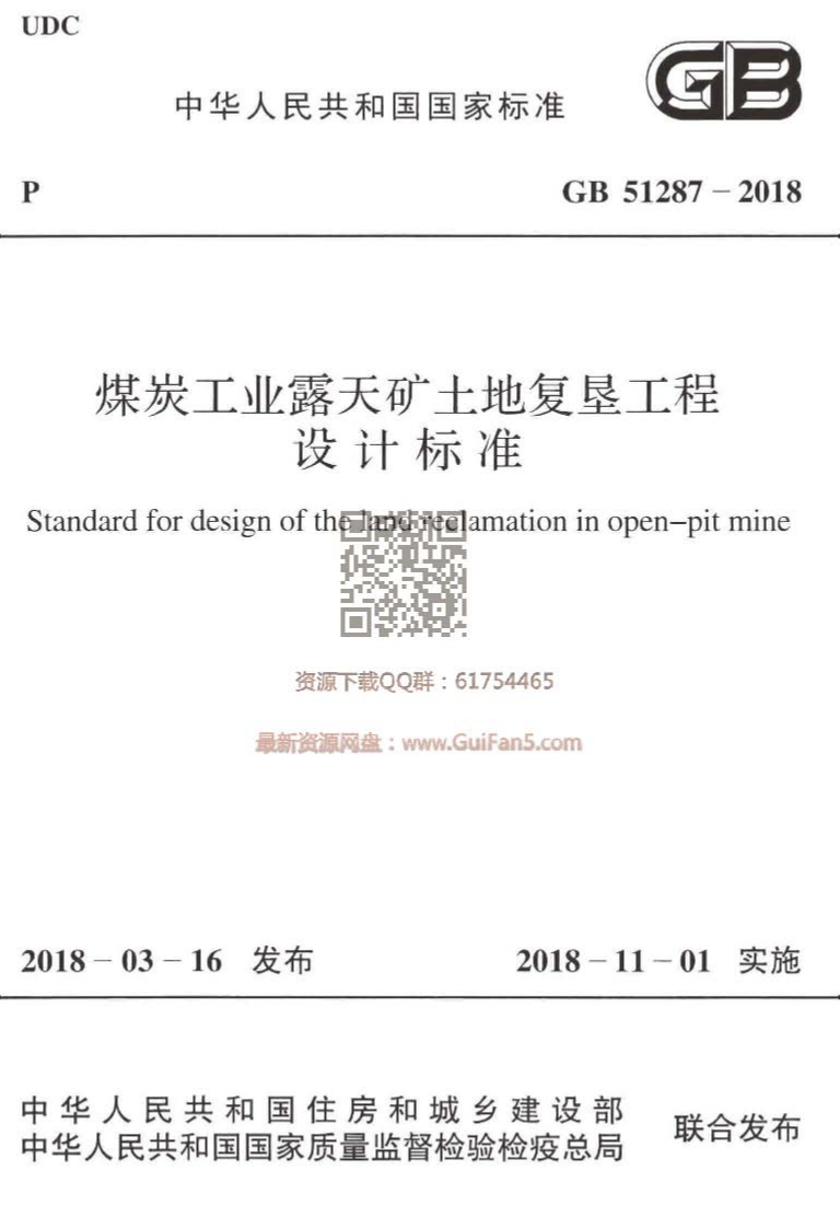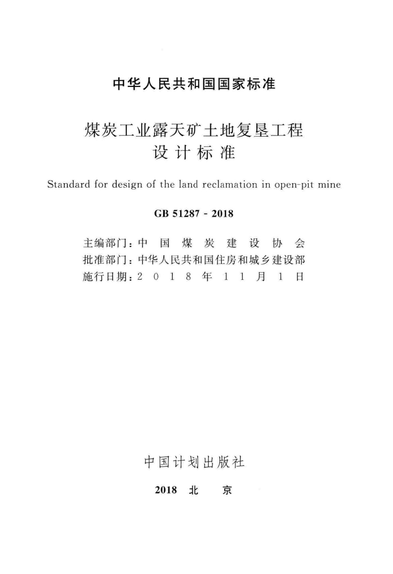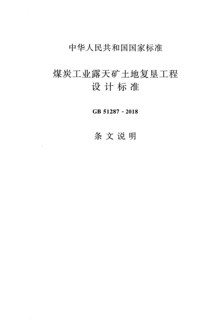 GB51287-2018煤炭工业露天矿土地复垦工程设计标准