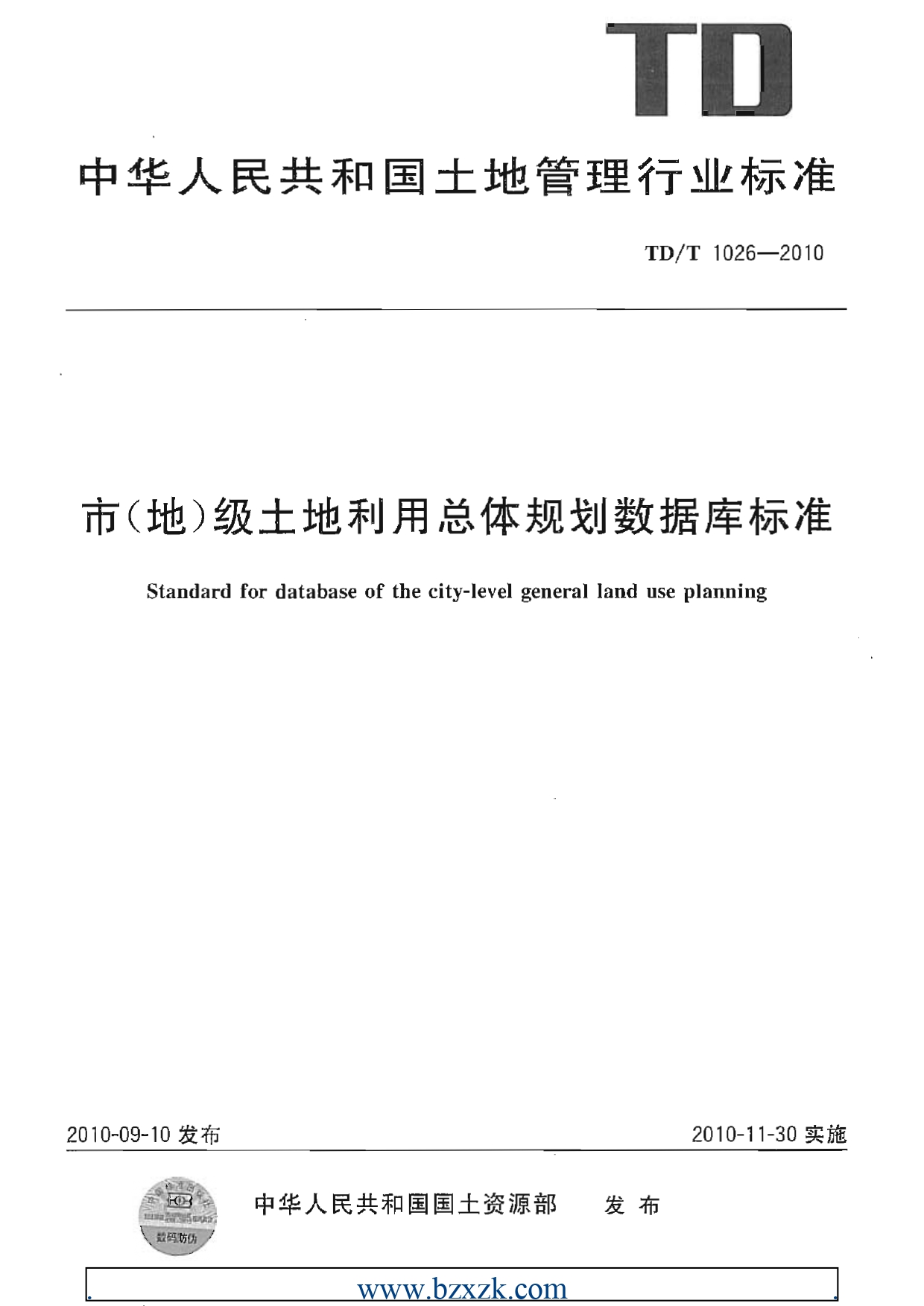 TDT1026-2010市(地)土地利用总体规划数据库标准