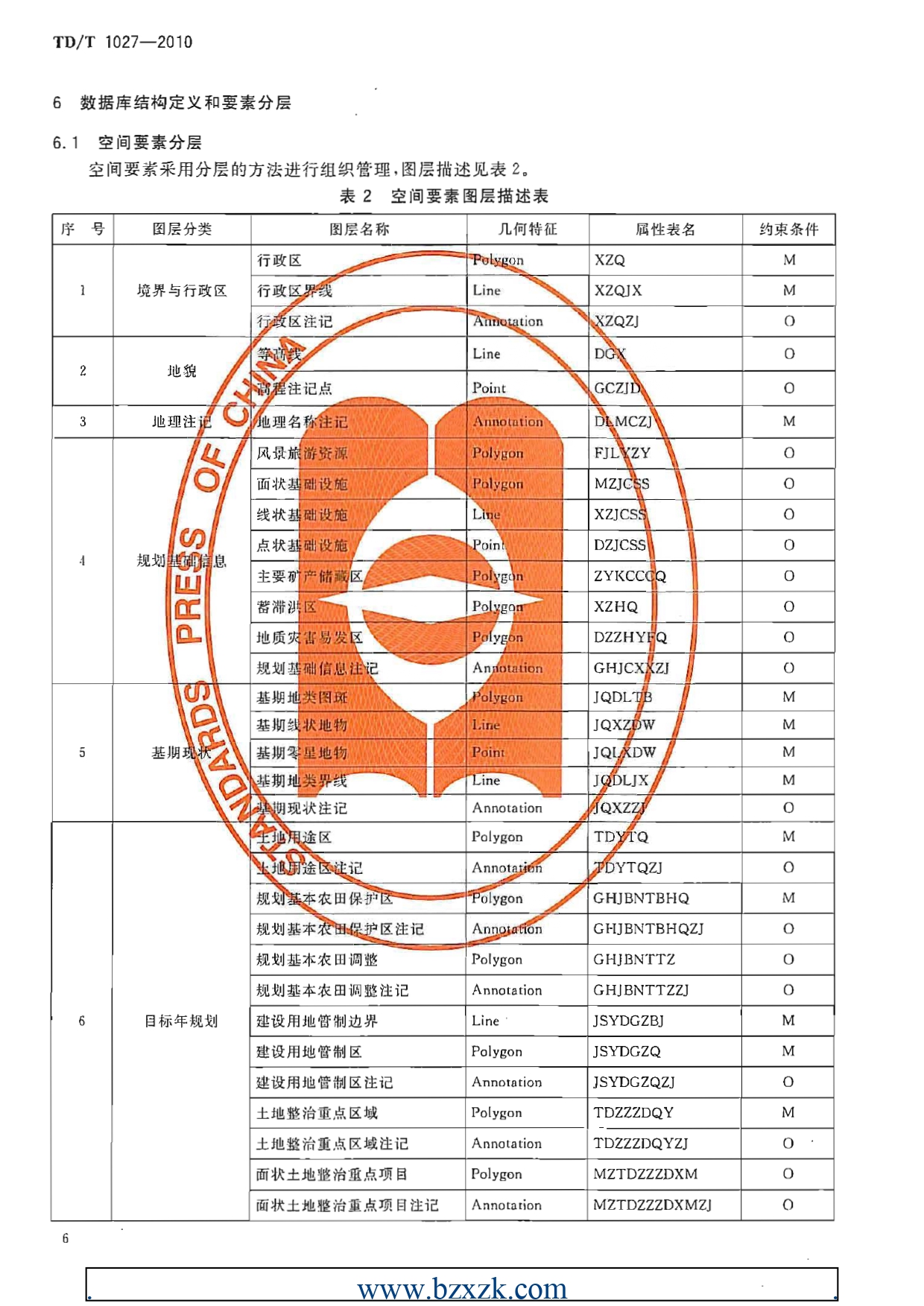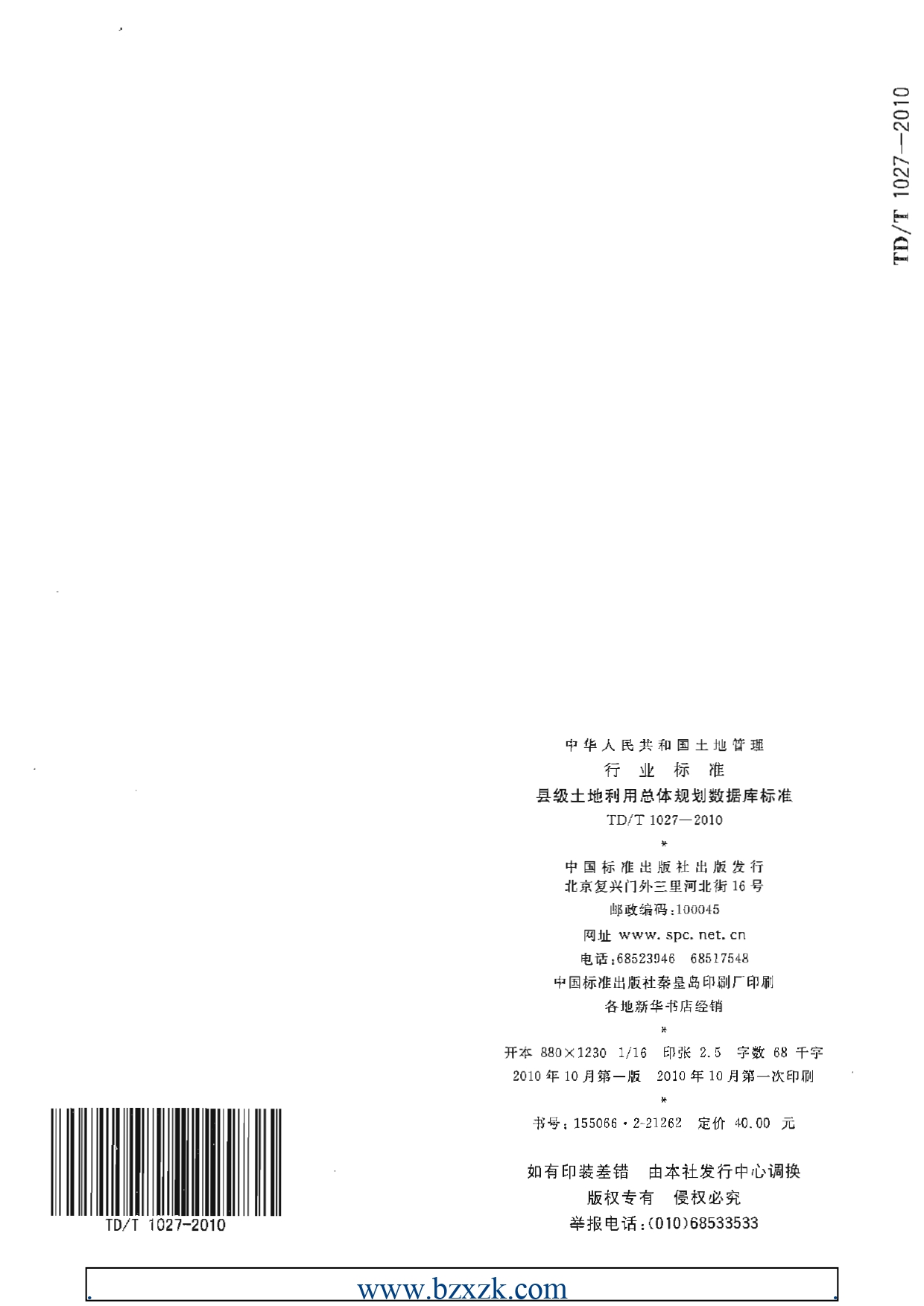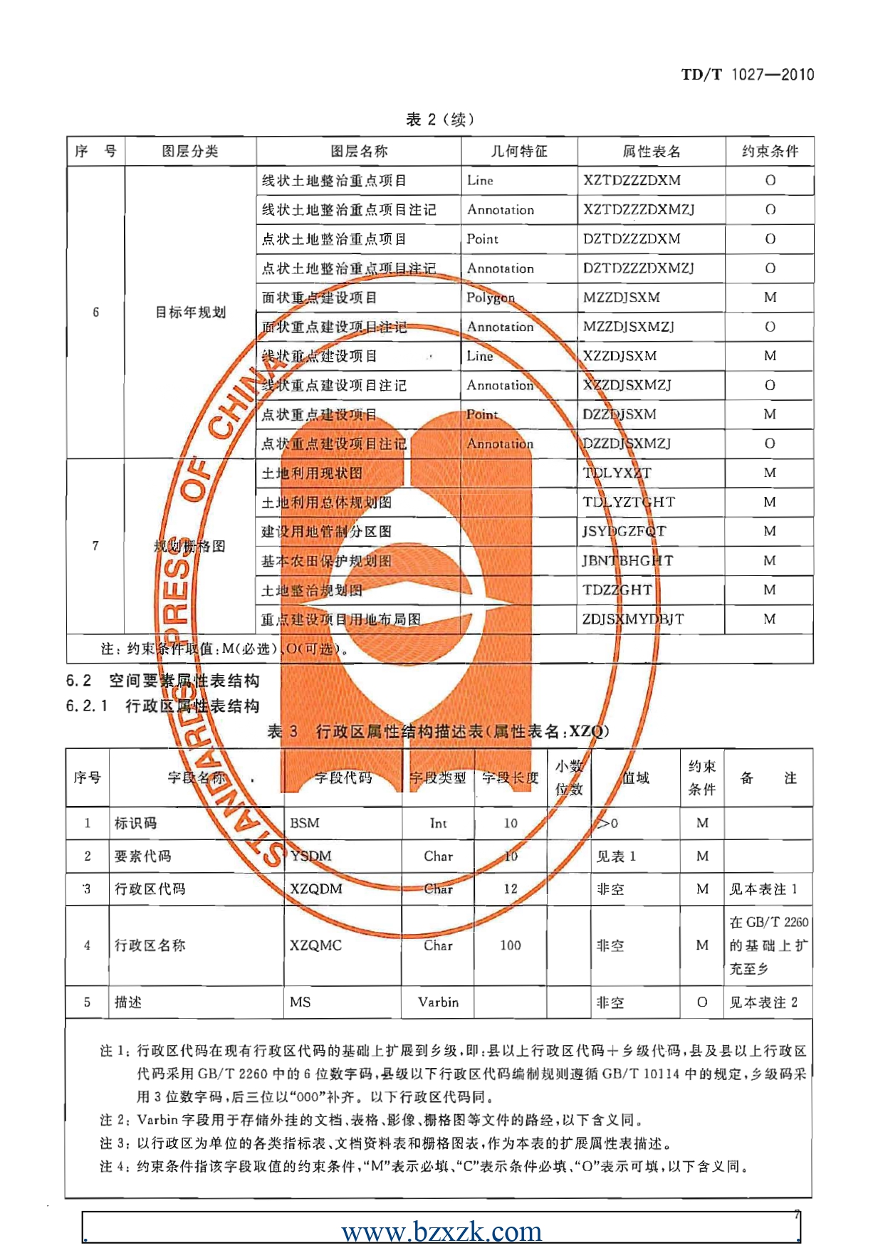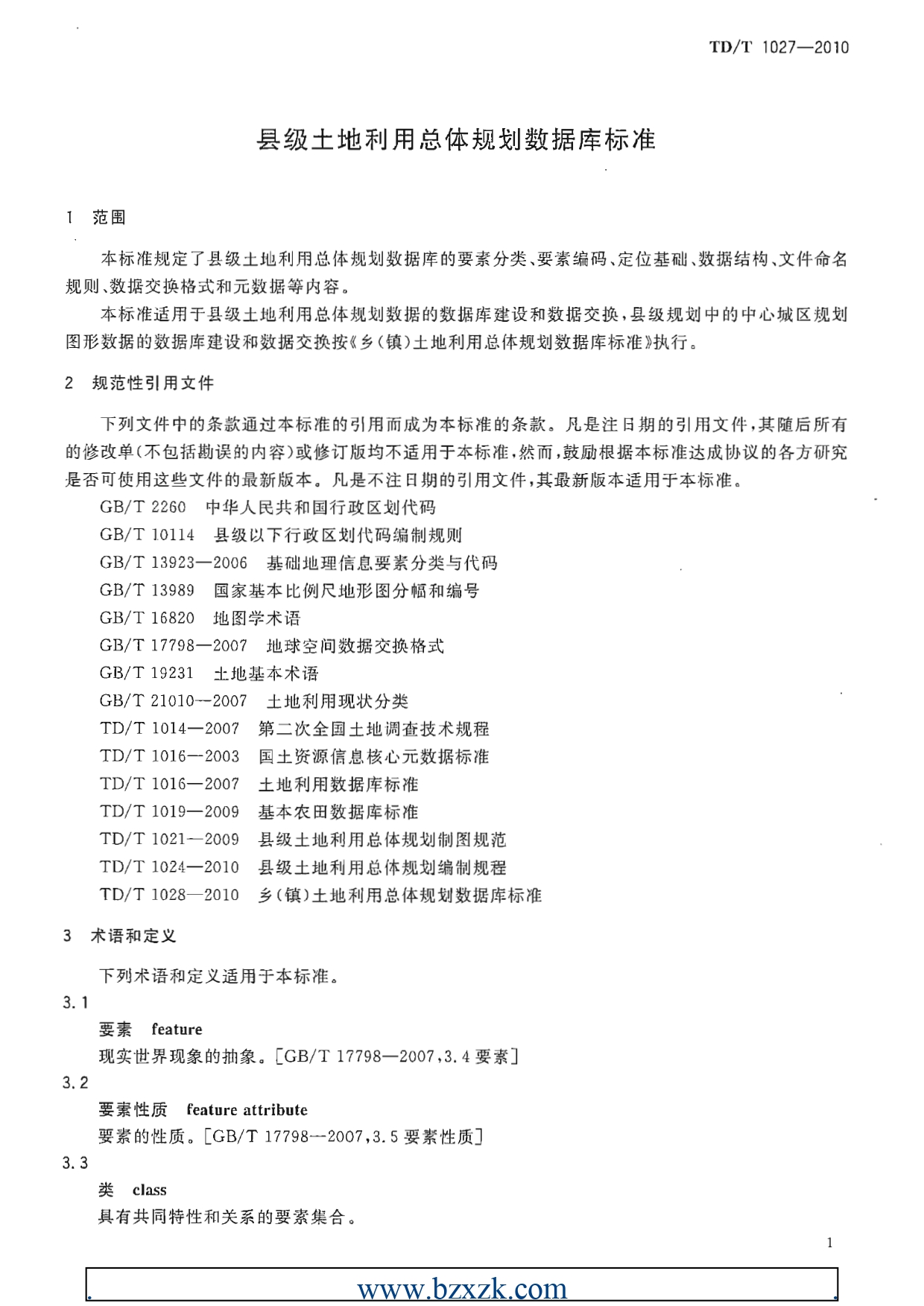 TDT1027-2010县土地利用总体规划数据库标准