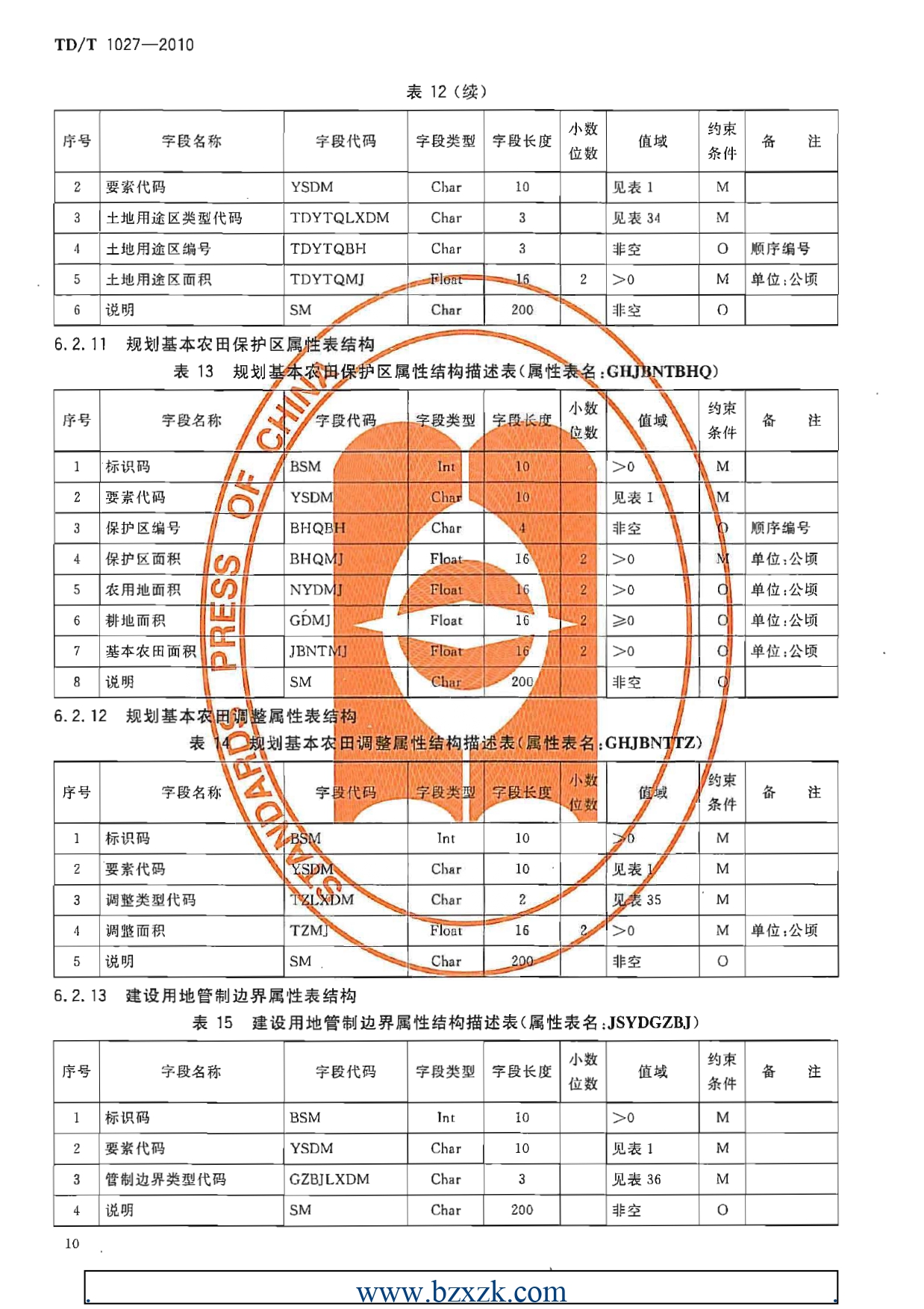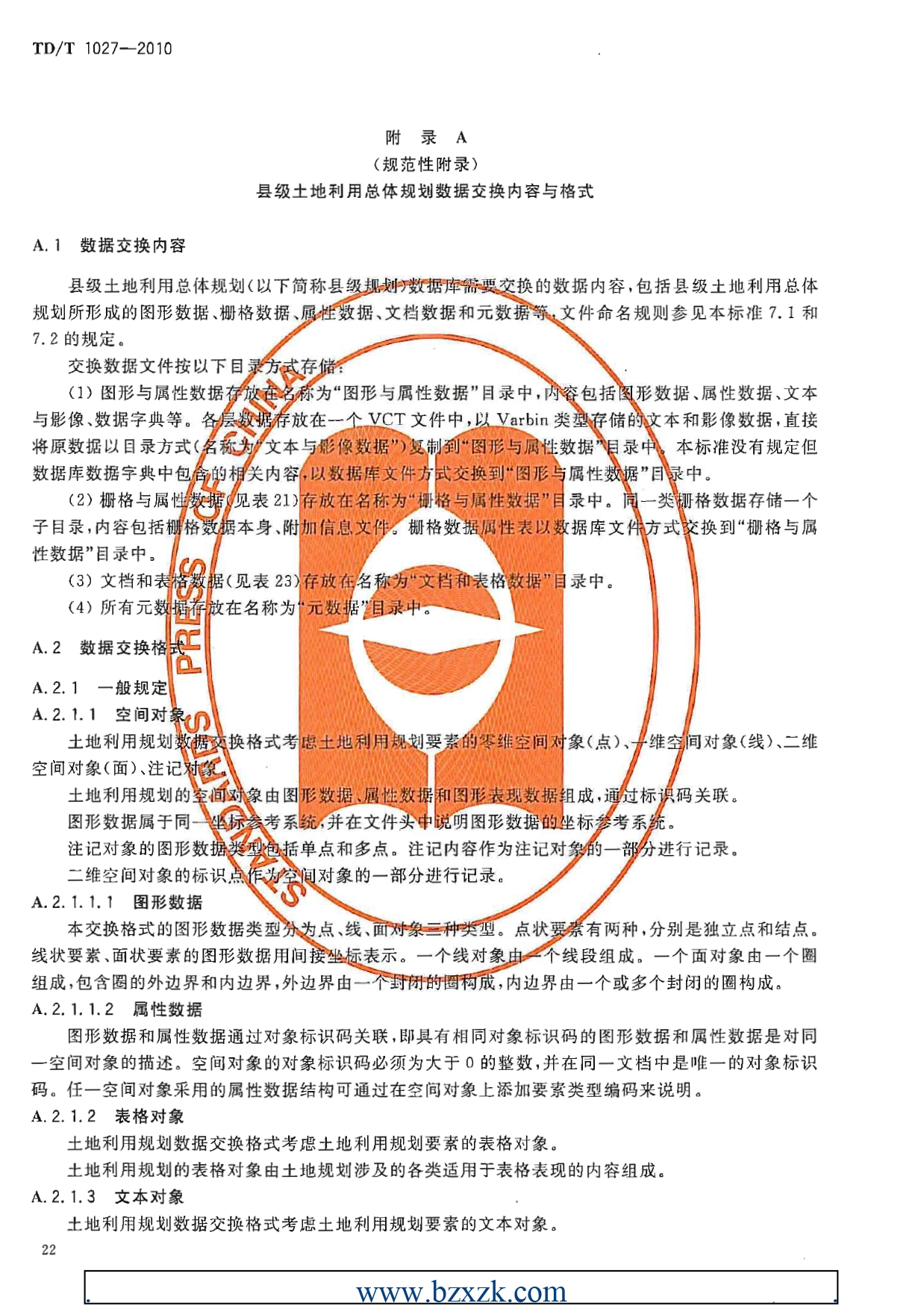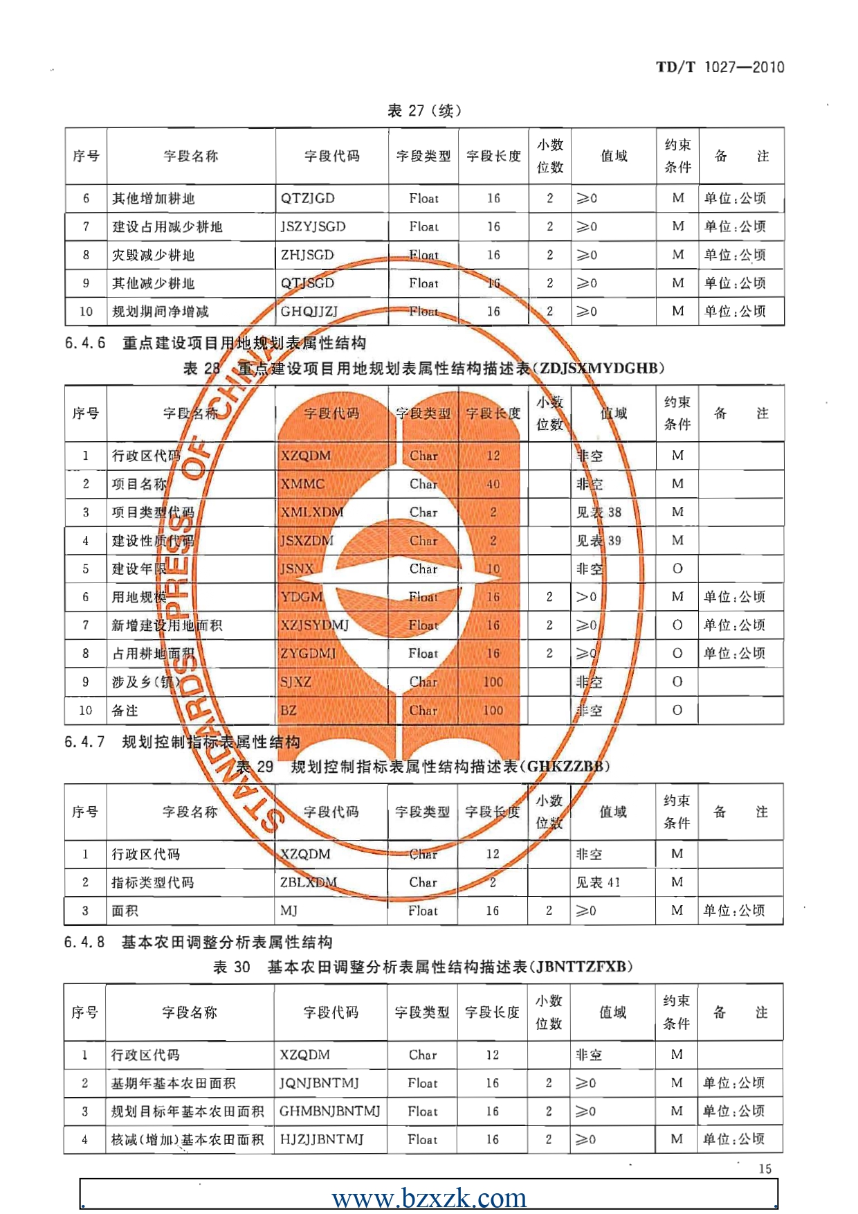 TDT1027-2010县土地利用总体规划数据库标准