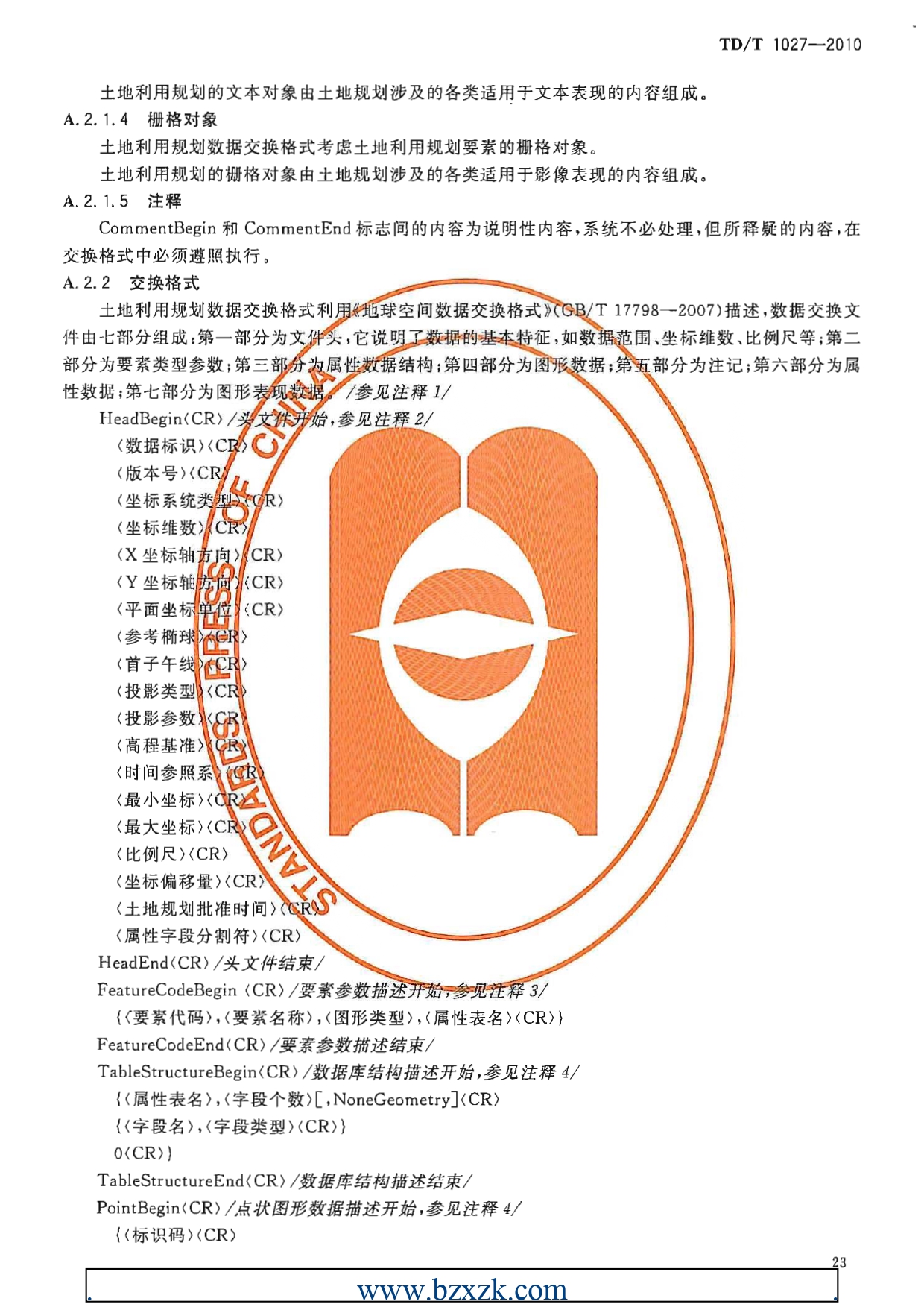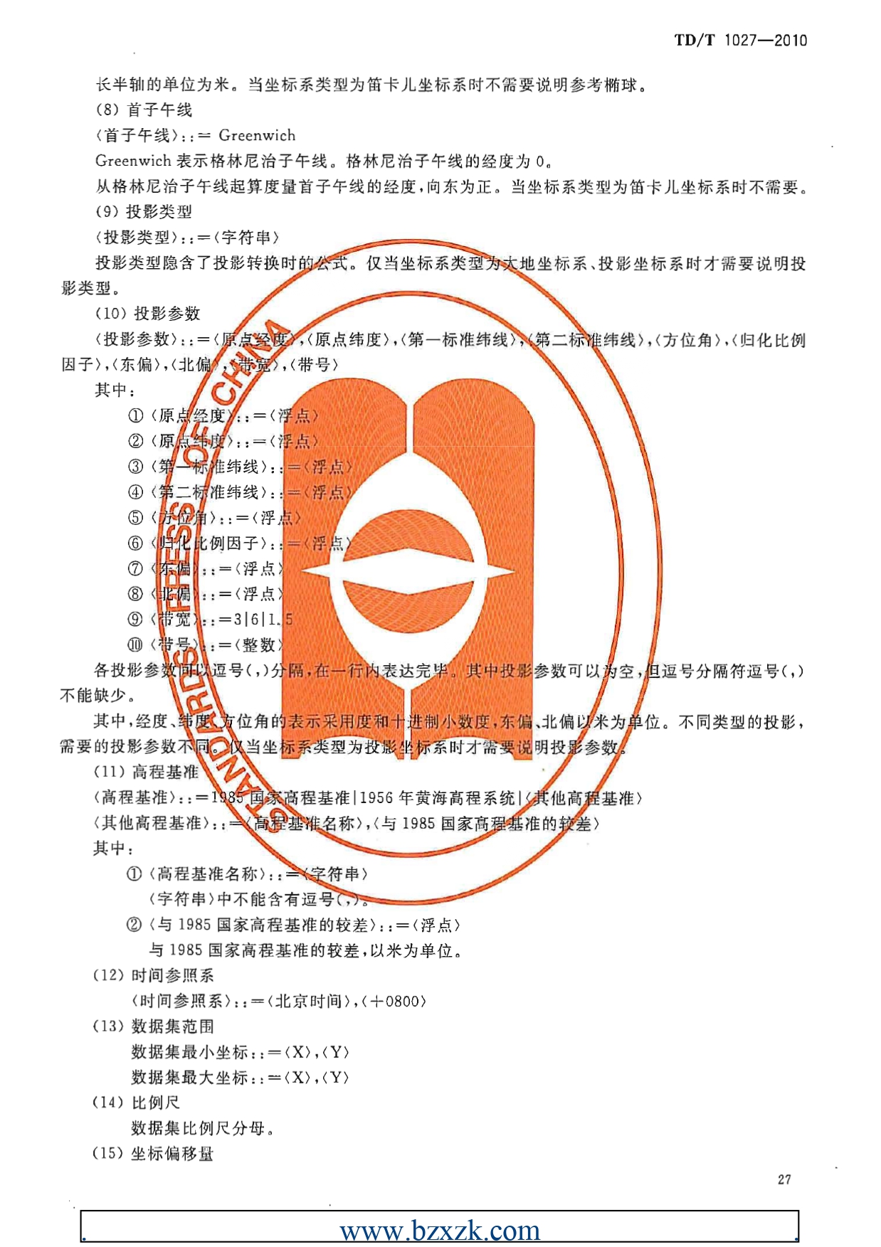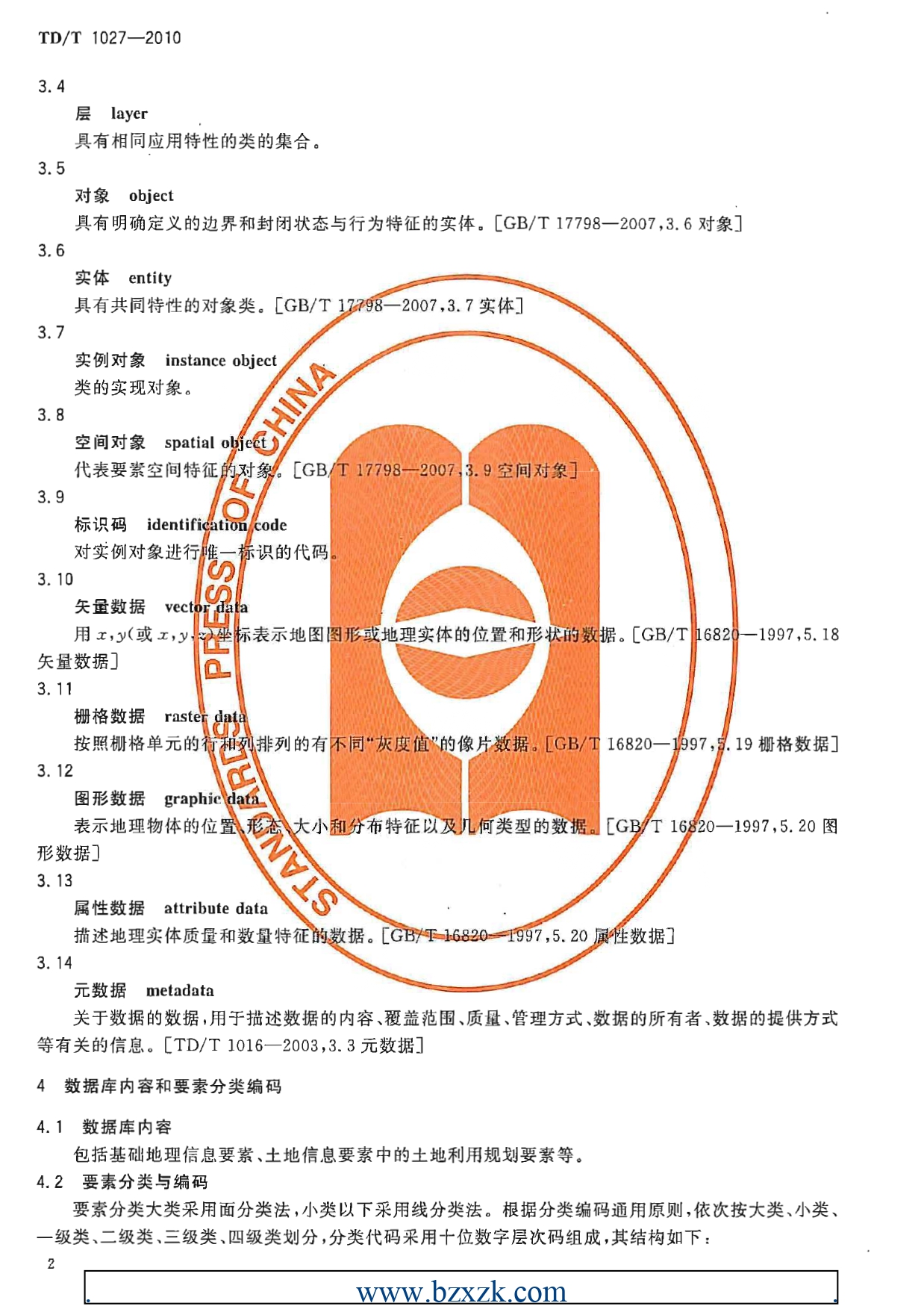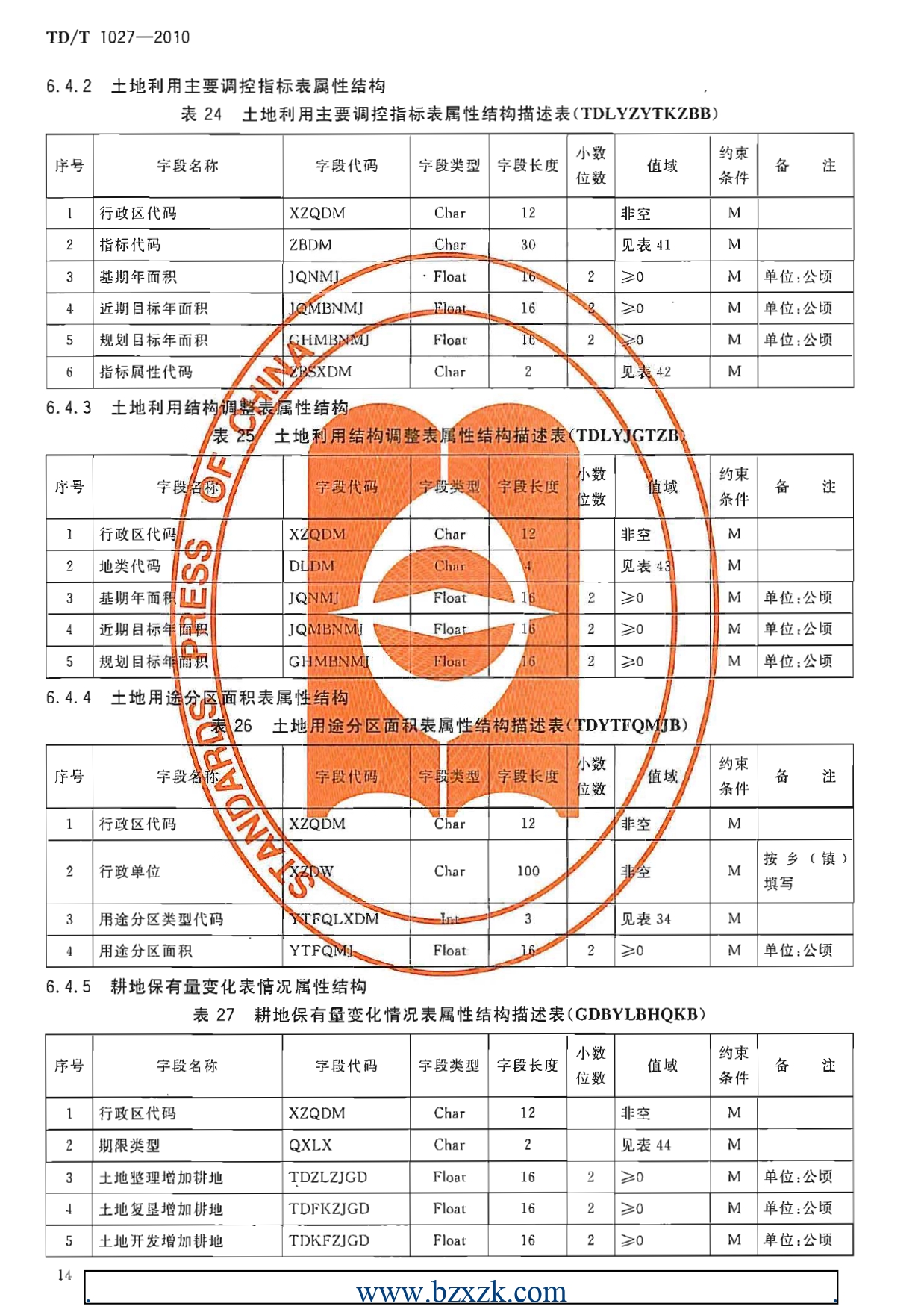 TDT1027-2010县土地利用总体规划数据库标准