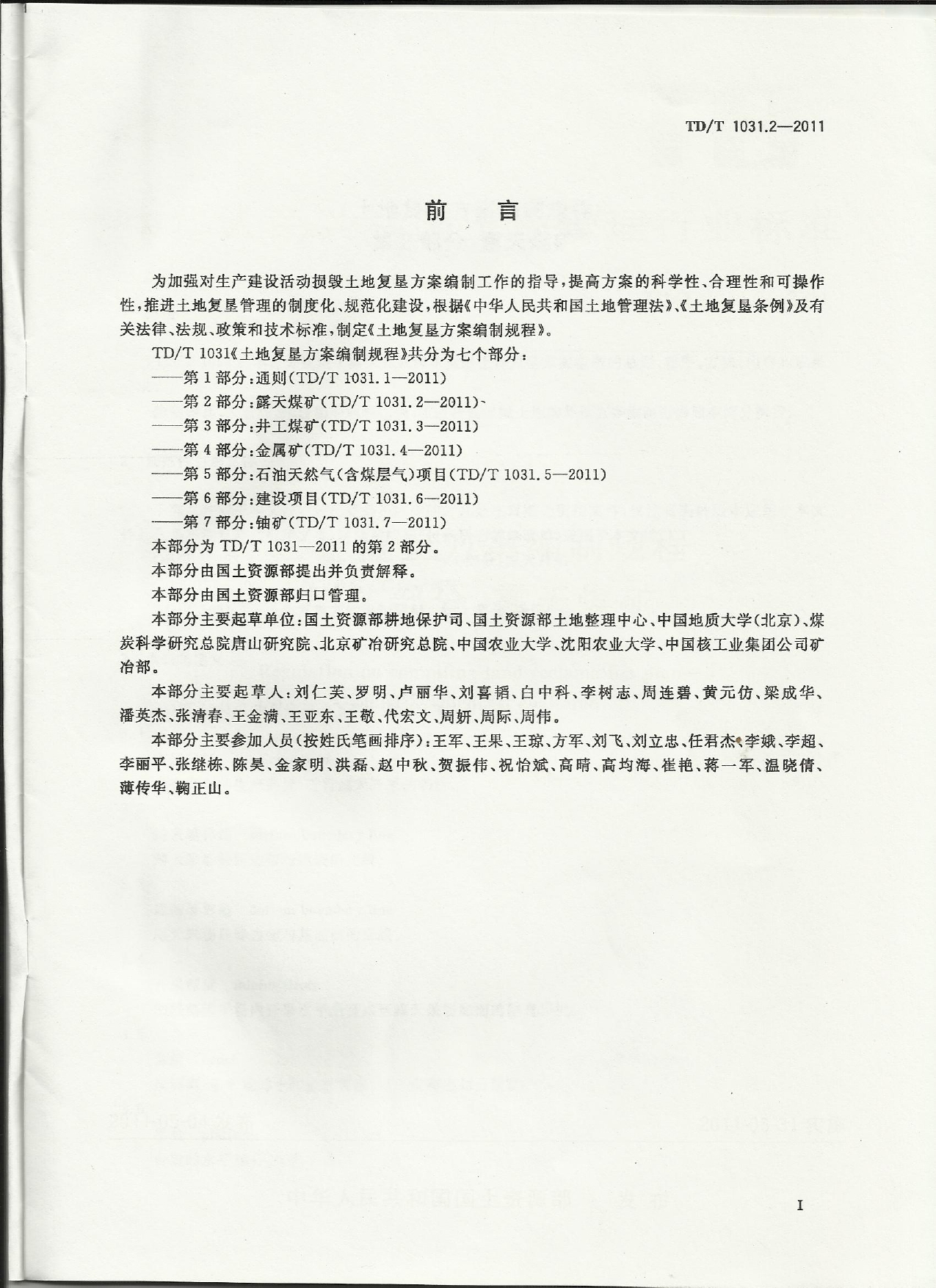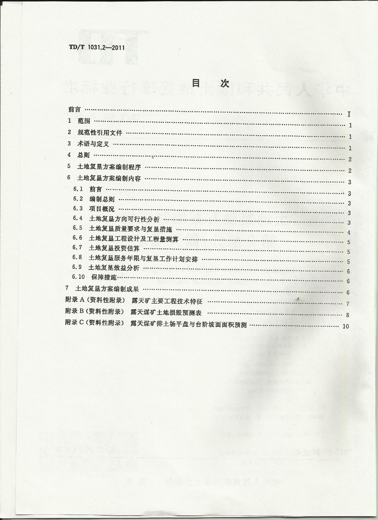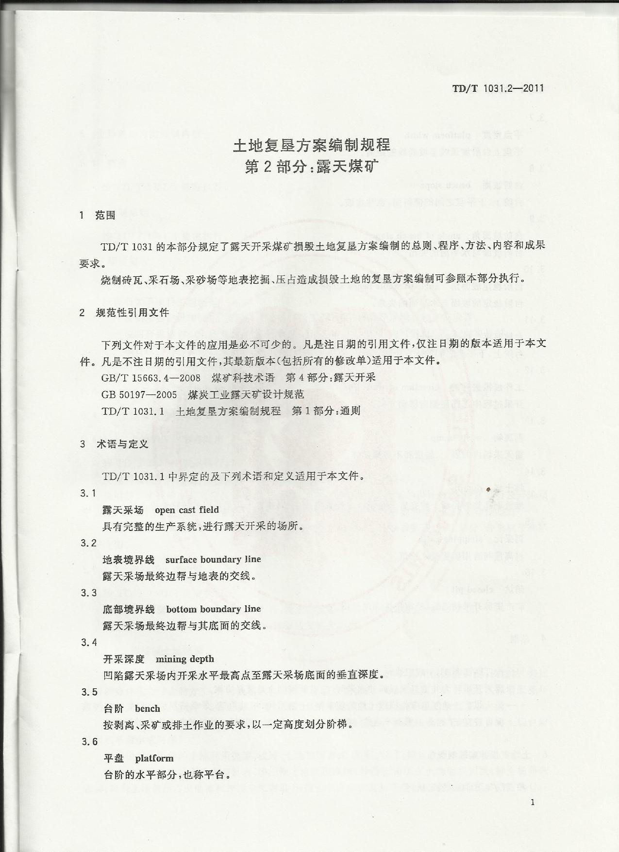 TDT1031.2-2011土地复垦方案编制规程第2部分:露天煤矿