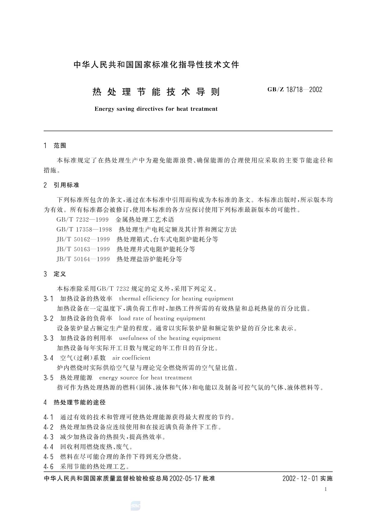 《热处理节能技术导则》(GB/Z 18718-2002)