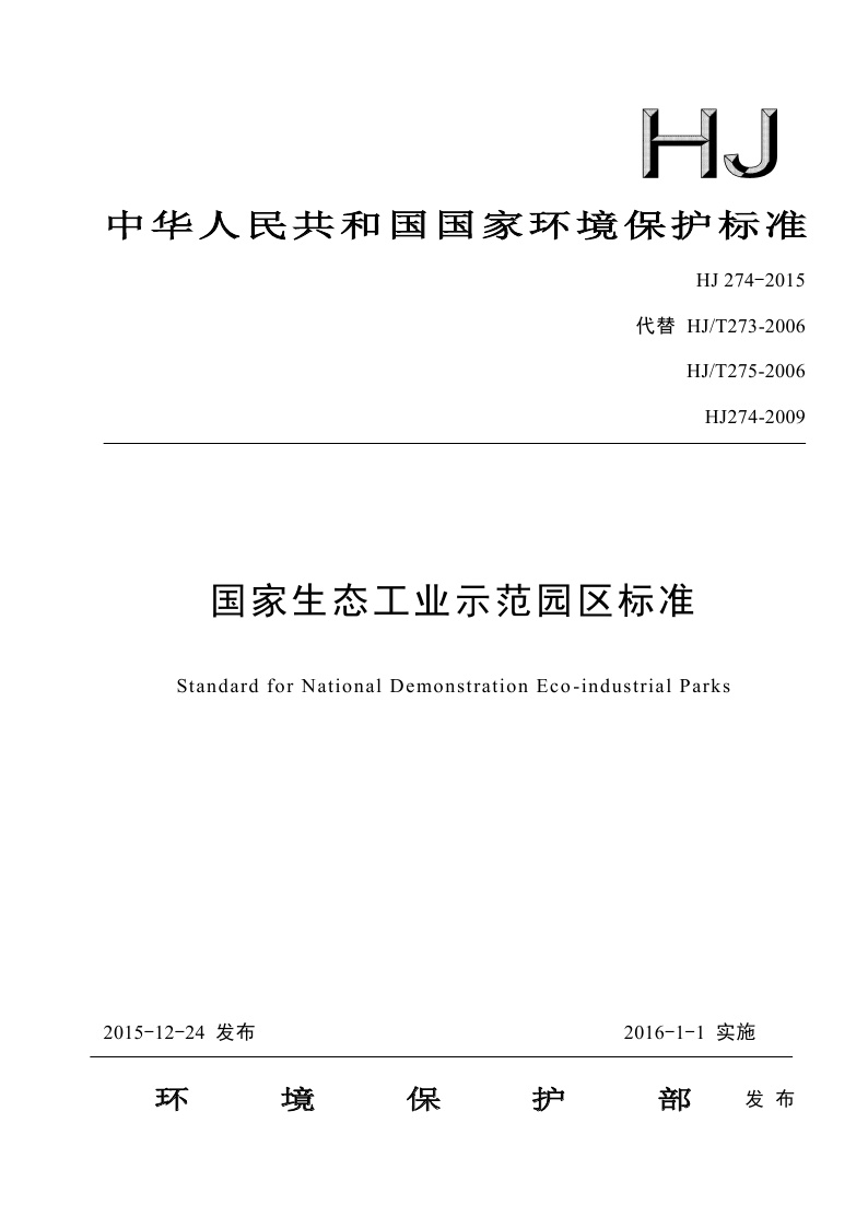 《国家生态工业示范园区标准》(HJ 274-2015)