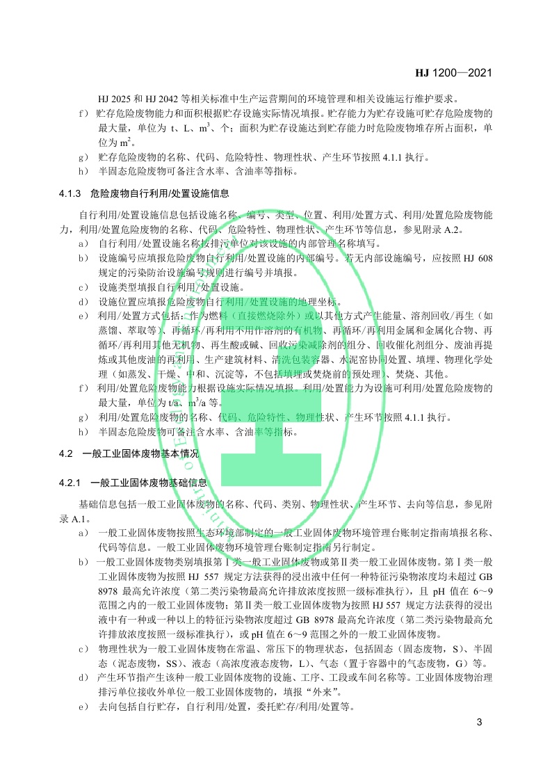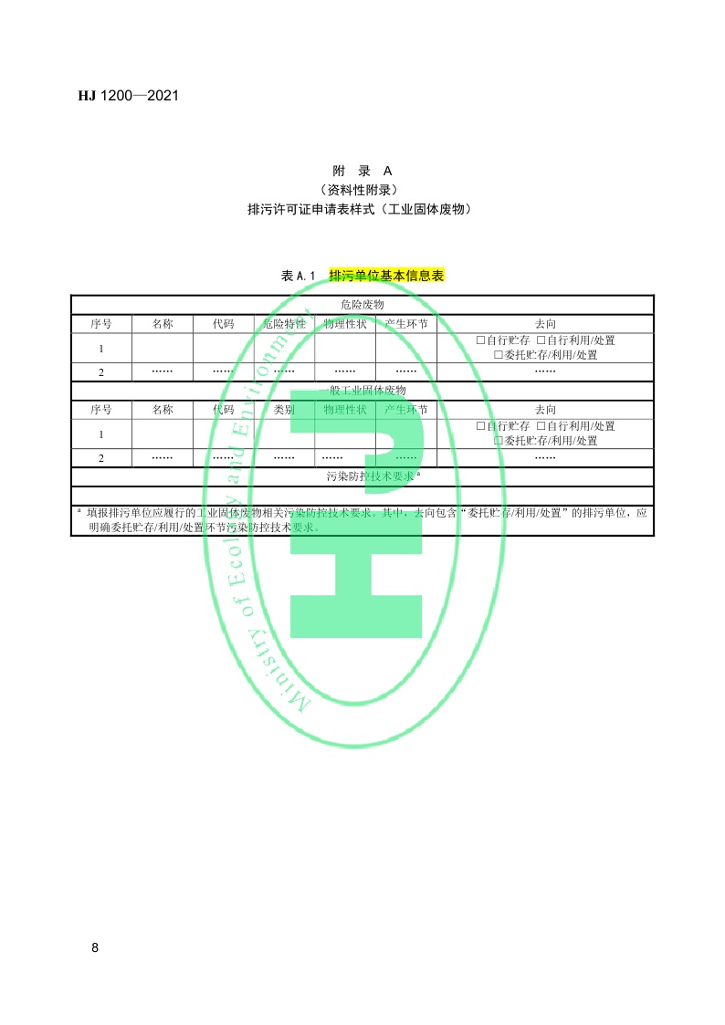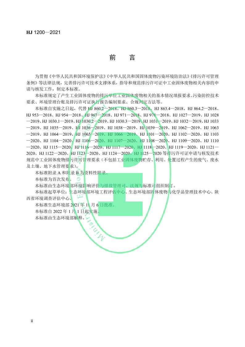 《排污许可证申请与核发技术规范工业固体废物(试行)》(HJ 1200—2021)