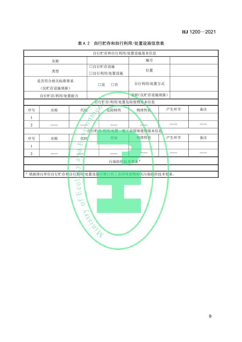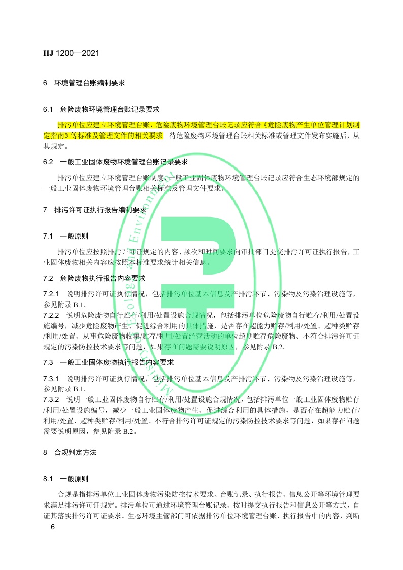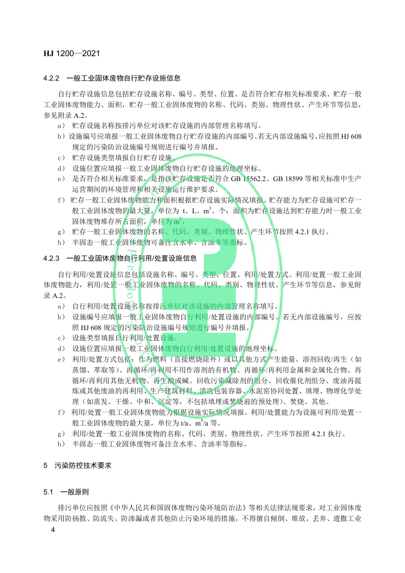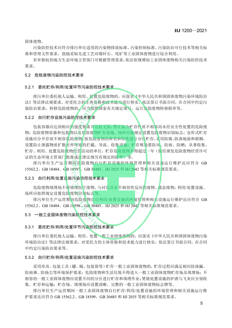 《排污许可证申请与核发技术规范工业固体废物(试行)》(HJ 1200—2021)