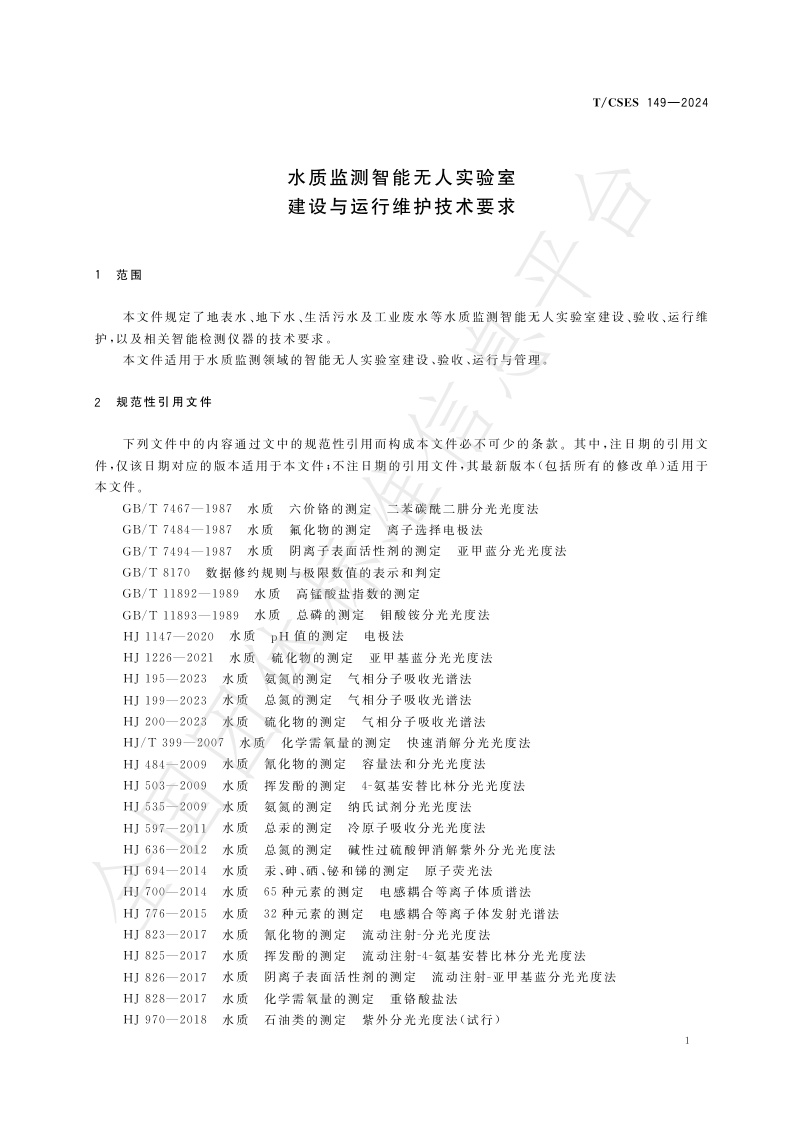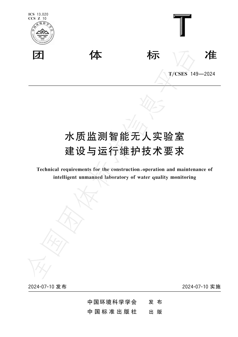 TCSES 149-2024 《水质监测智能无人实验室建设与运行维护技术要求》
