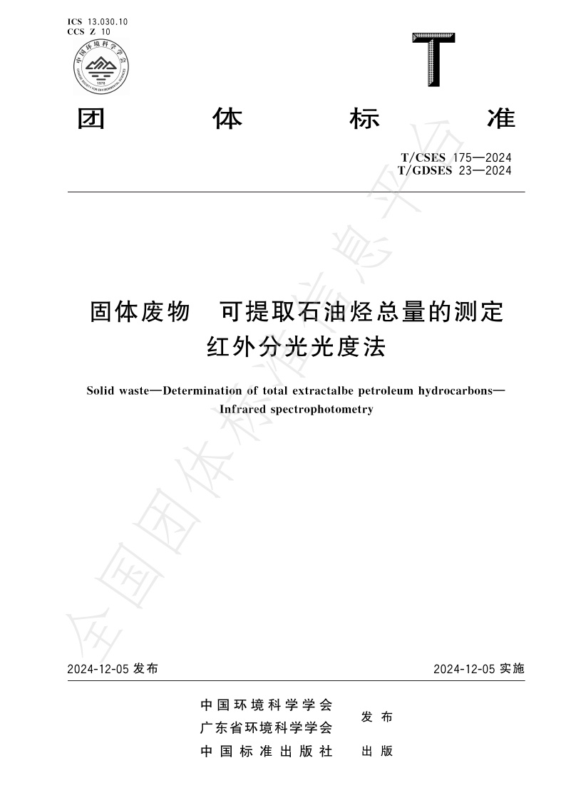 TCSES 175—2024《固体废物 可提取石油烃总量的测定 红外分光光度法》