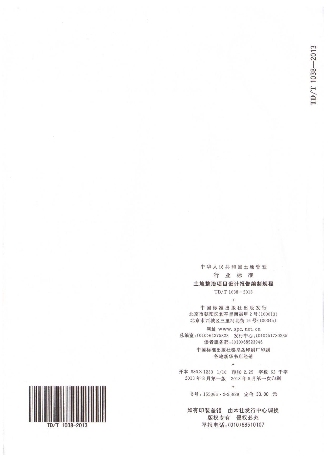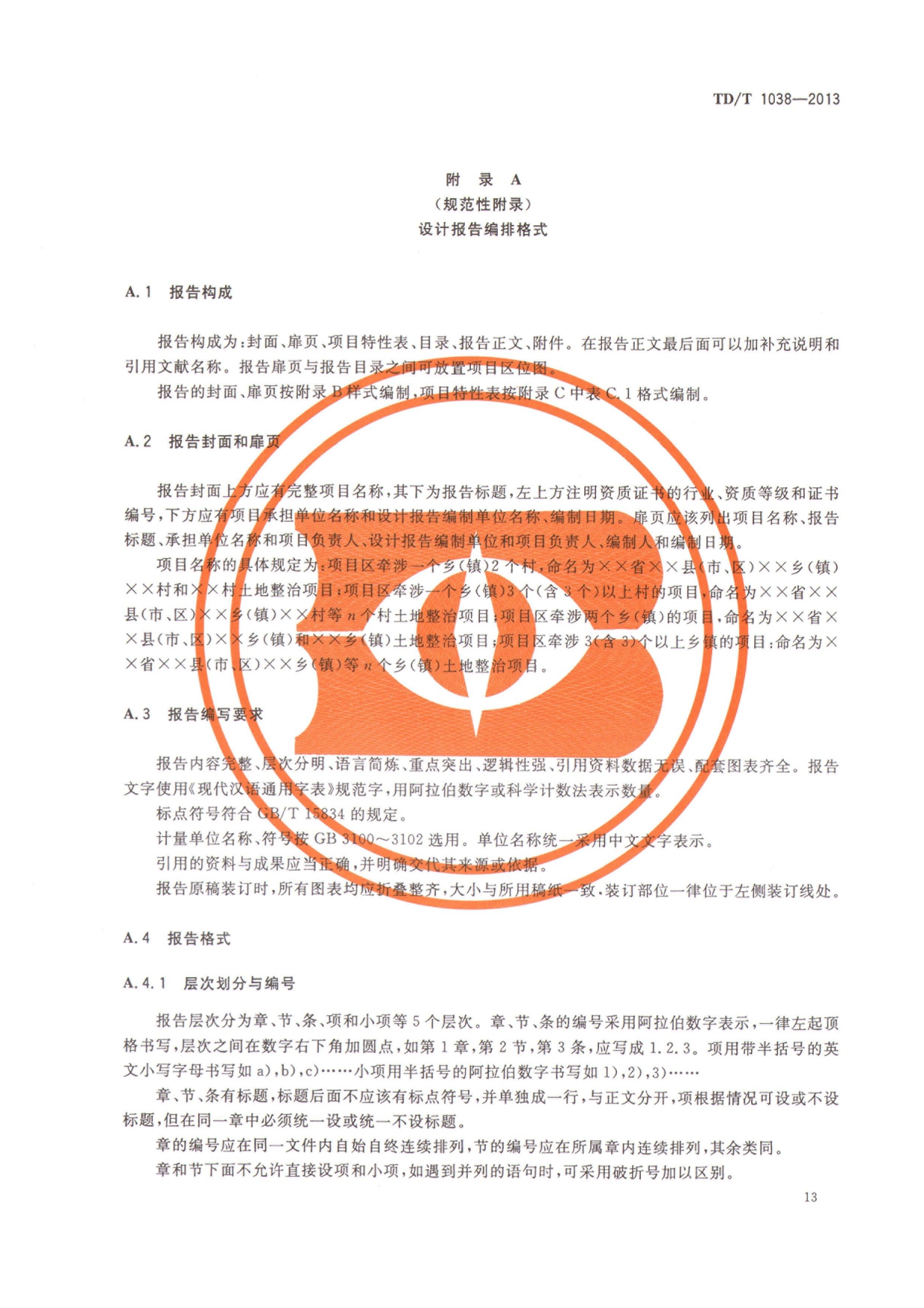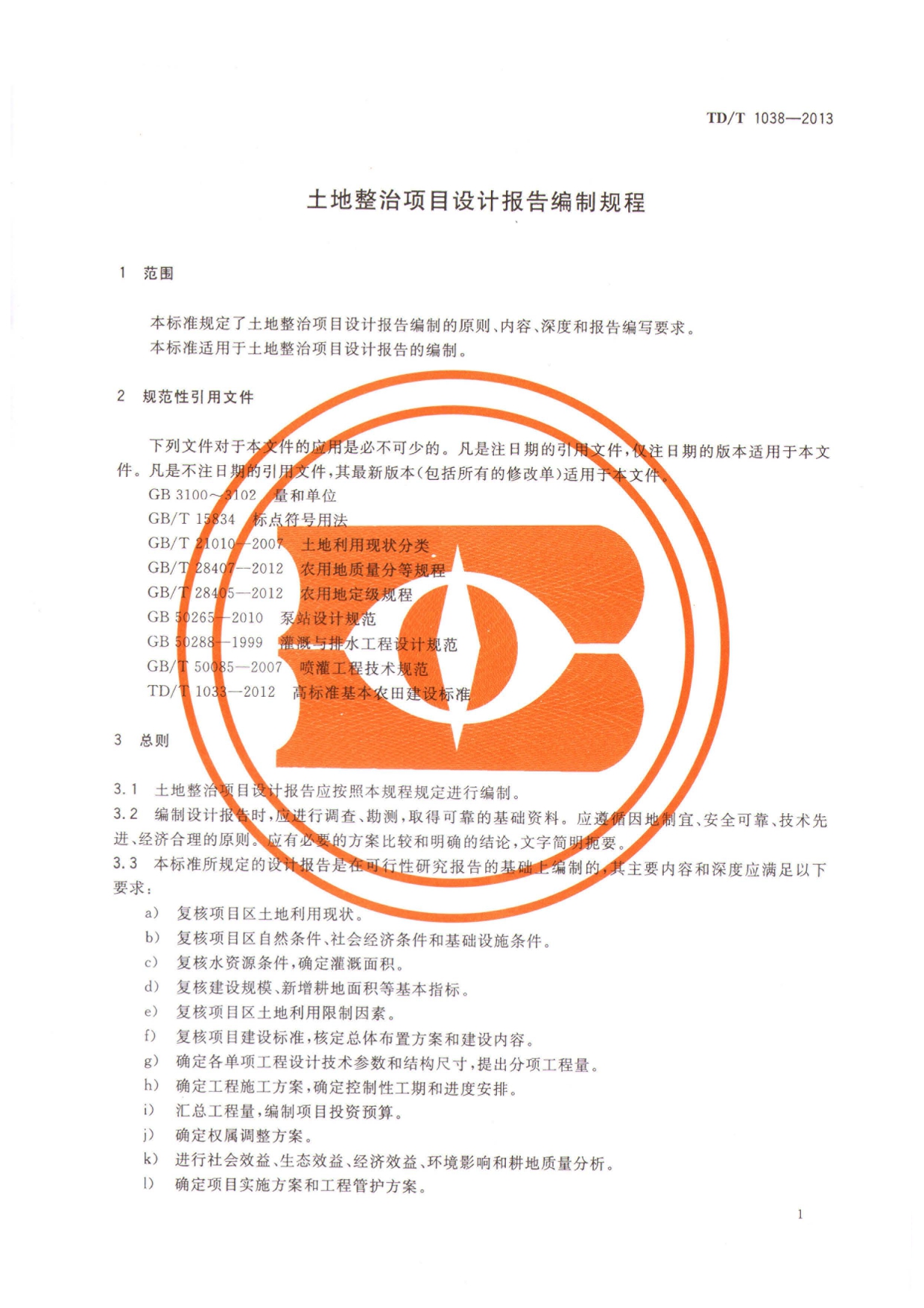 TDT1038-2013土地整治项目设计报告编制规程