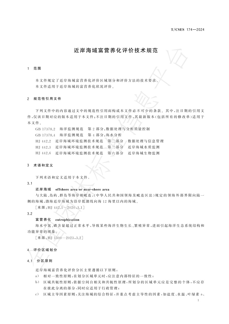 TCSES 174—2024《近岸海域富营养化评价技术规范》