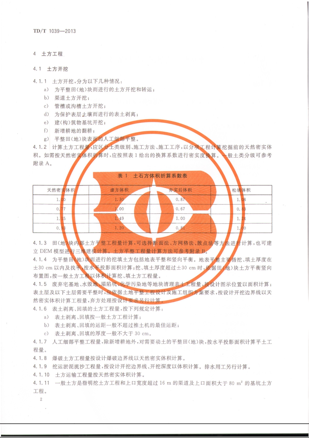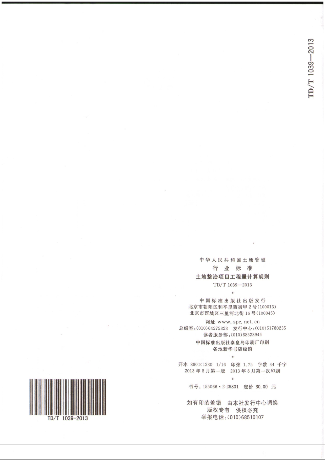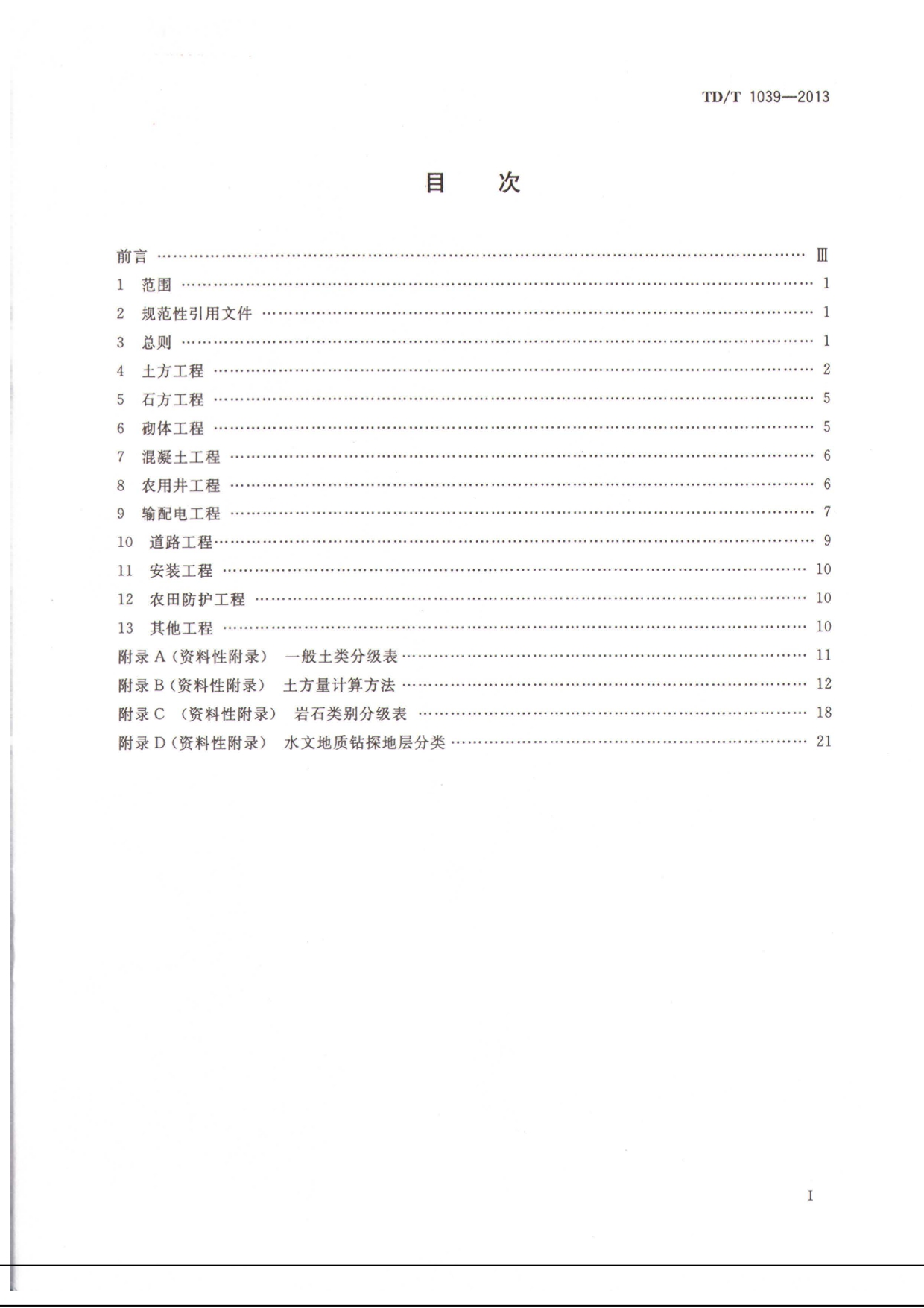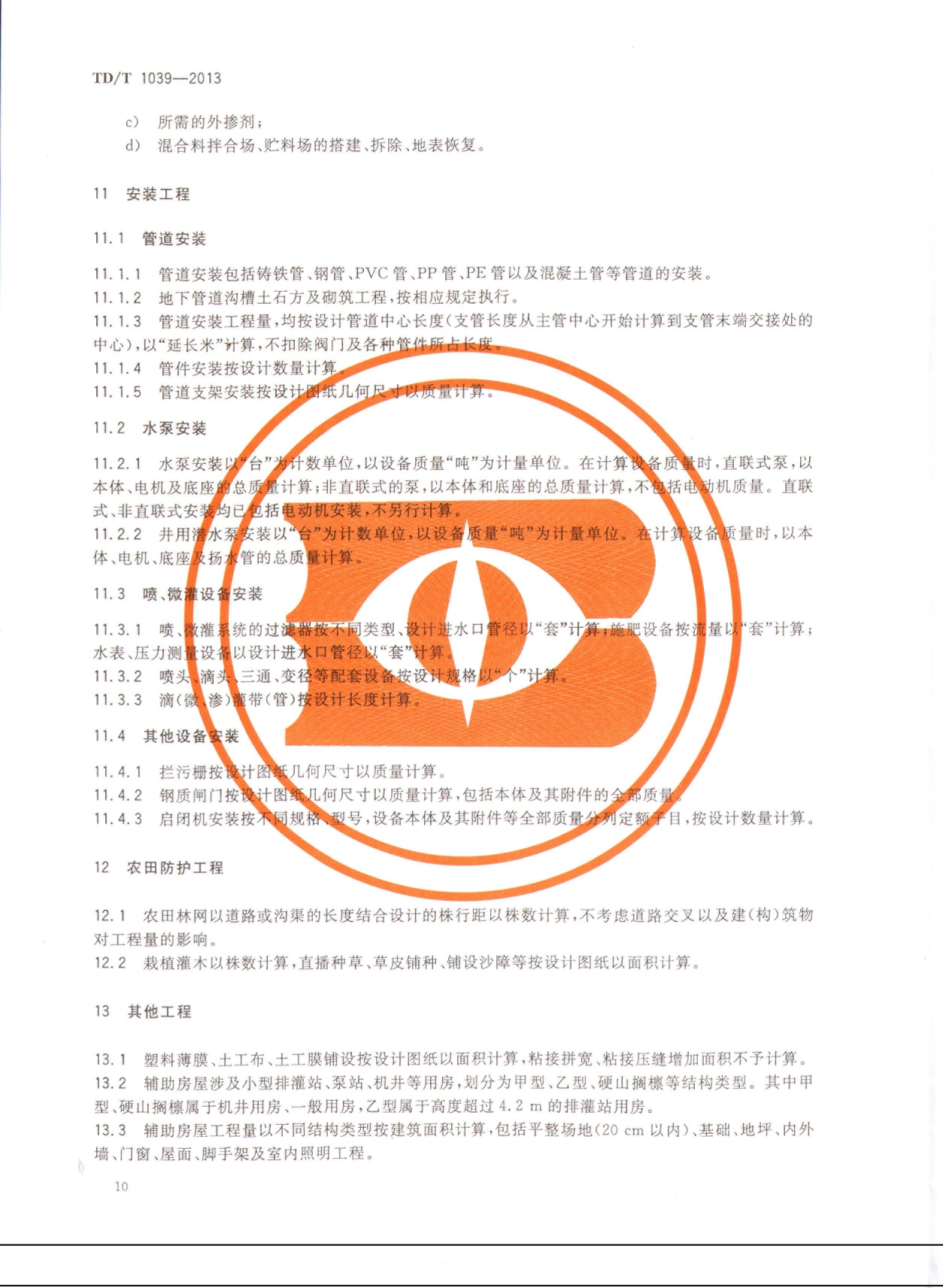 TDT1039-2013土地整治项目工程量计算规则