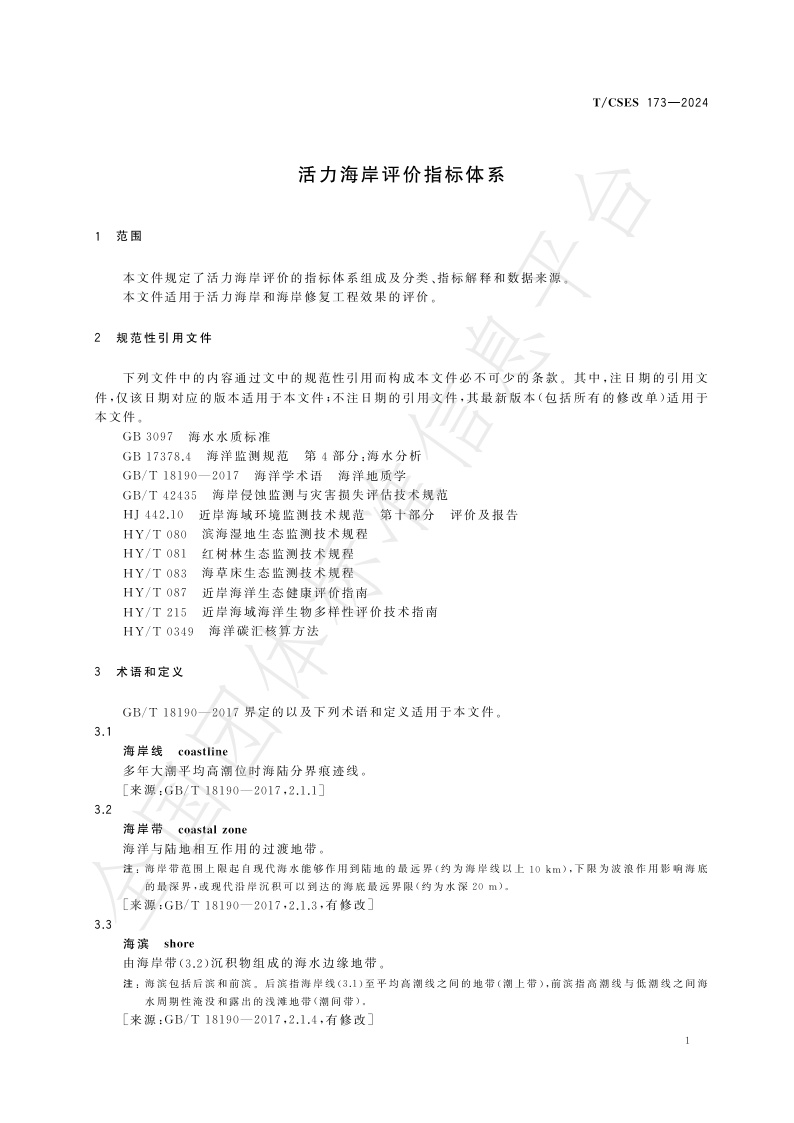 T/CSES 173—2024《活力海岸评价指标体系》