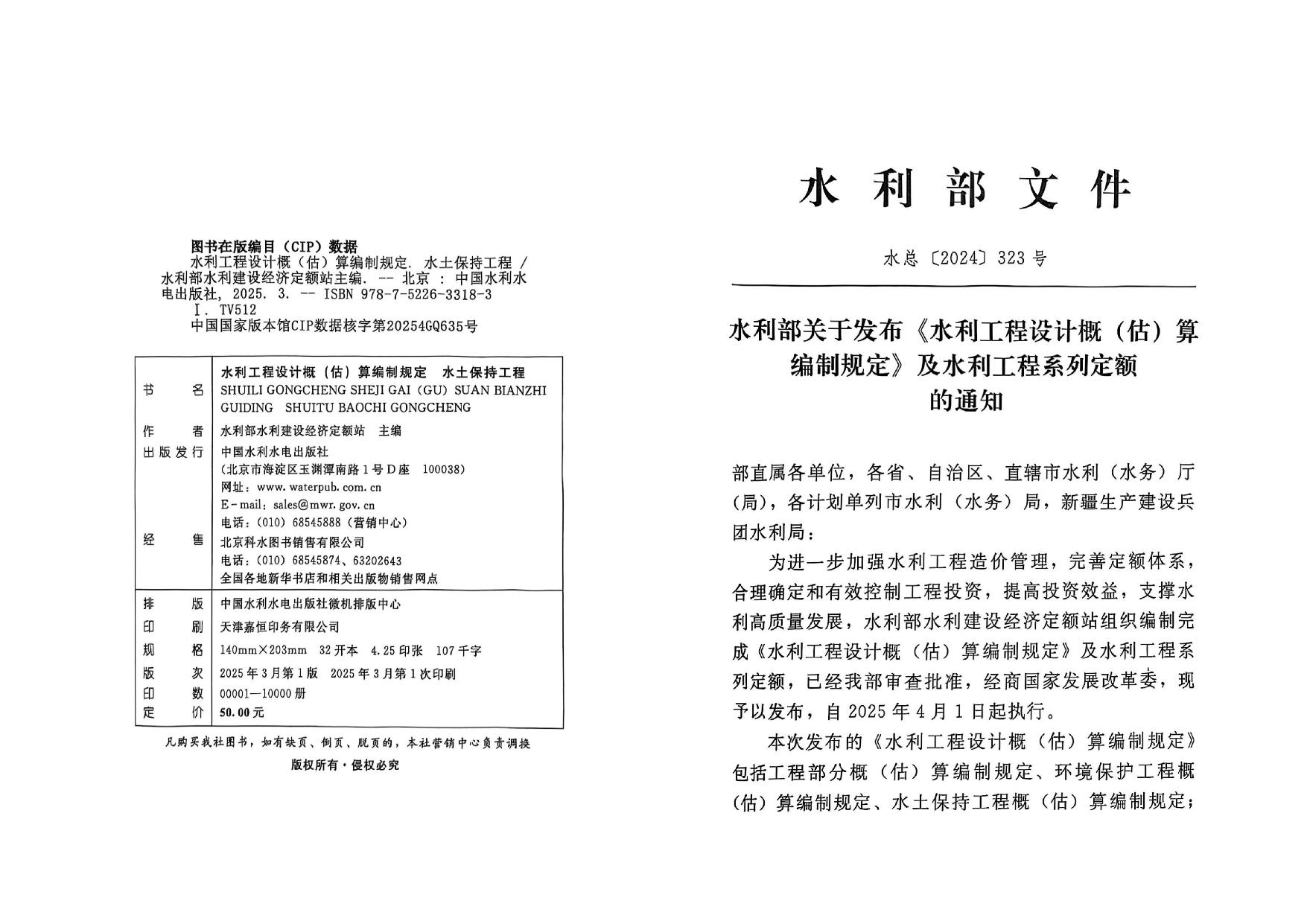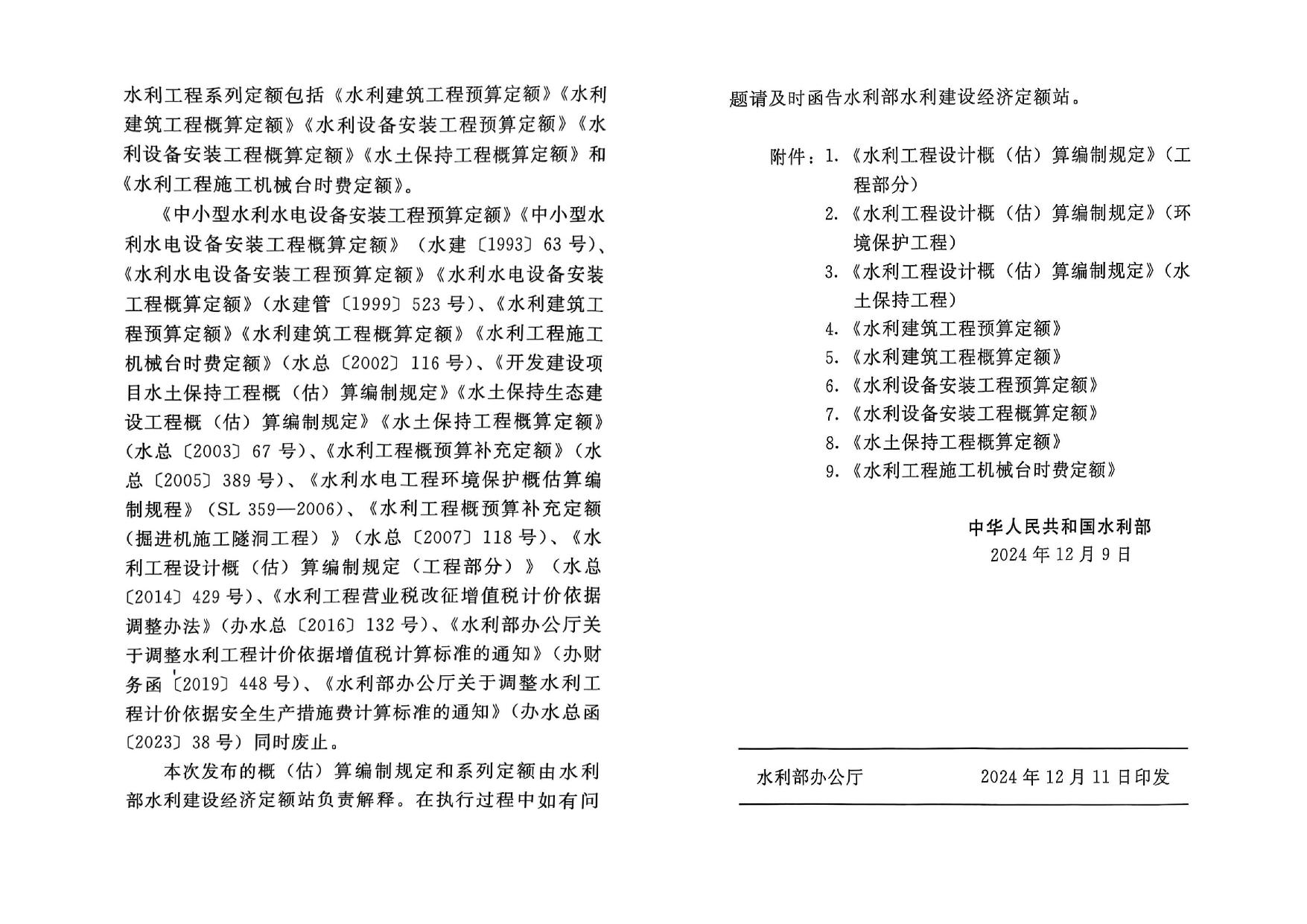 (2025)水利工程设计概(估)算编制规定