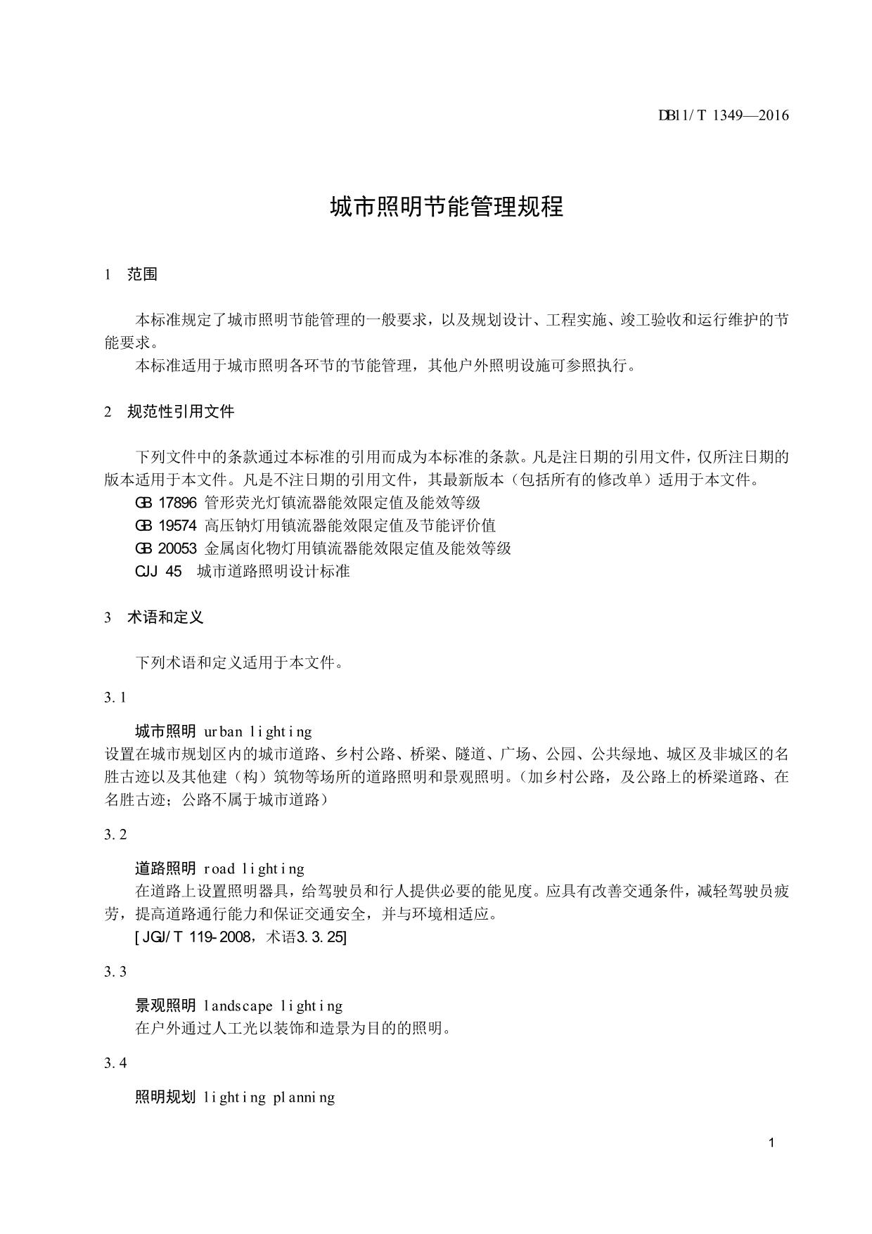 《城市照明节能管理规程》(DB11/T 1349-2016)