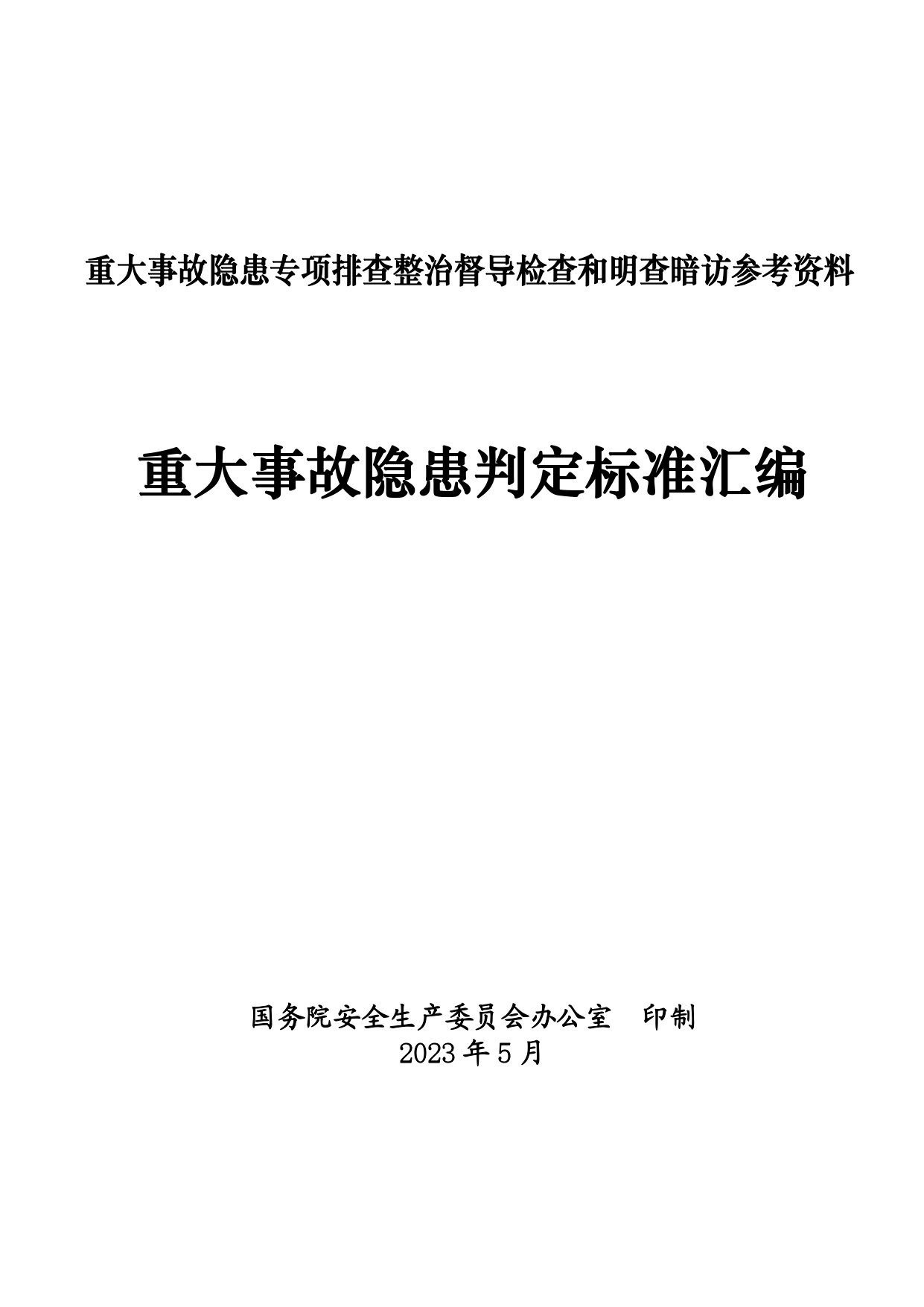 重大事故隐患判定标准汇编-国务院安委办