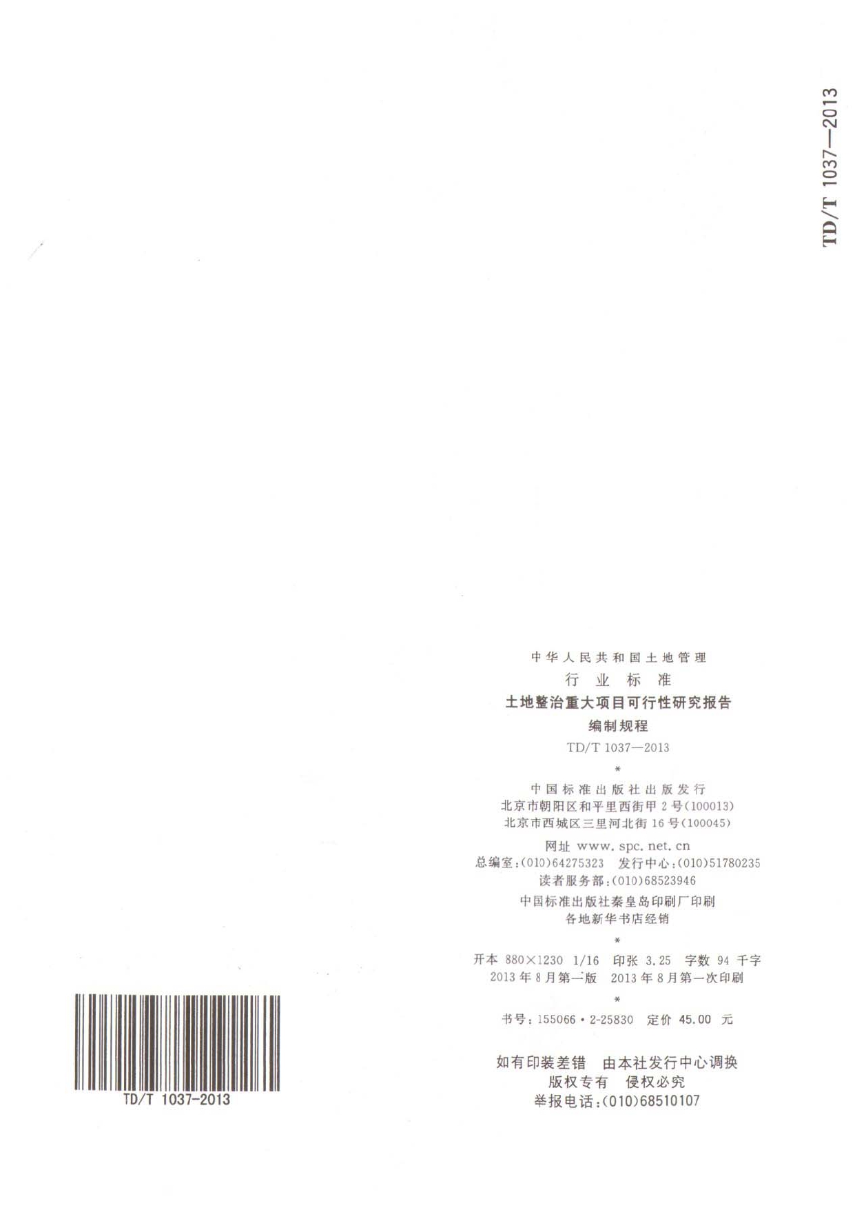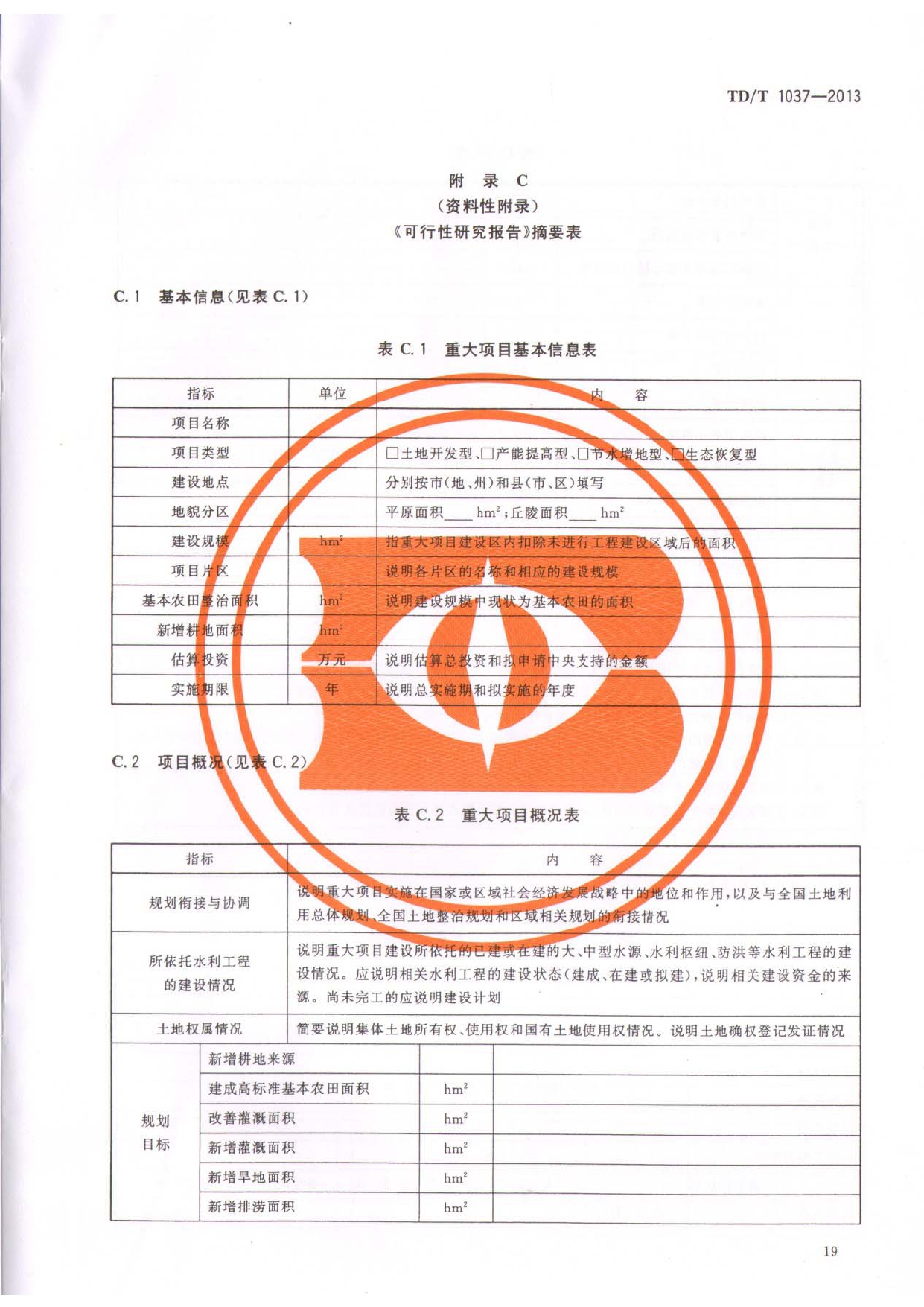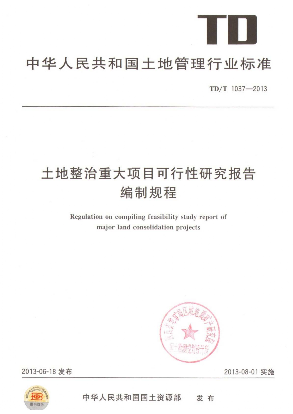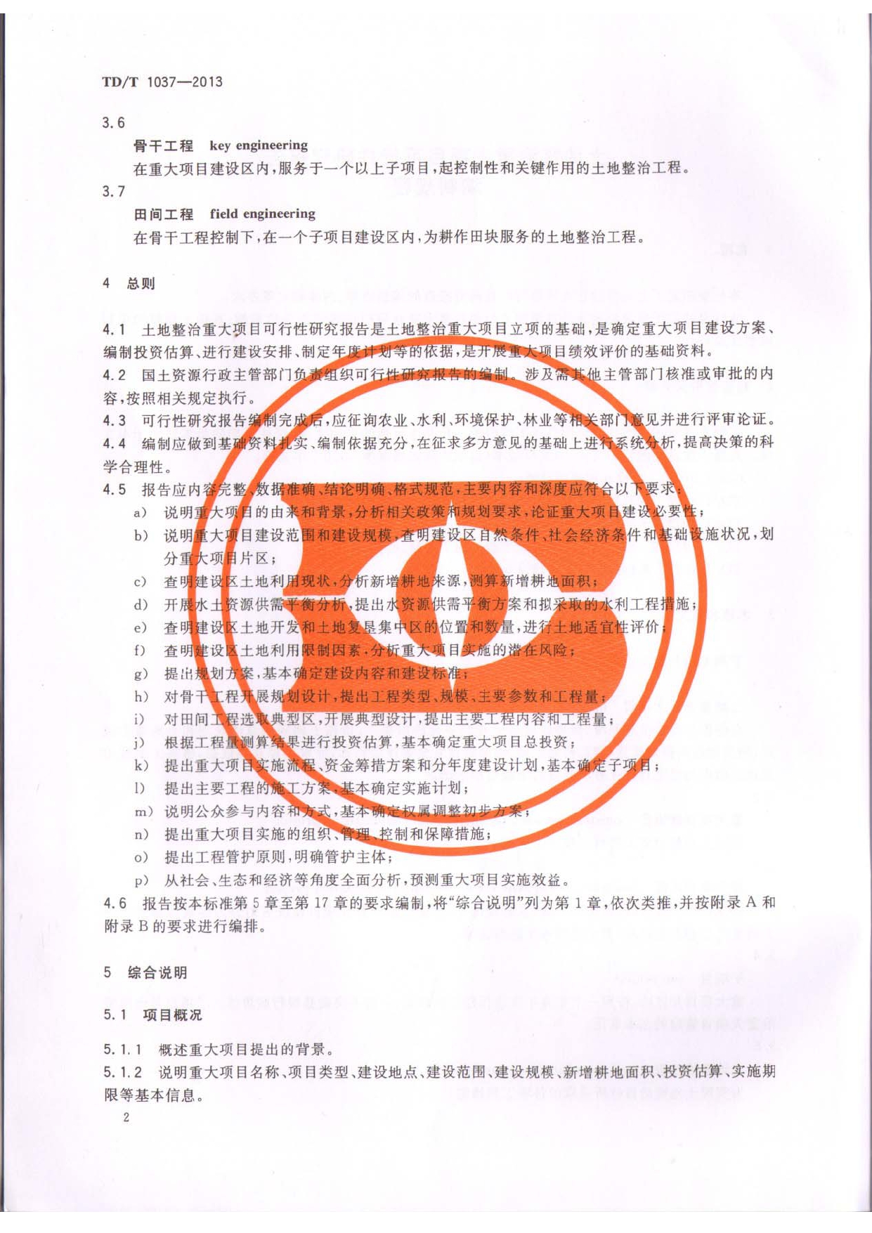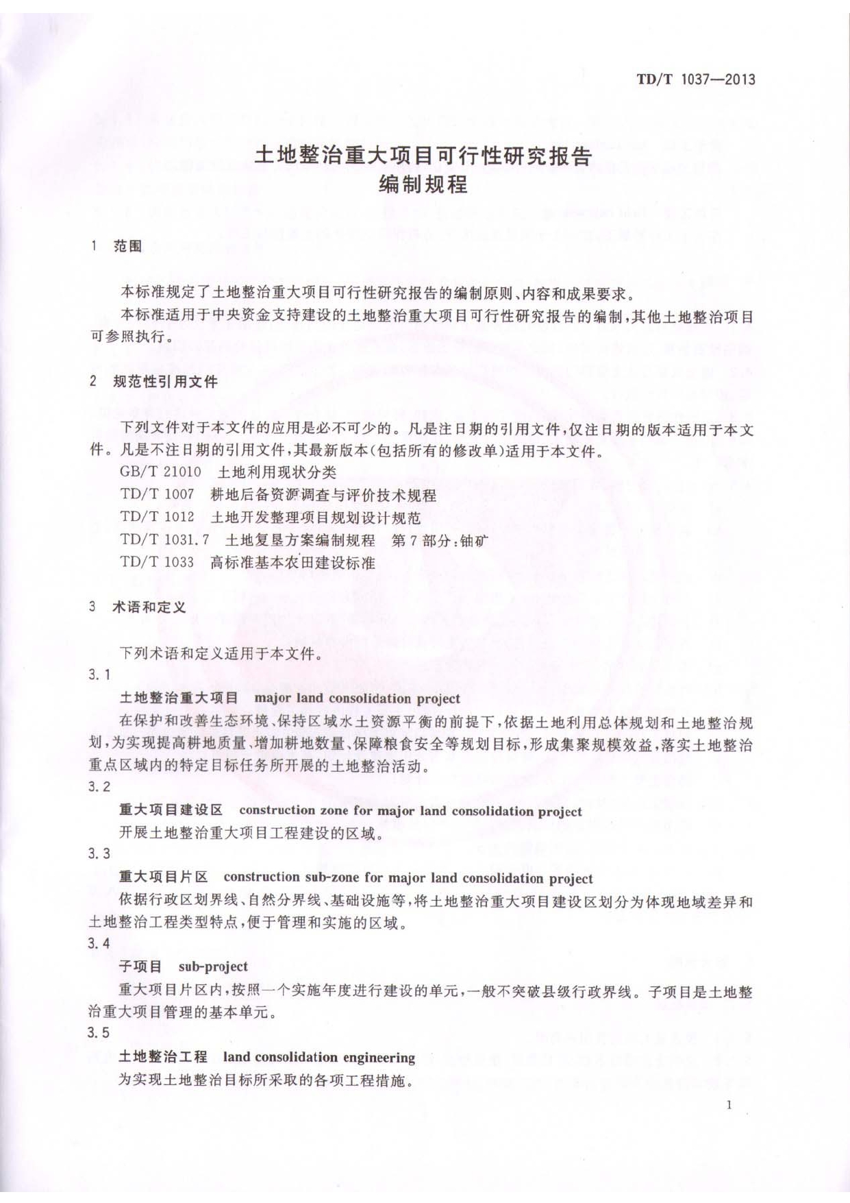 TDT1037-2013土地整治重大项目可行性研究报告编制规程