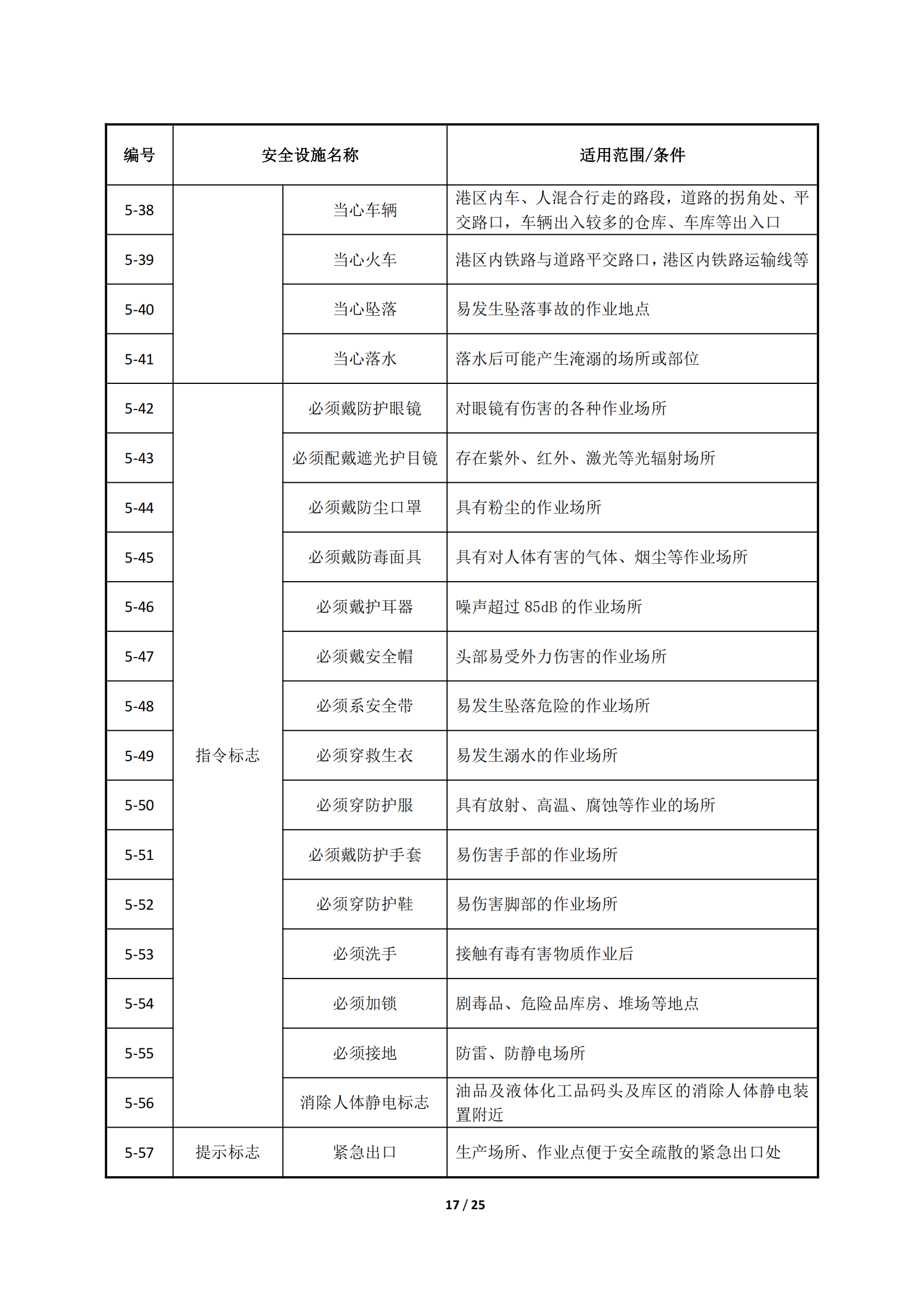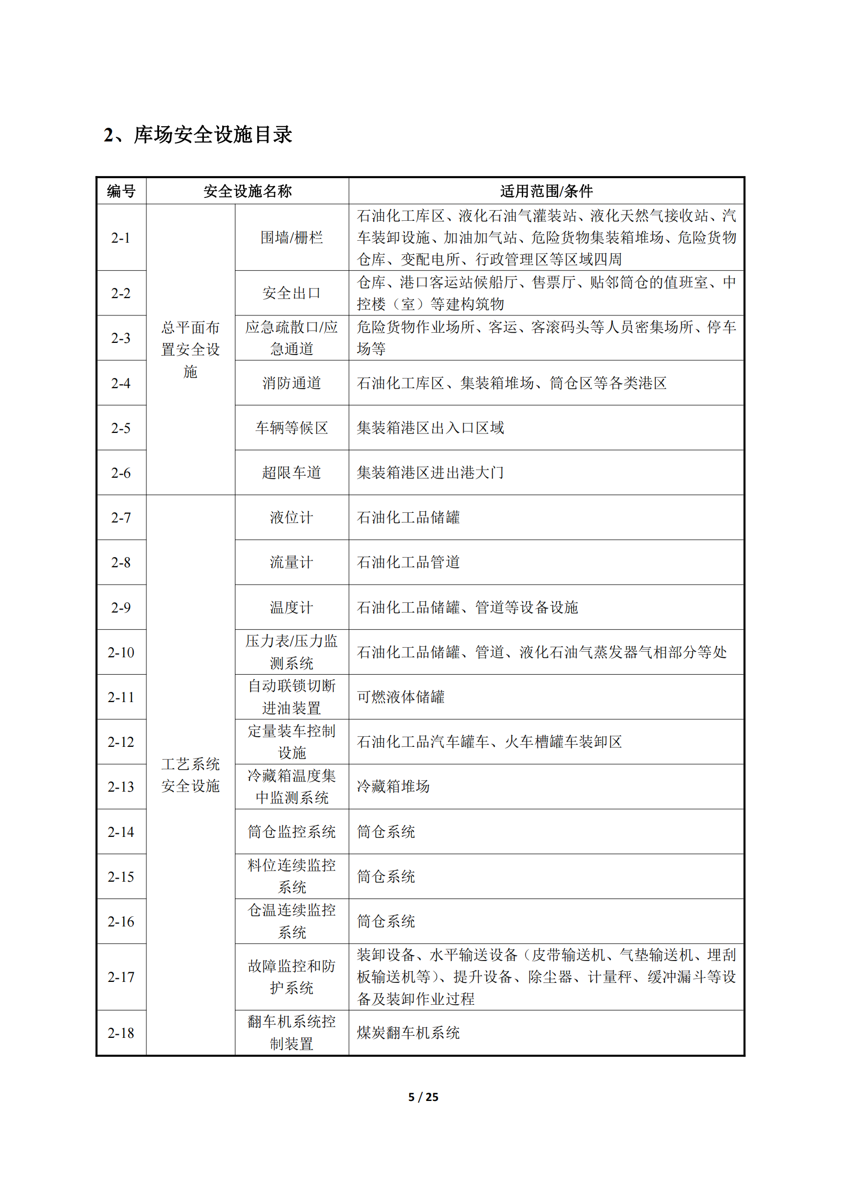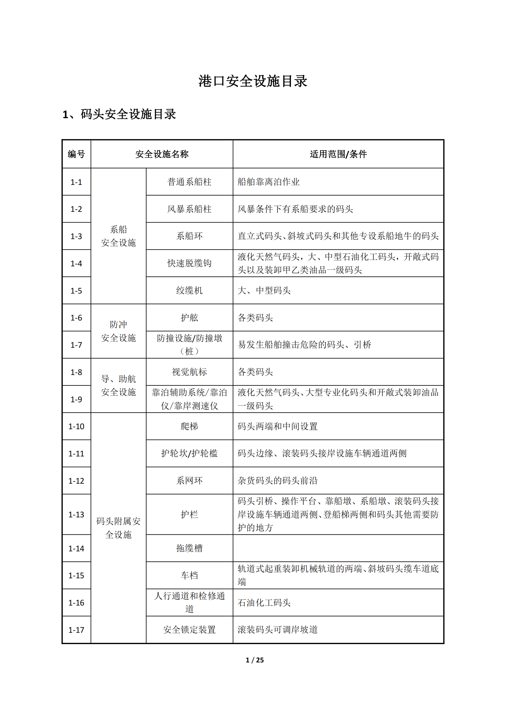 港口安全设施目录