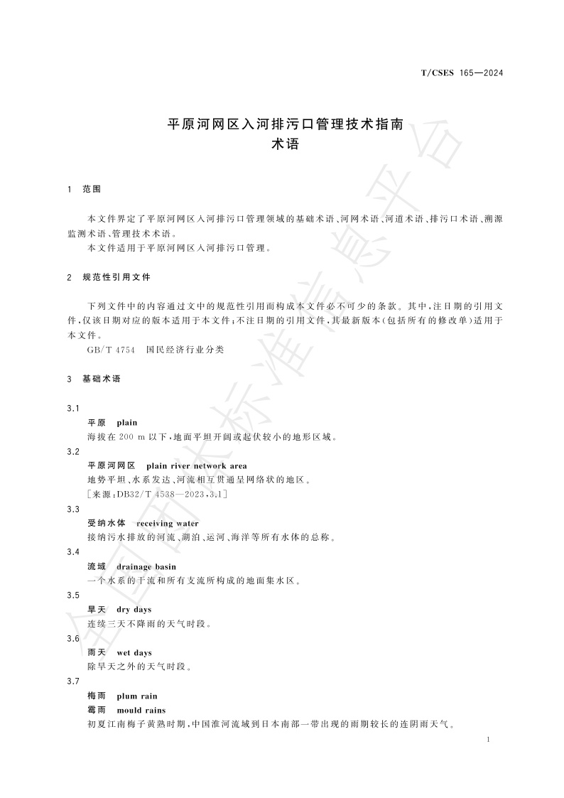 TCSES 165—2024《平原河网区入河排污口管理技术指南 术语》
