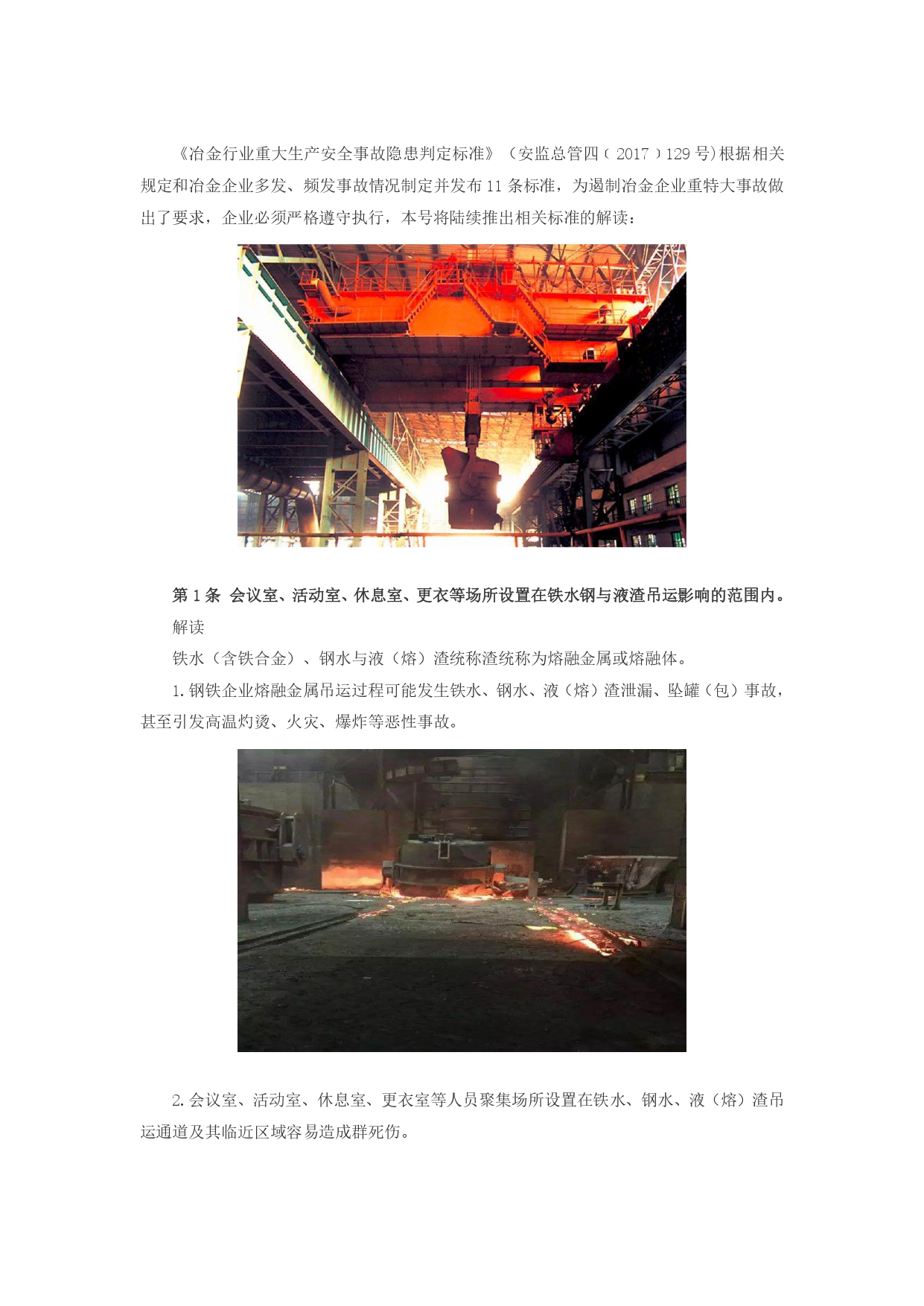 冶金行业重大生产安全事故隐患判定标准详细读解