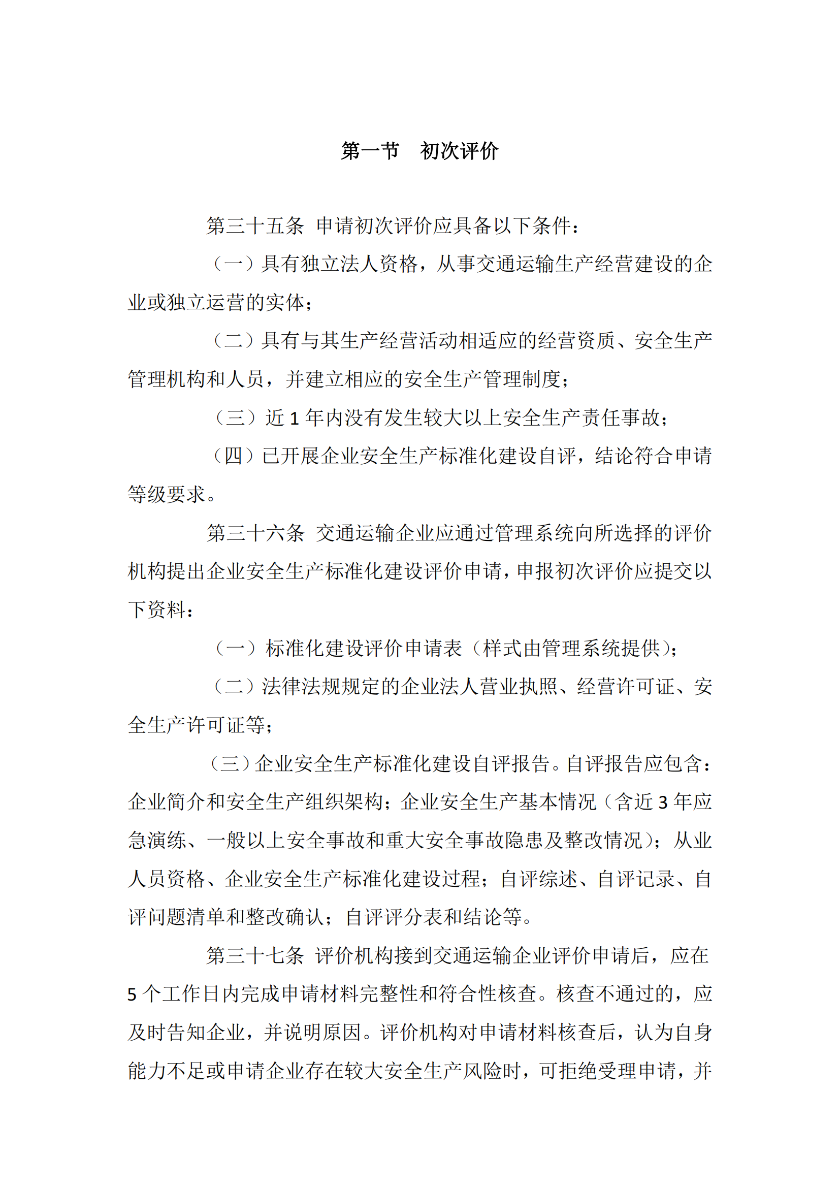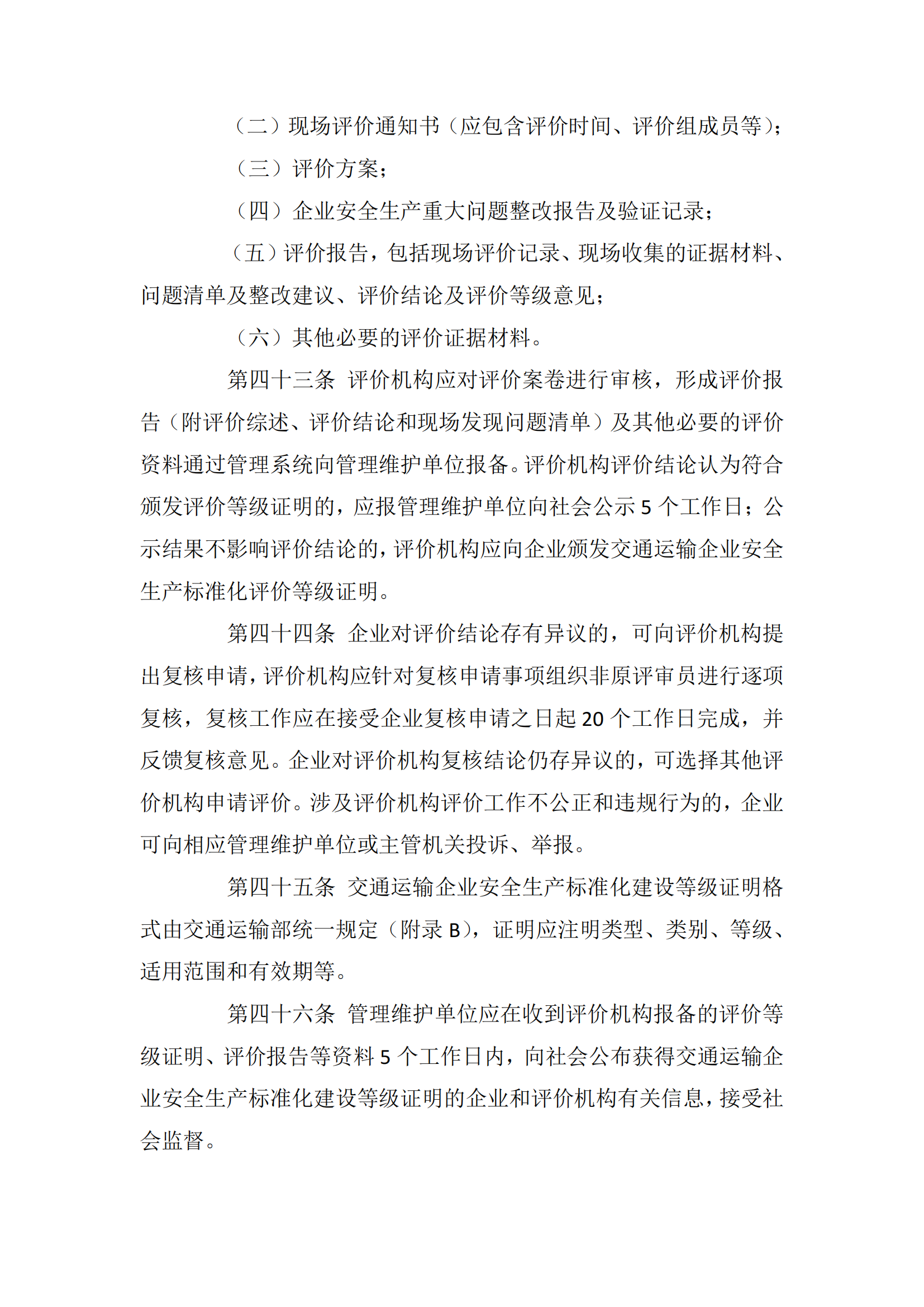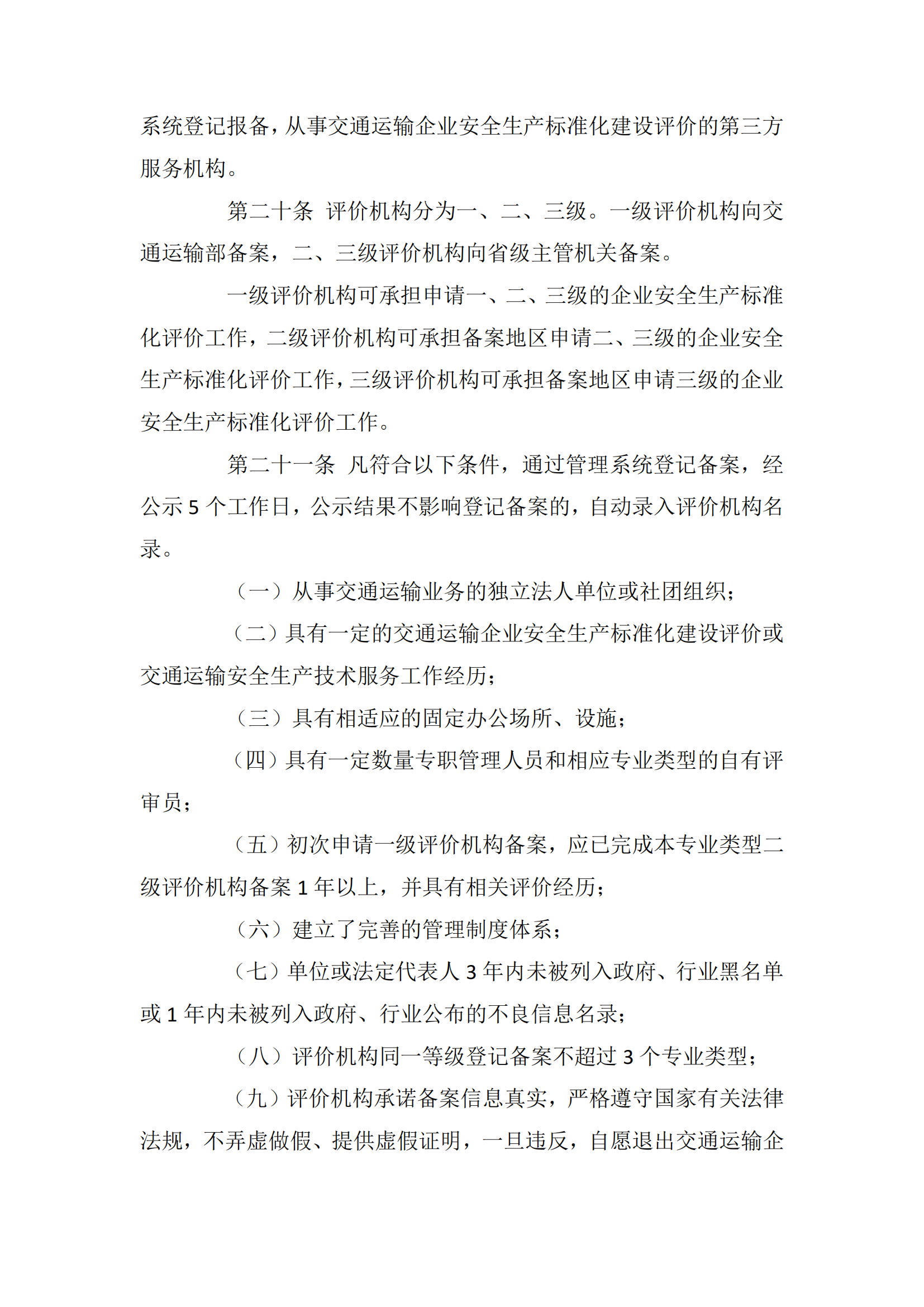 交通运输企业安全生产标准化建设评价管理办法
