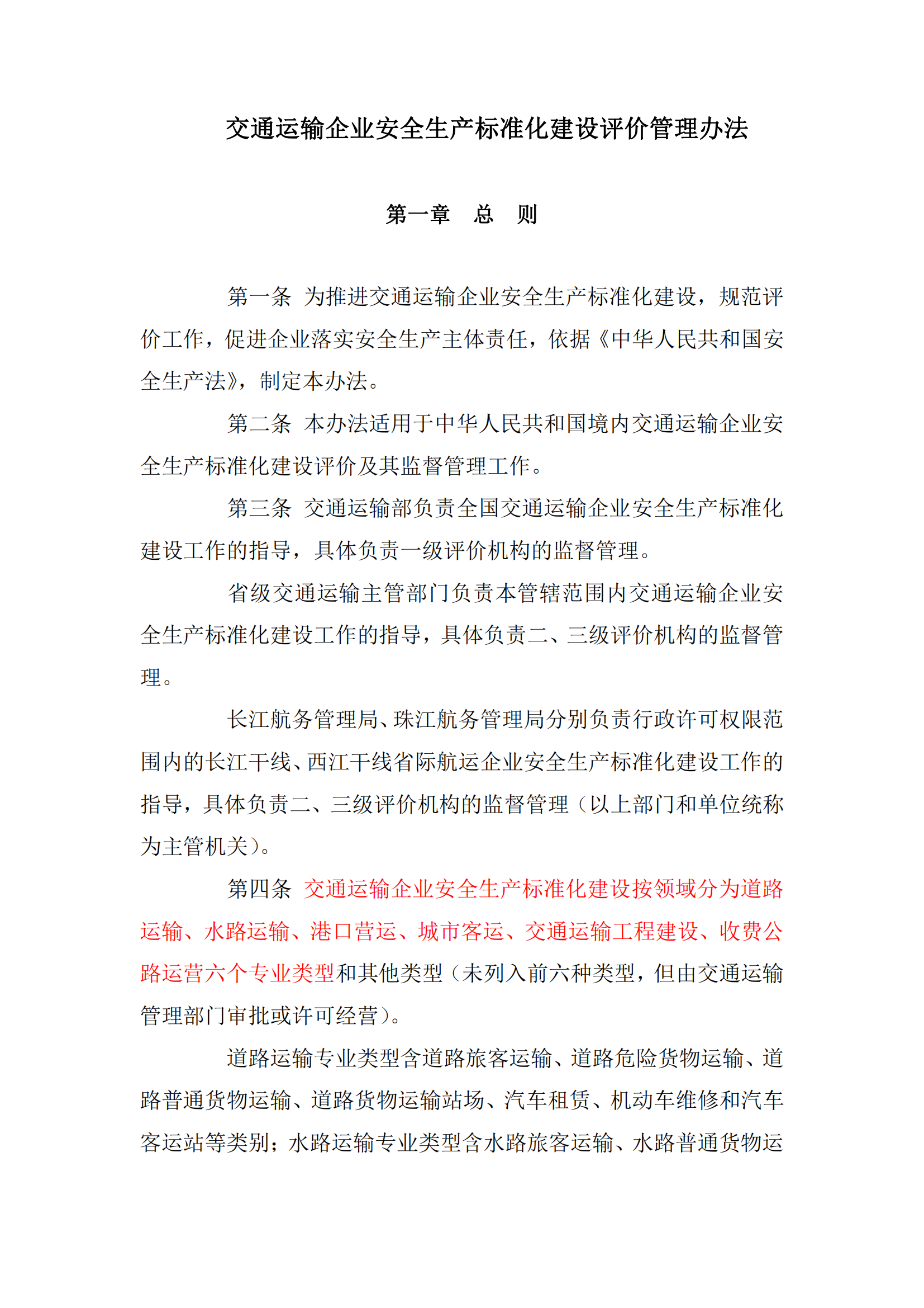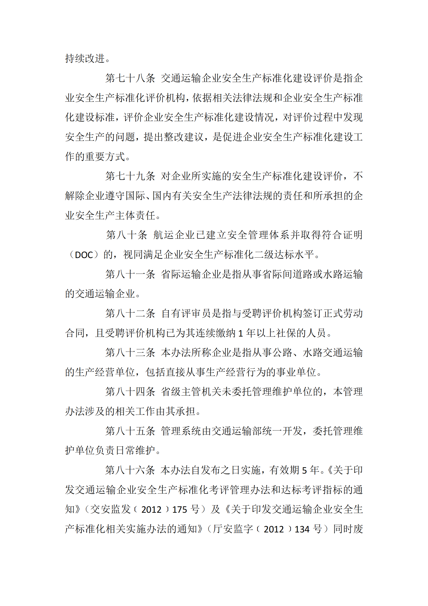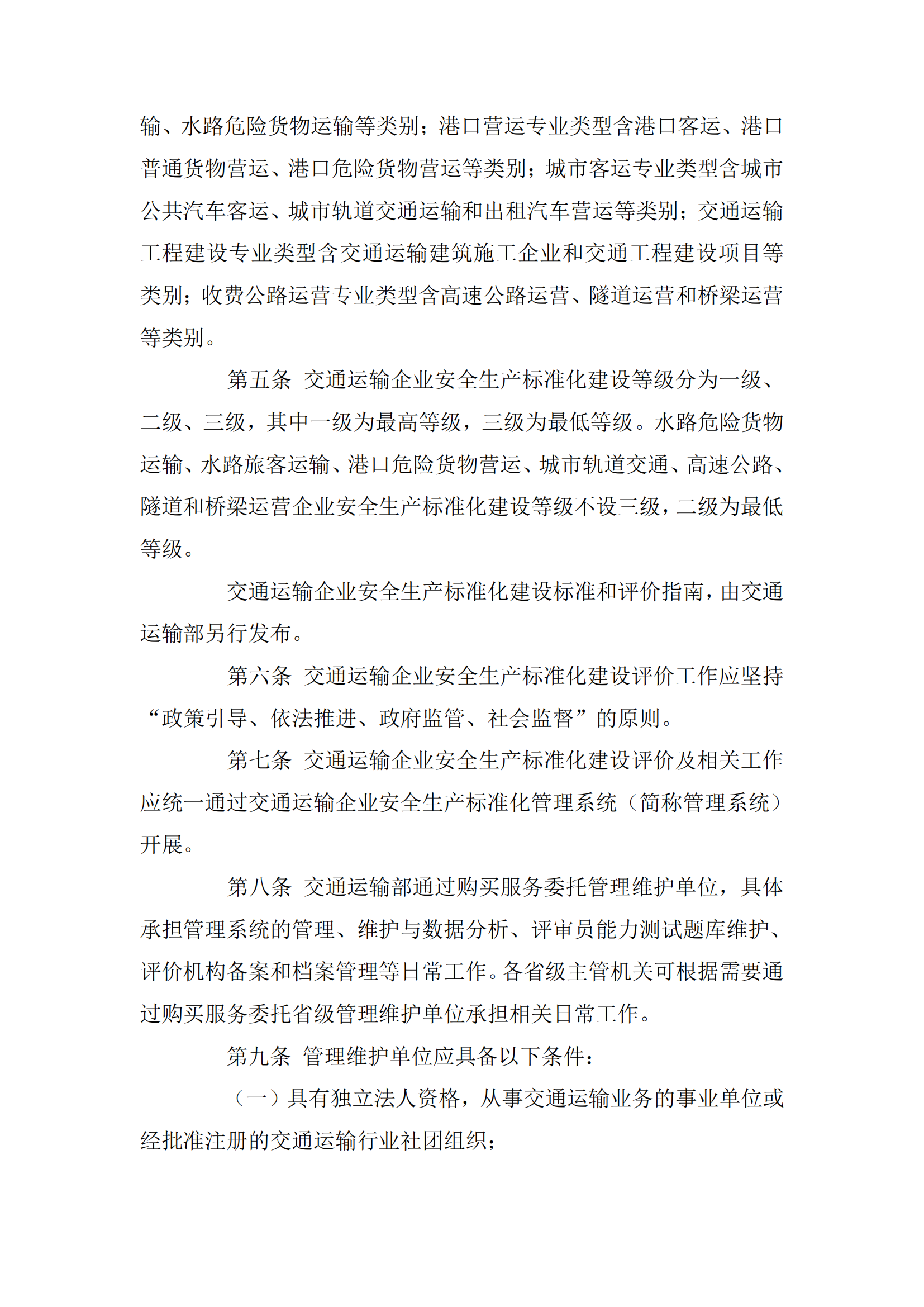 交通运输企业安全生产标准化建设评价管理办法