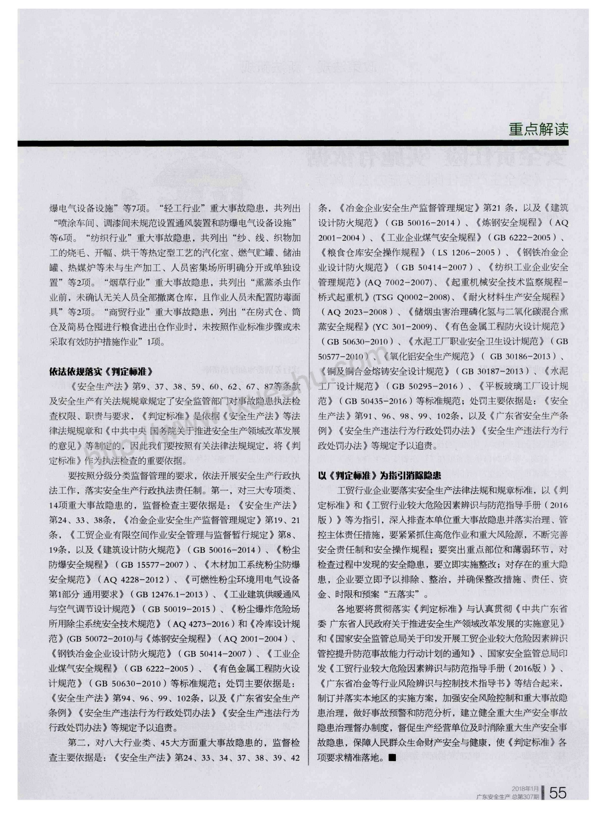 工贸行业重大生产安全事故隐患判定标准(2017版)解读