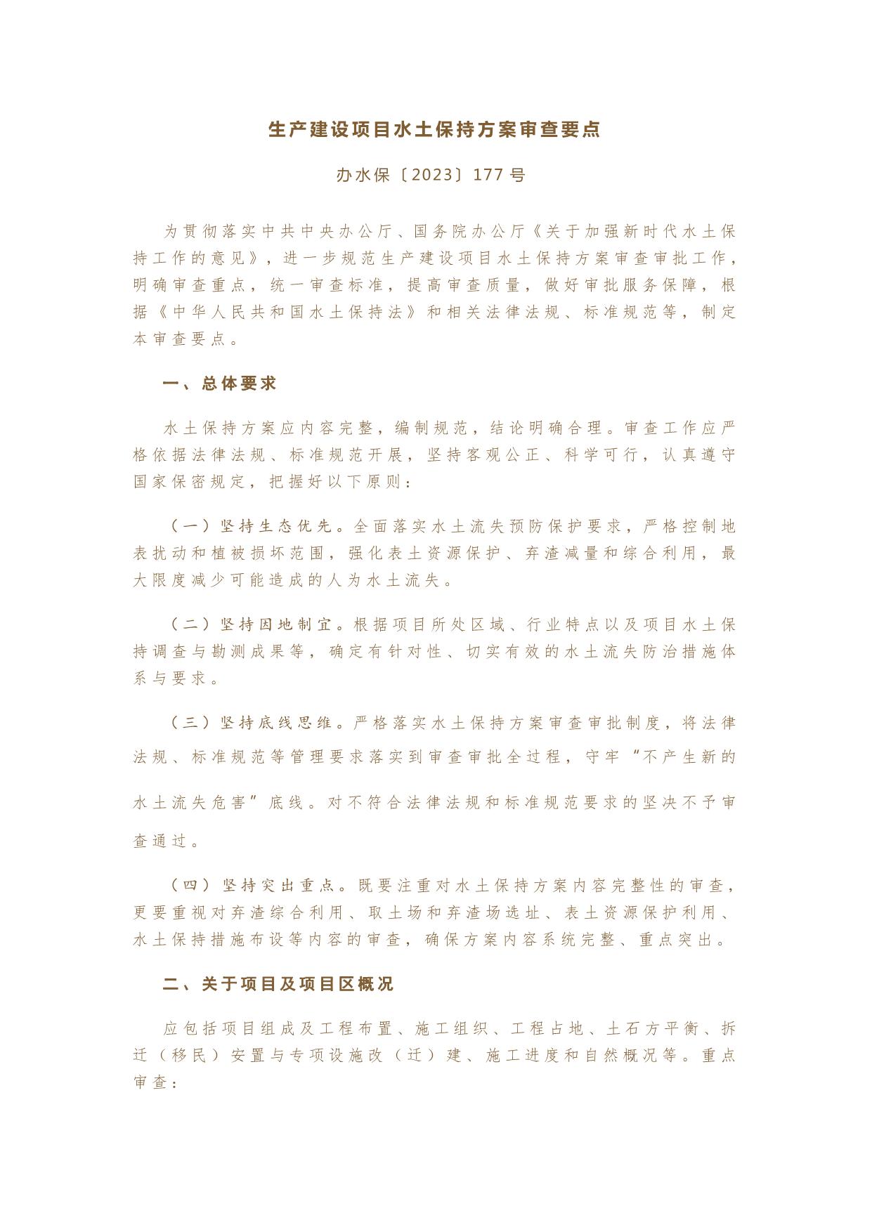 生产建设项目水土保持方案审查要点办水保【2023】177号