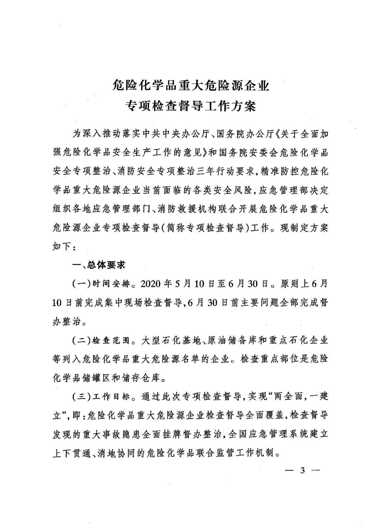 关于印发《危险化学品重大危险源企业专项检查督导工作方案》的通知