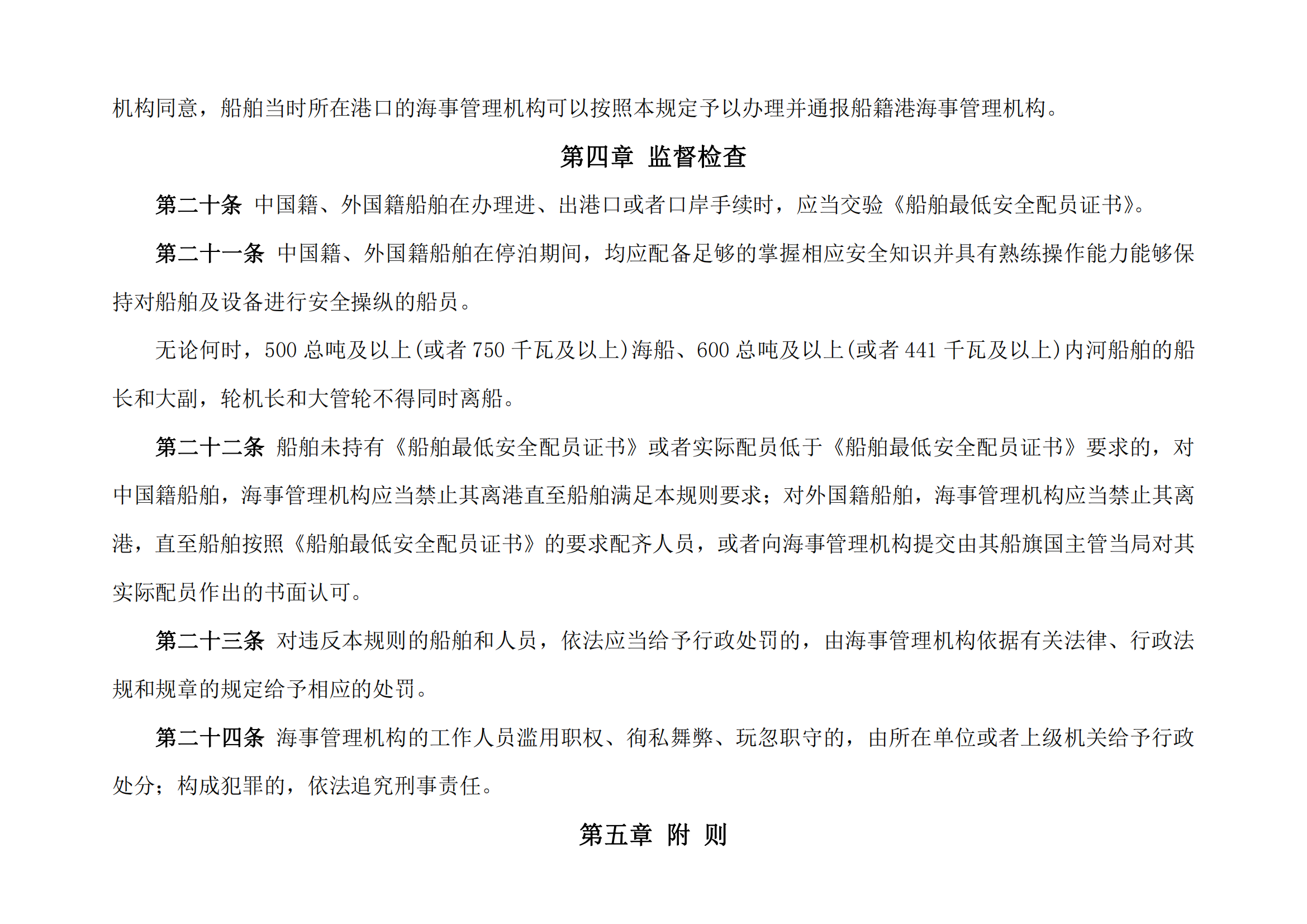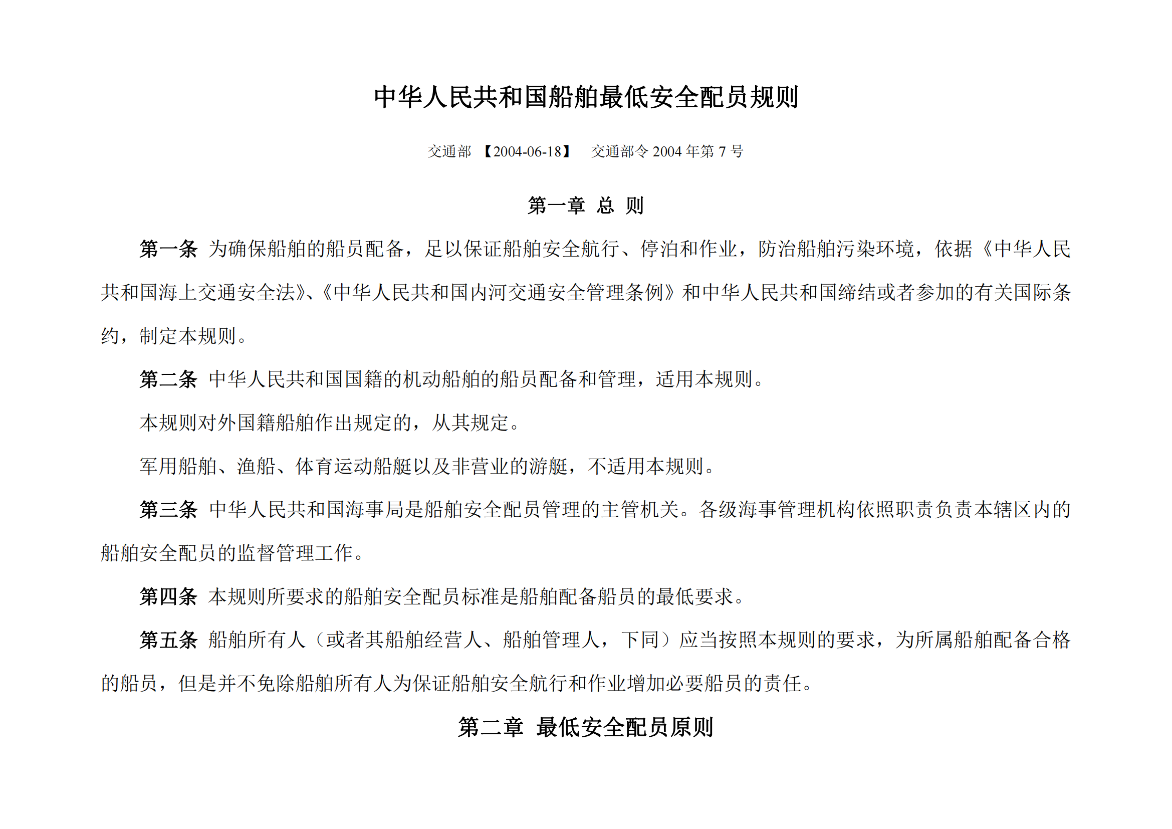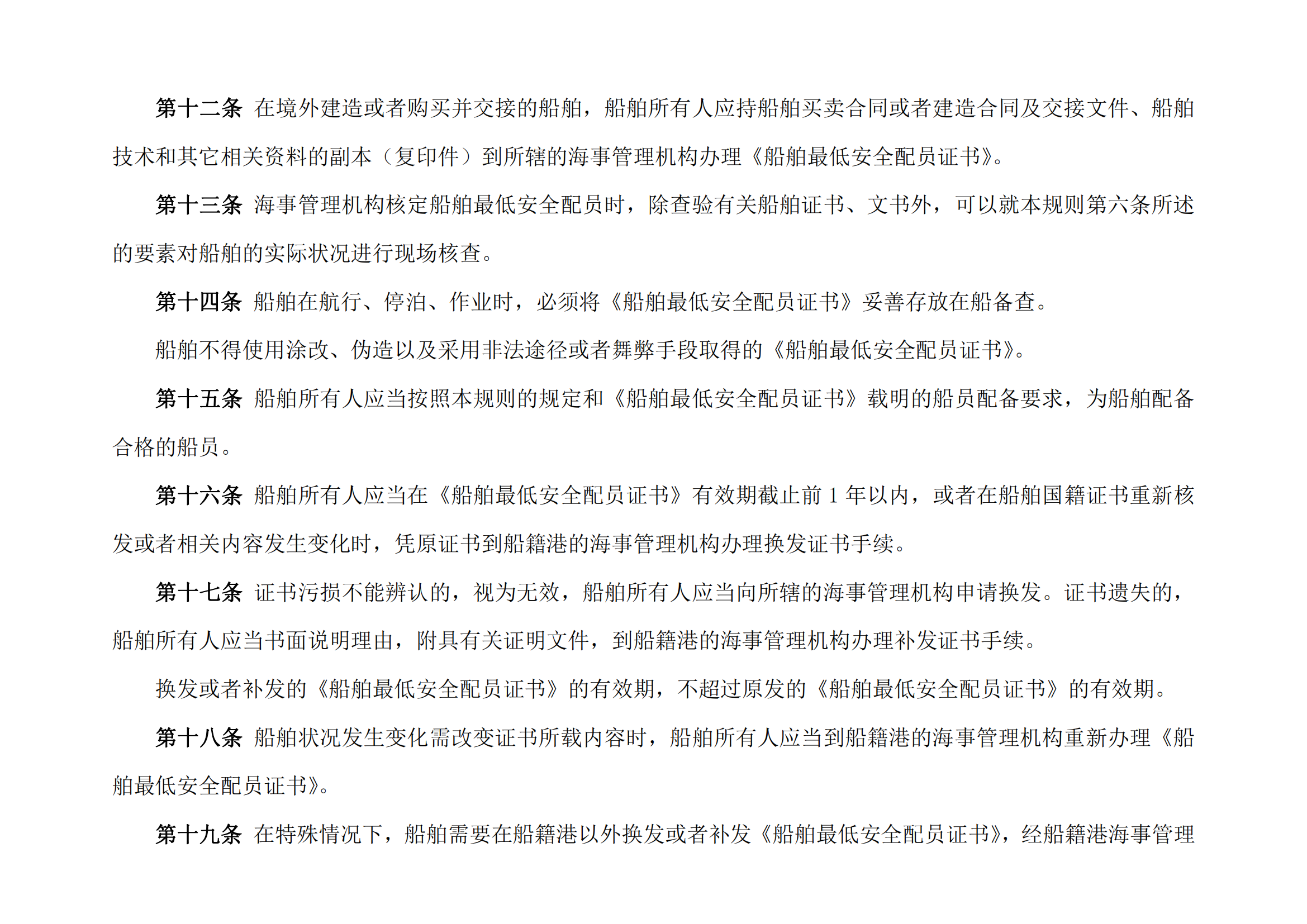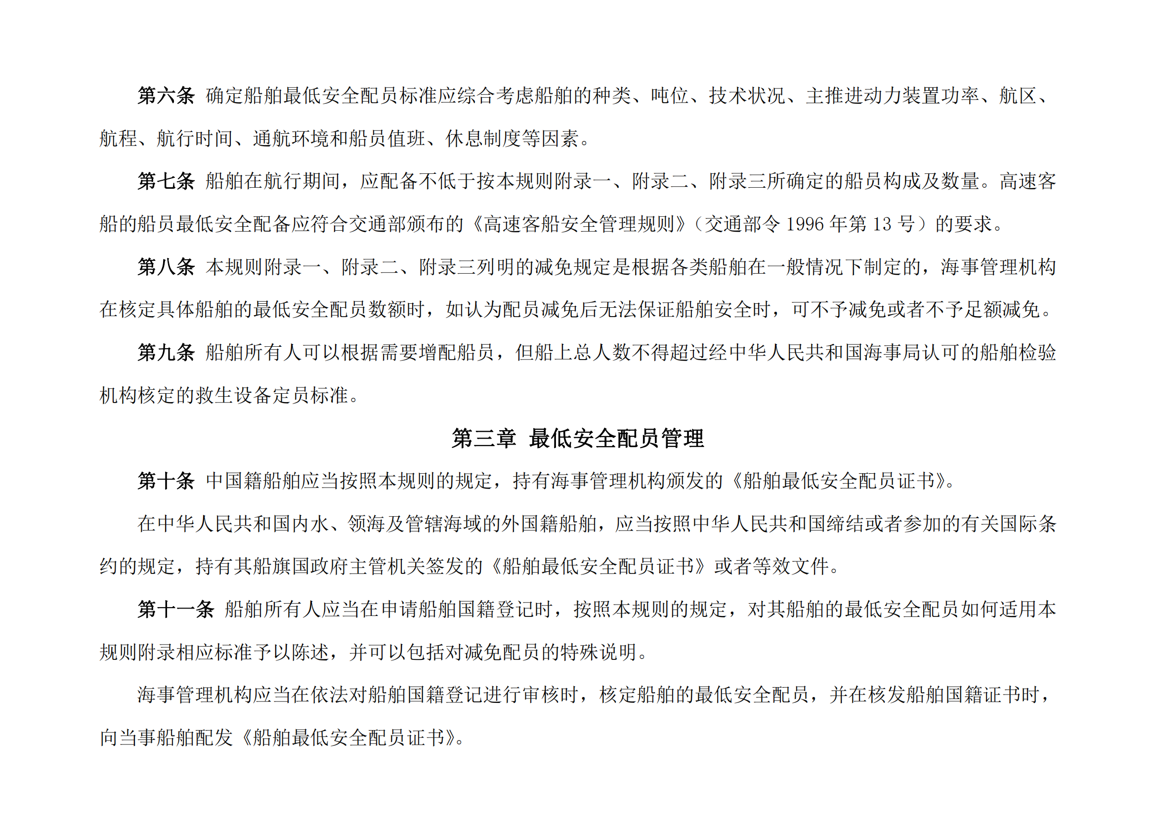 中华人民共和国船舶最低安全配员规则