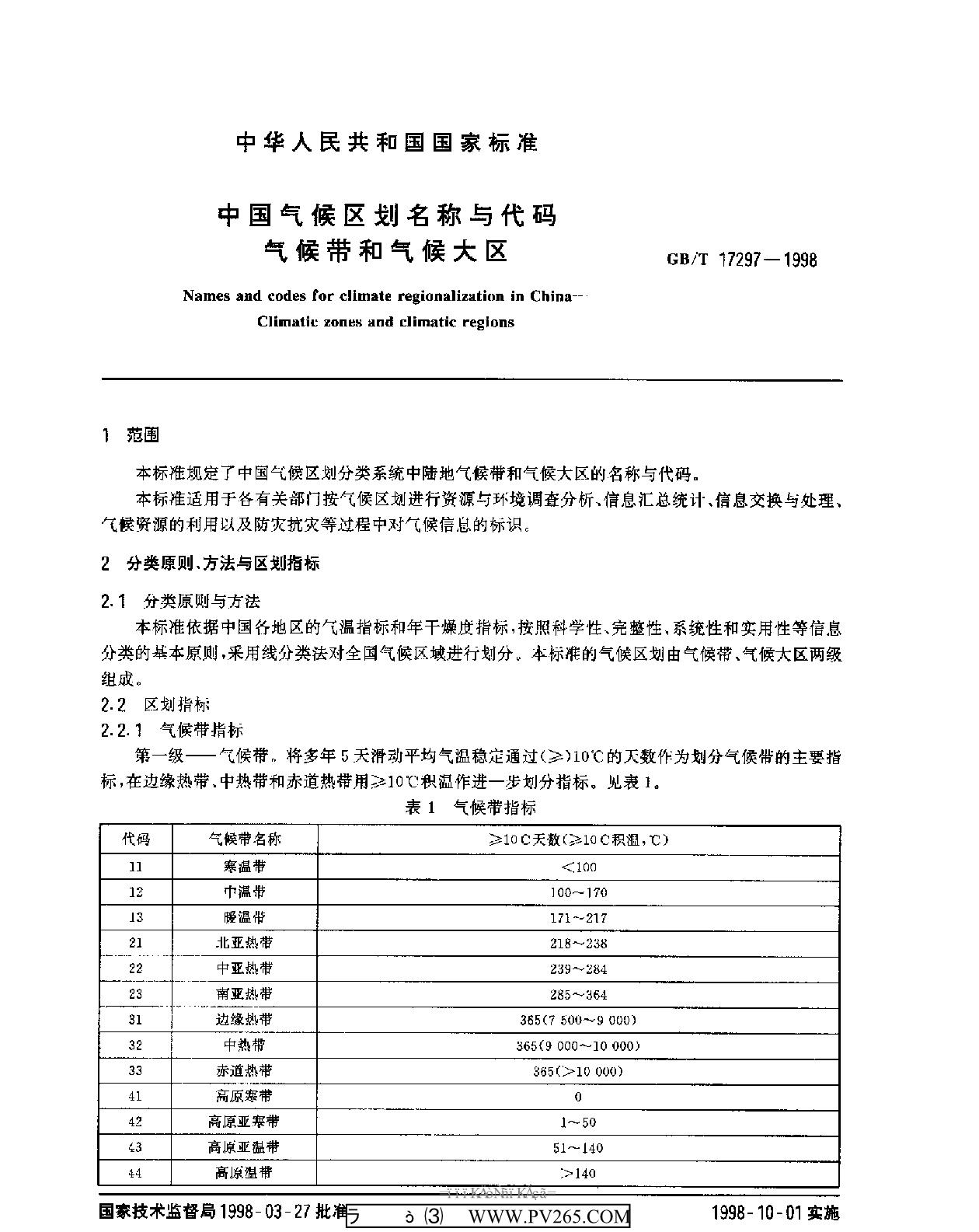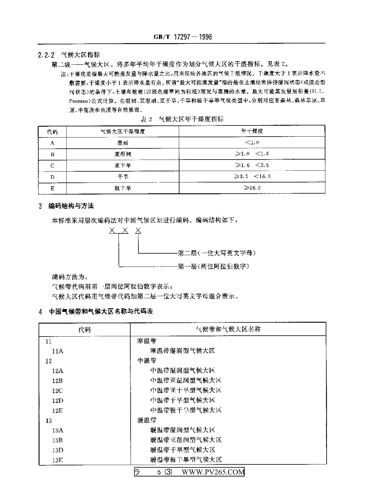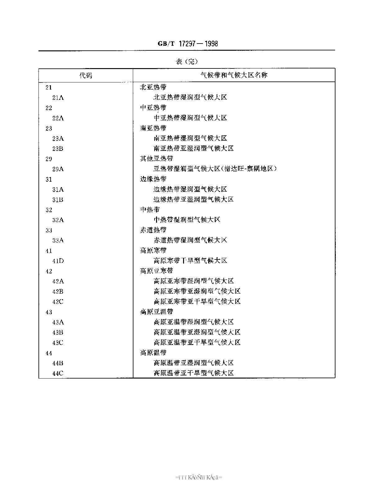 GBT17297-1998中国气候区划名称与代码气候带和气候大区