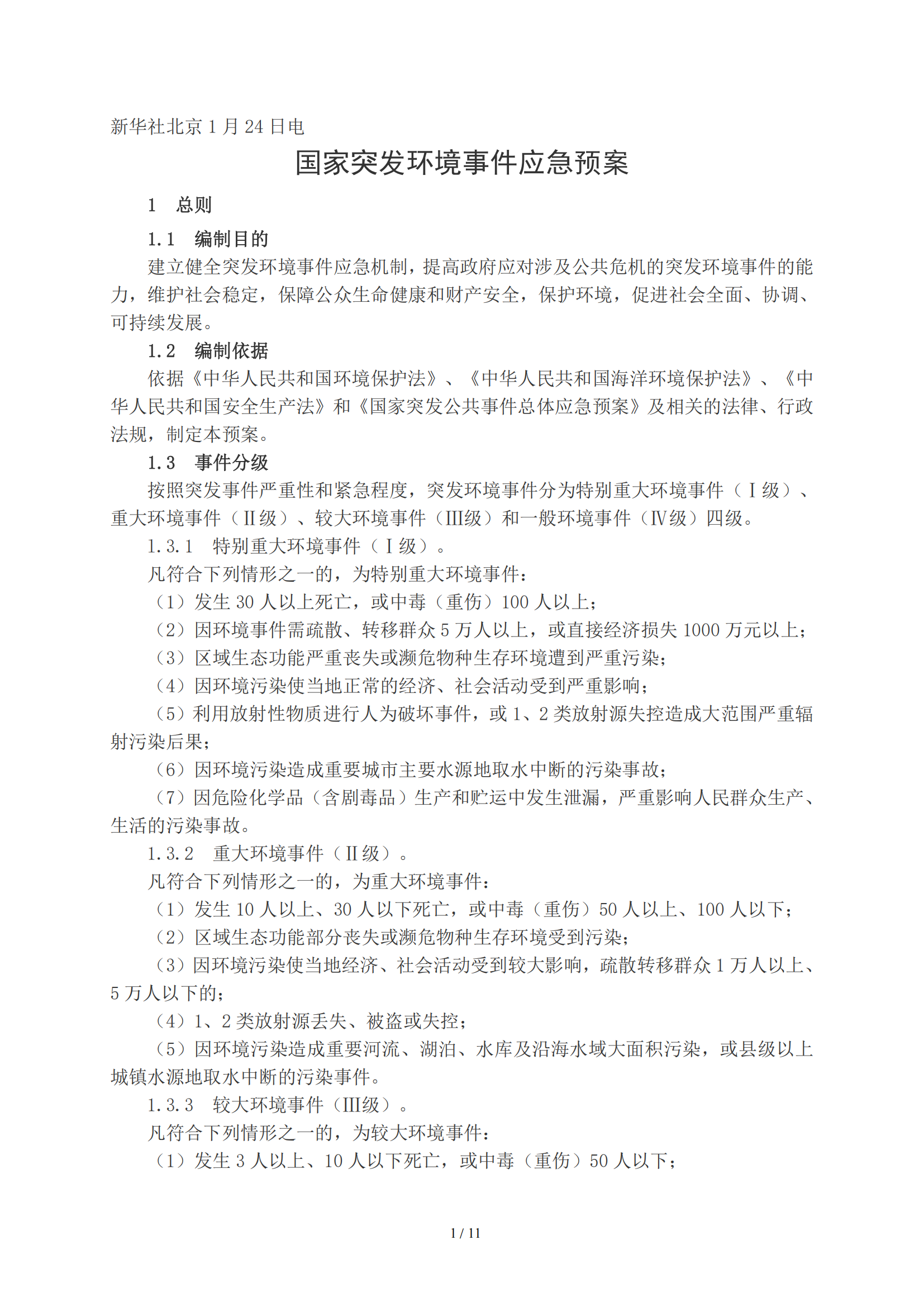 国家突发环境事件应急预案(2006年01月24日)